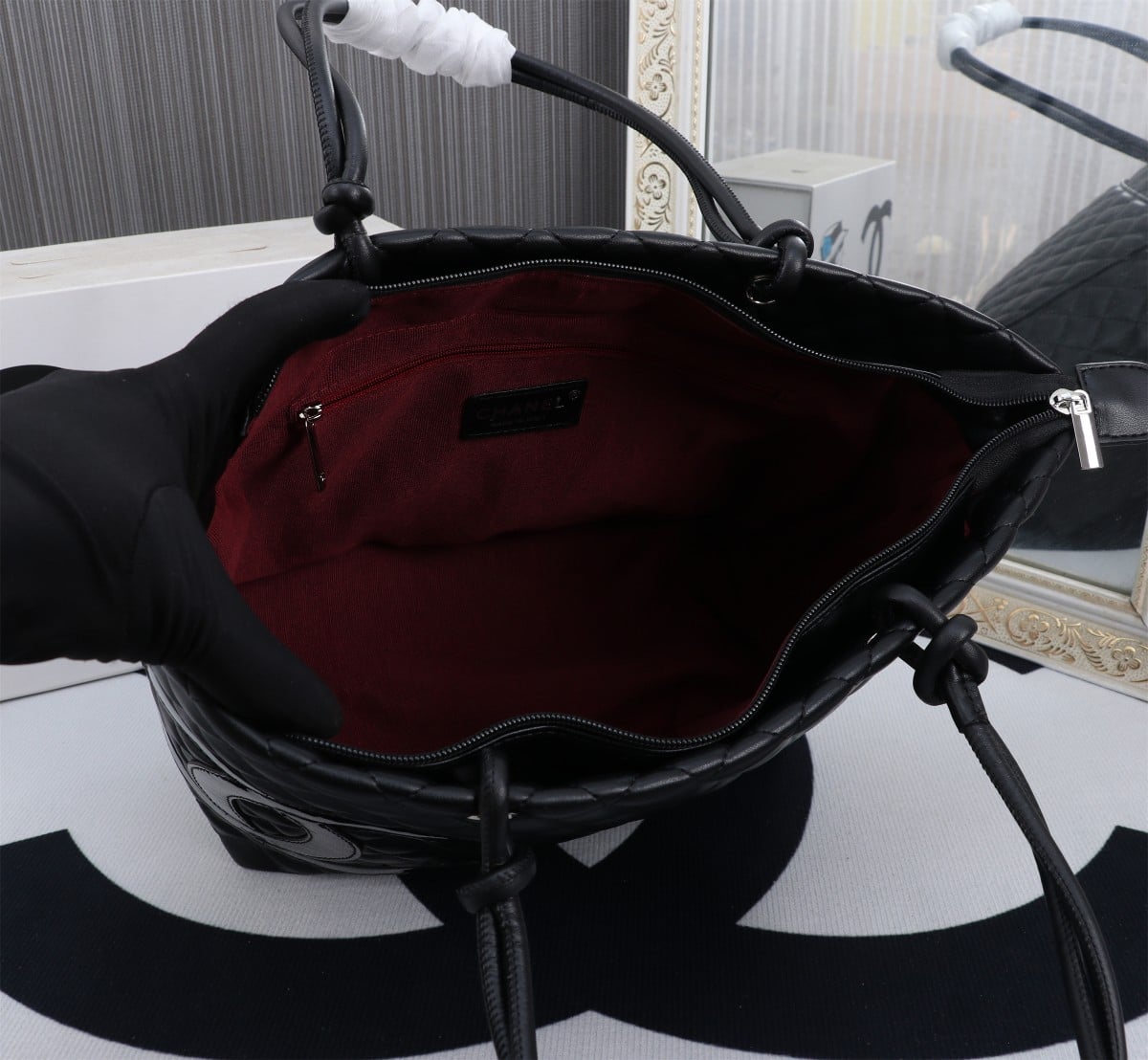 Chanel Calfskin Quilted Large Cambon Tote Black 41Cm/16in