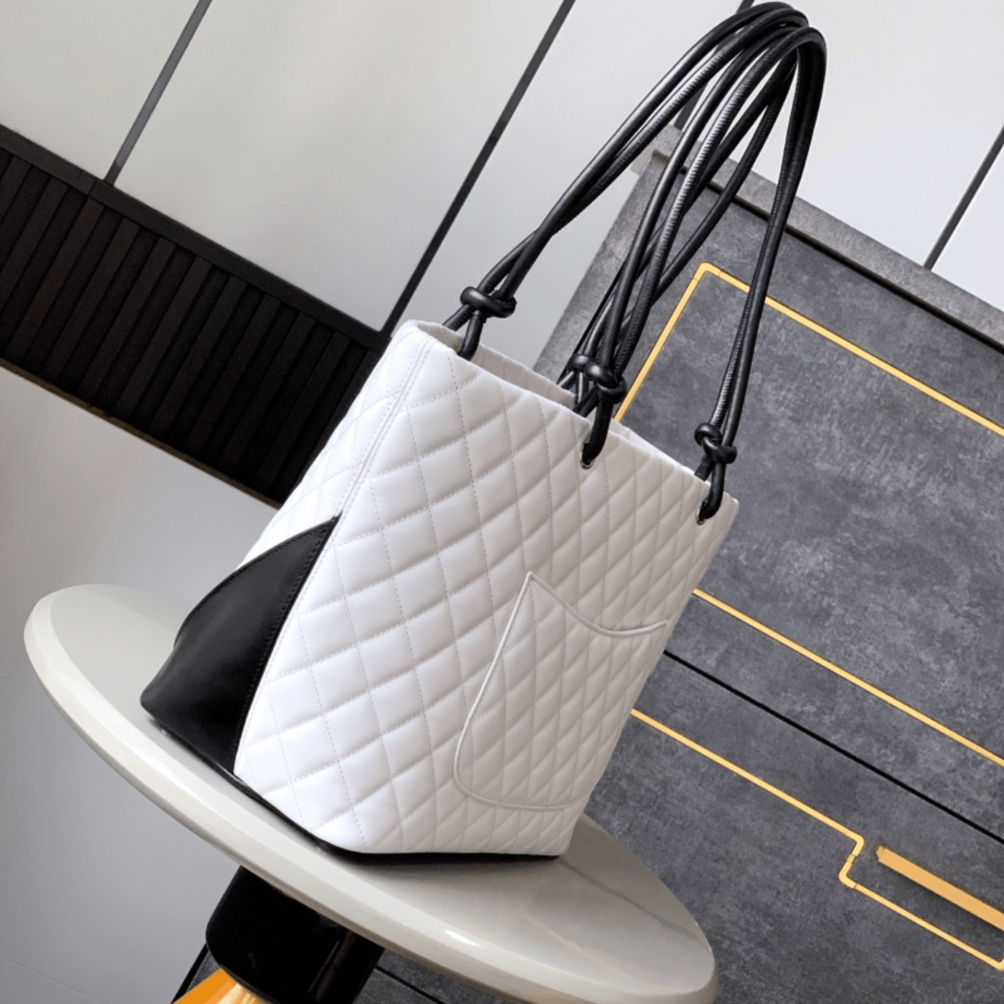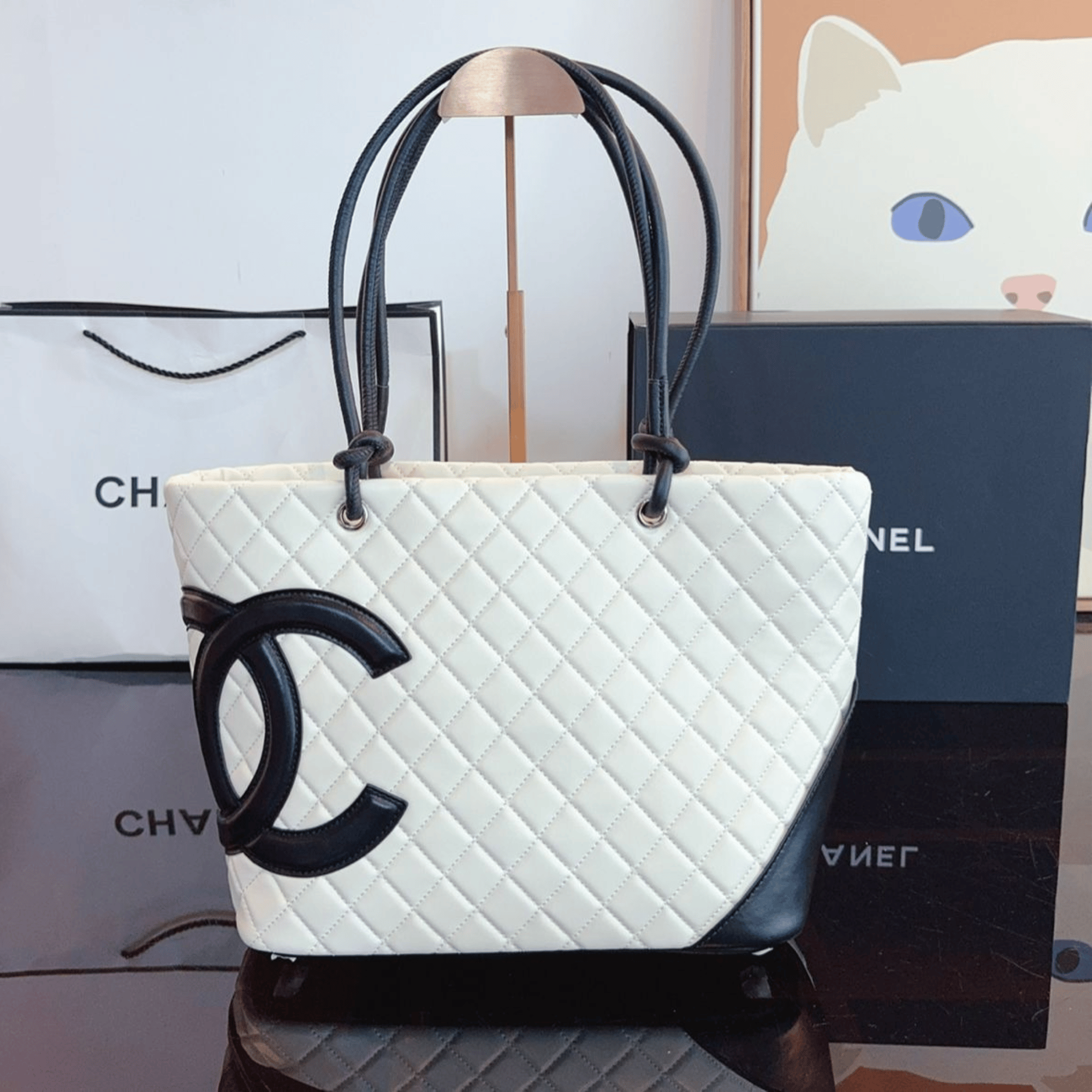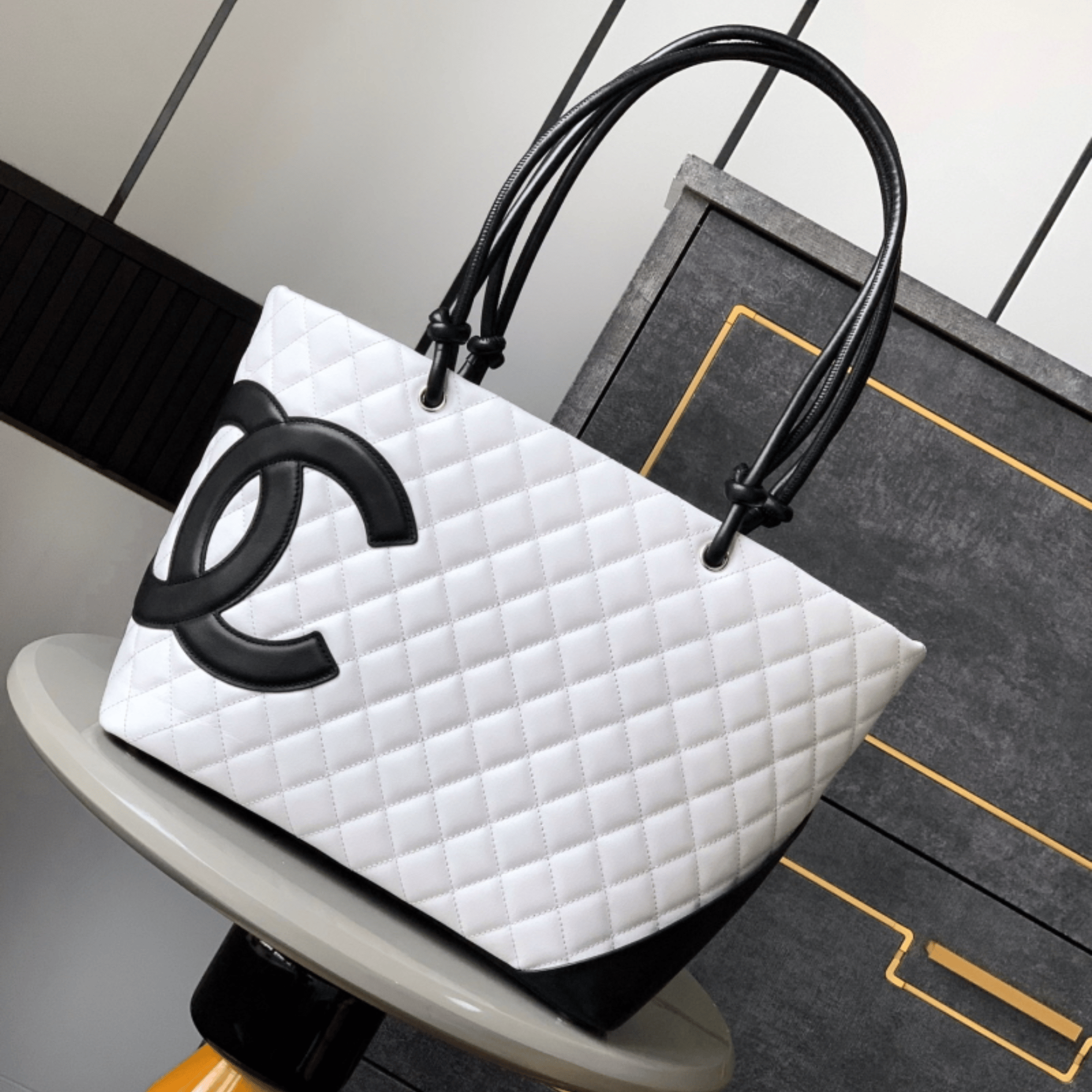 Chanel Calfskin Quilted Large Cambon Tote Black White 41Cm/16in