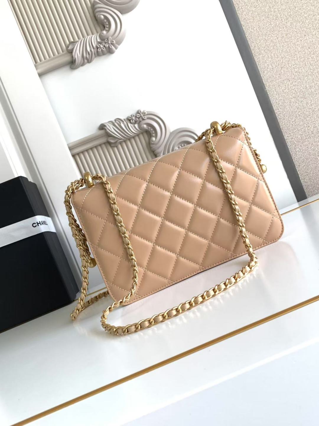 Chanel Calfskin Quilted Perfect Fit Flap Beige 22cm