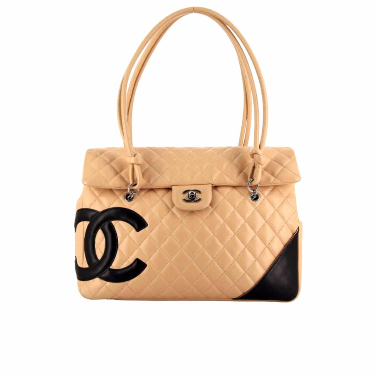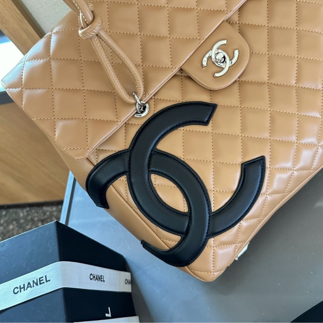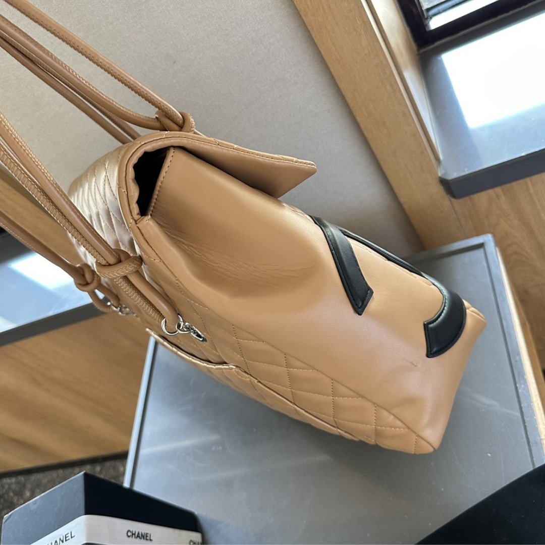 Chanel Cambon Shopping Bag Quilted Leather In Beige And Black 36Cm