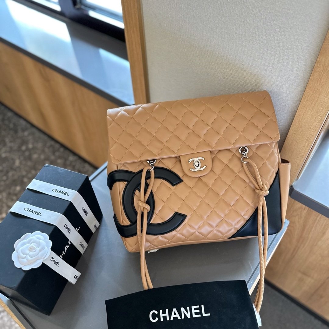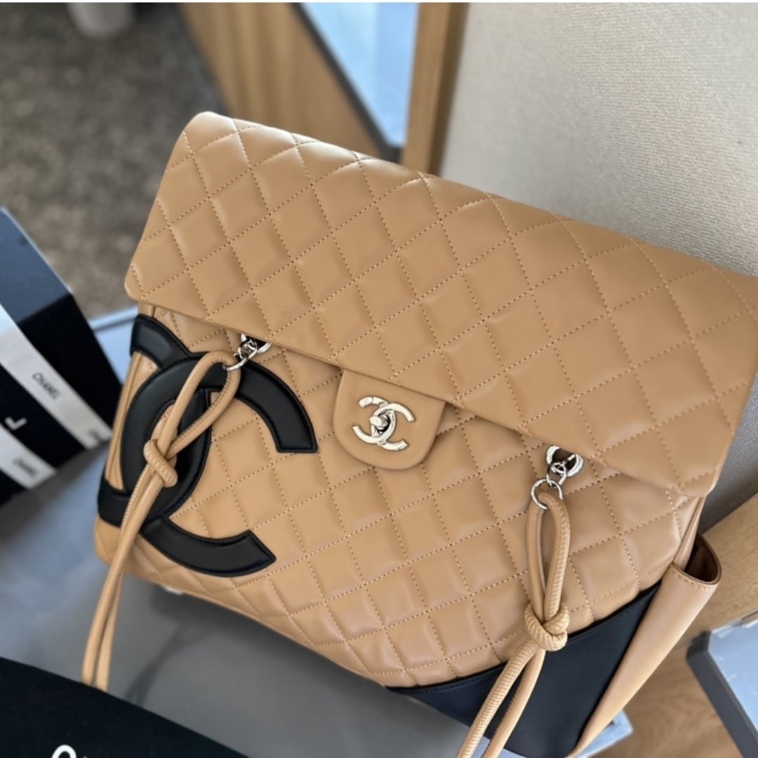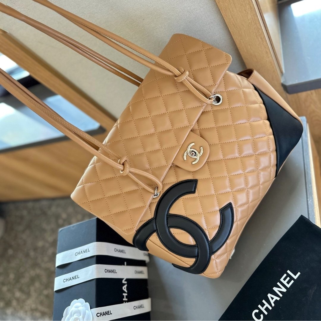 Chanel Cambon Shopping Bag Quilted Leather In Beige And Black 36Cm