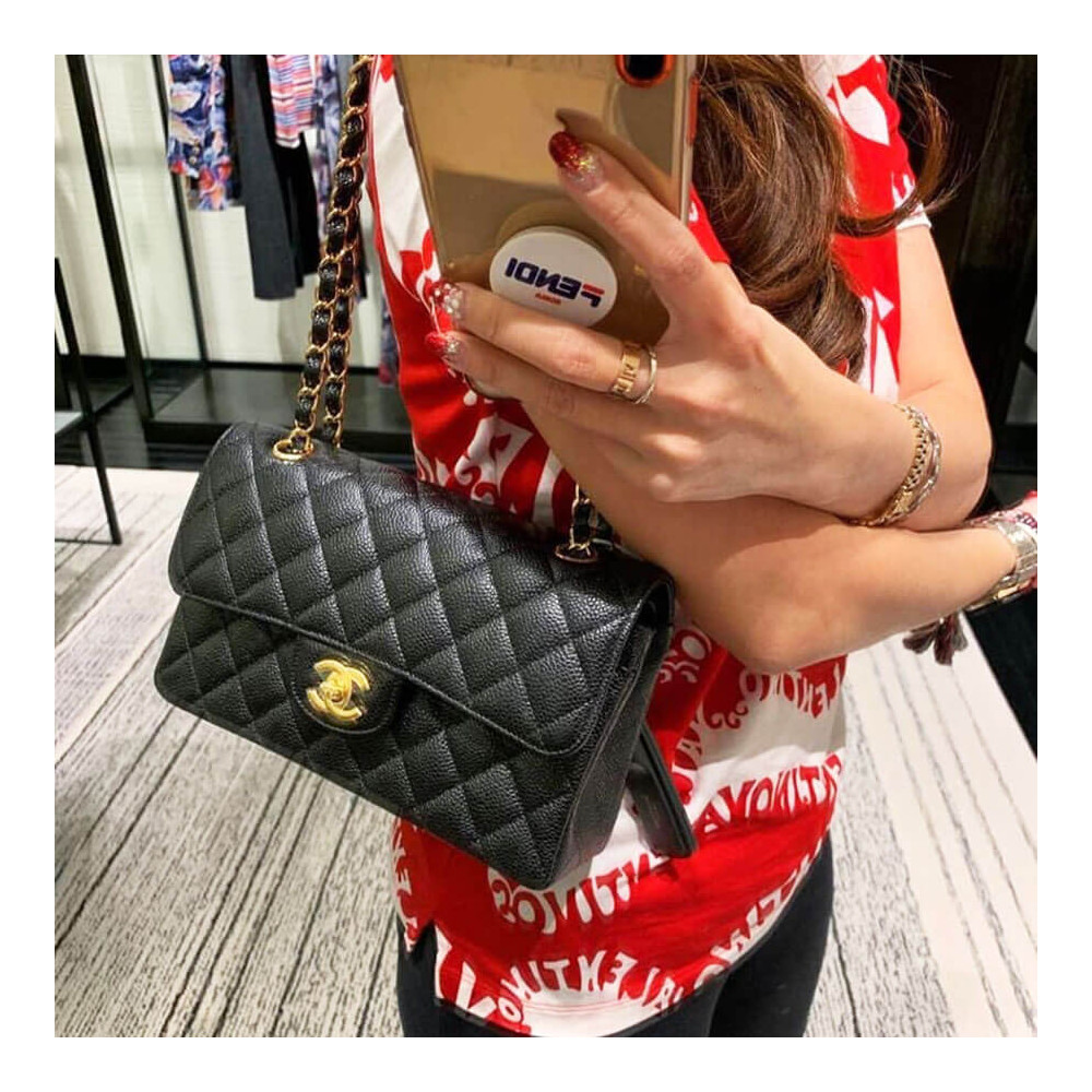 The Small Classic Bag the main difference is the small interior space. When choosing the small size, consider whether the compartments are big enough to help you carry your daily essentials. For some fashionista’s, there is a second reason why they choose the Small Classic Bag. It can be due to the height. If you are not tall, then sometimes the small size looks better.