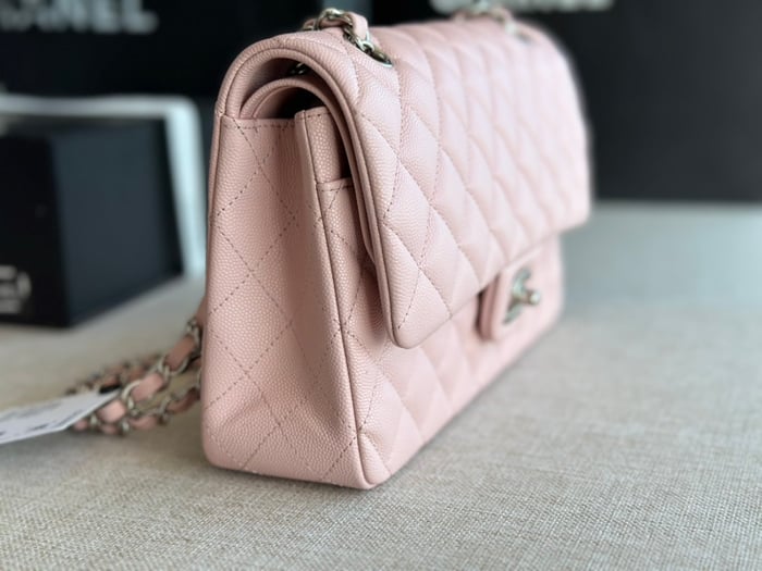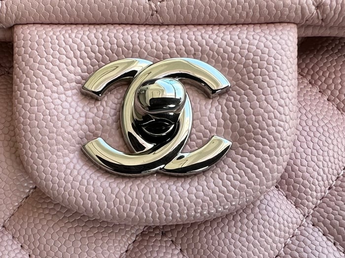 Chanel Classic Double Flap Bag Caviar Silver Hardware Light Pink 25Cm/10in