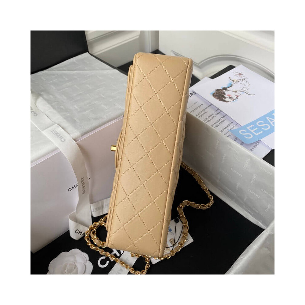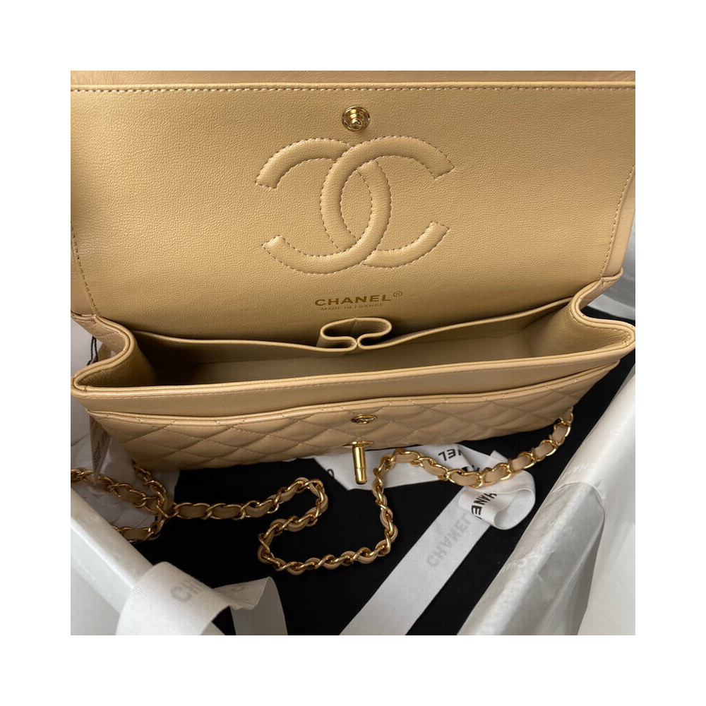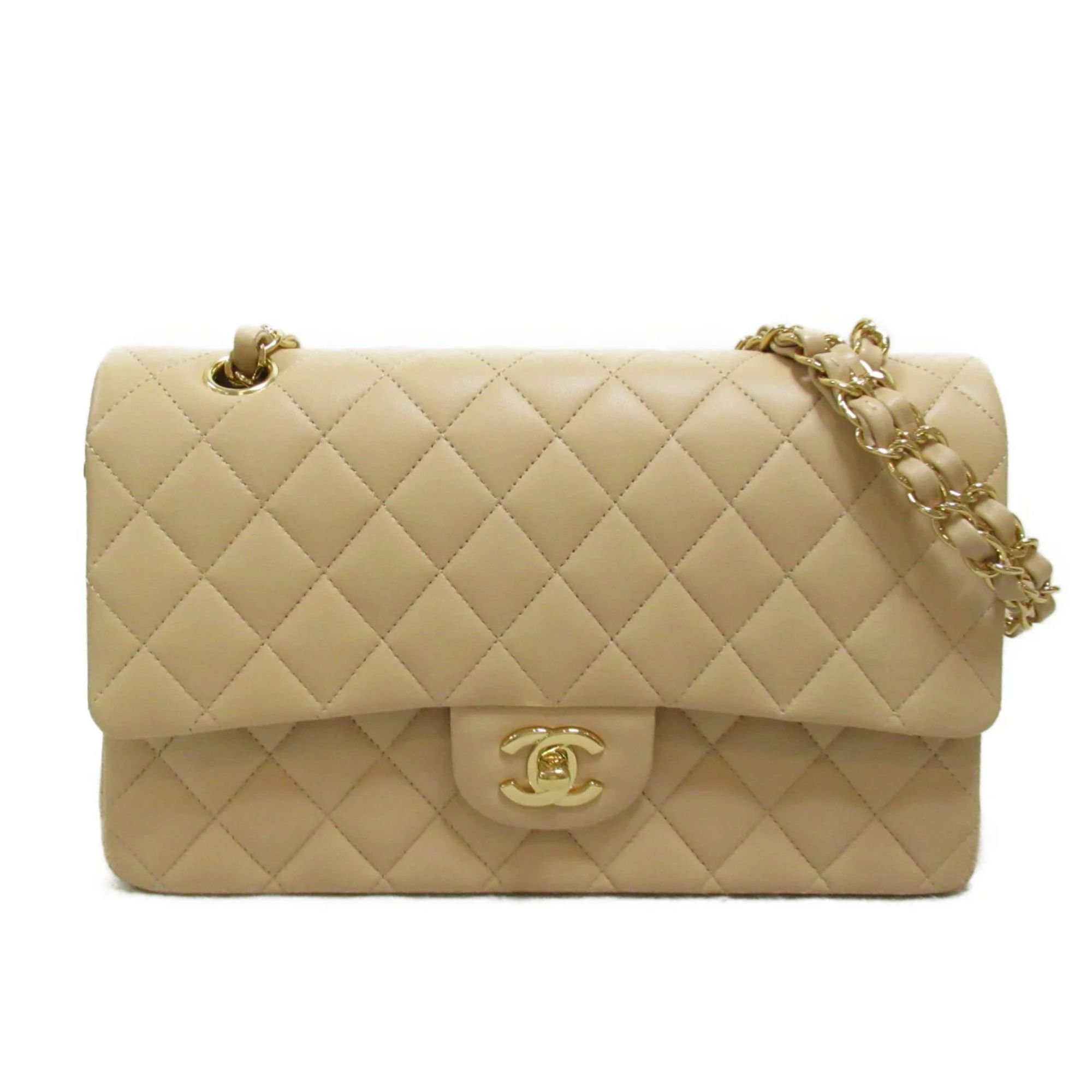 The Medium Classic has a double flap like all Chanel Flap bag sizes (excluding the minis). You will recognize the Medium Chanel Classic bag by the diamond-pattern stitching with eight whole diamonds to a row across the flap. It holds everything from the Small, as well as sunglasses and small toiletries bag.