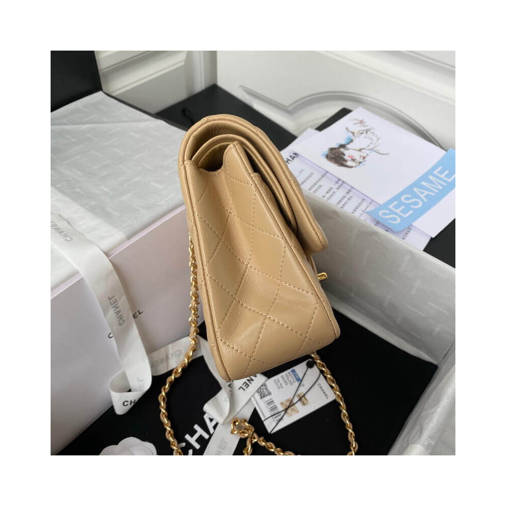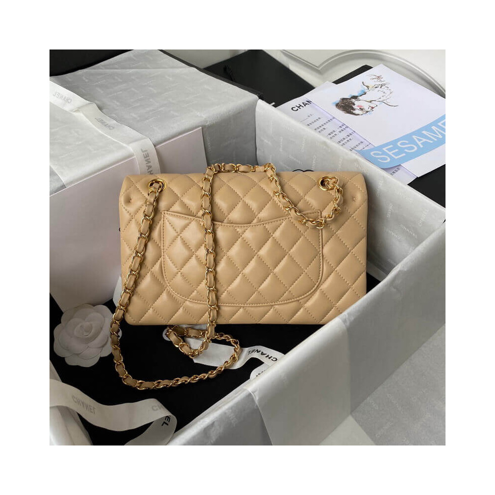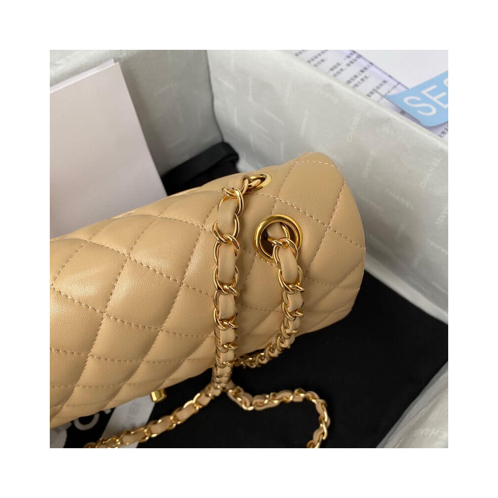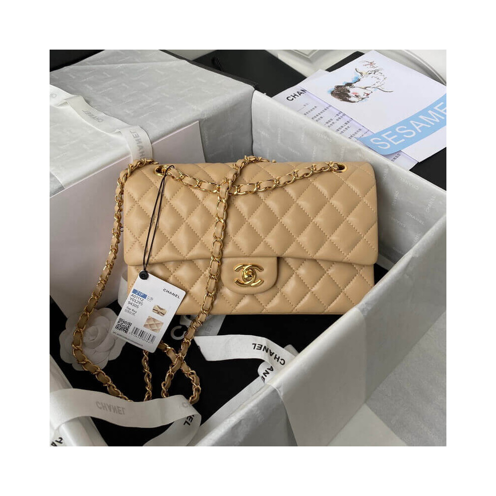 The Medium Classic has a double flap like all Chanel Flap bag sizes (excluding the minis). You will recognize the Medium Chanel Classic bag by the diamond-pattern stitching with eight whole diamonds to a row across the flap. It holds everything from the Small, as well as sunglasses and small toiletries bag.