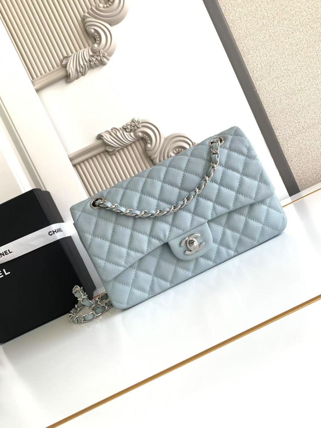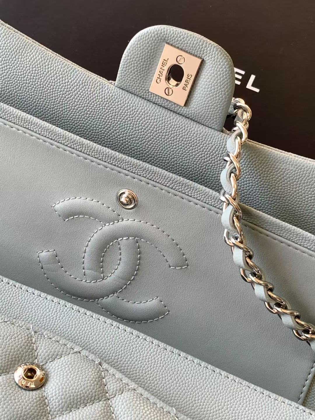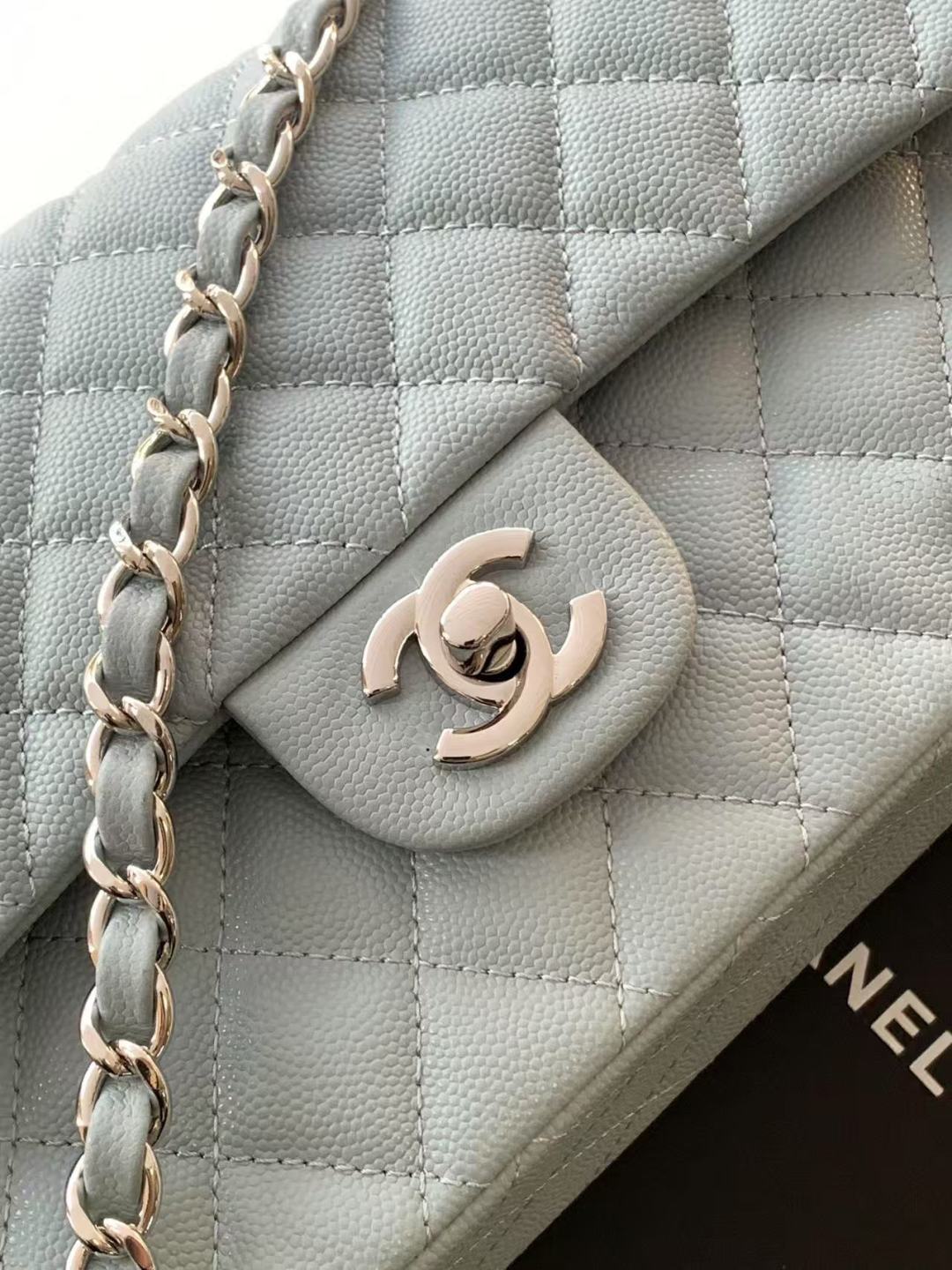 Chanel Classic Flap Bag 25 cm Light Blue Caviar Silver-Tone Hardware A01112