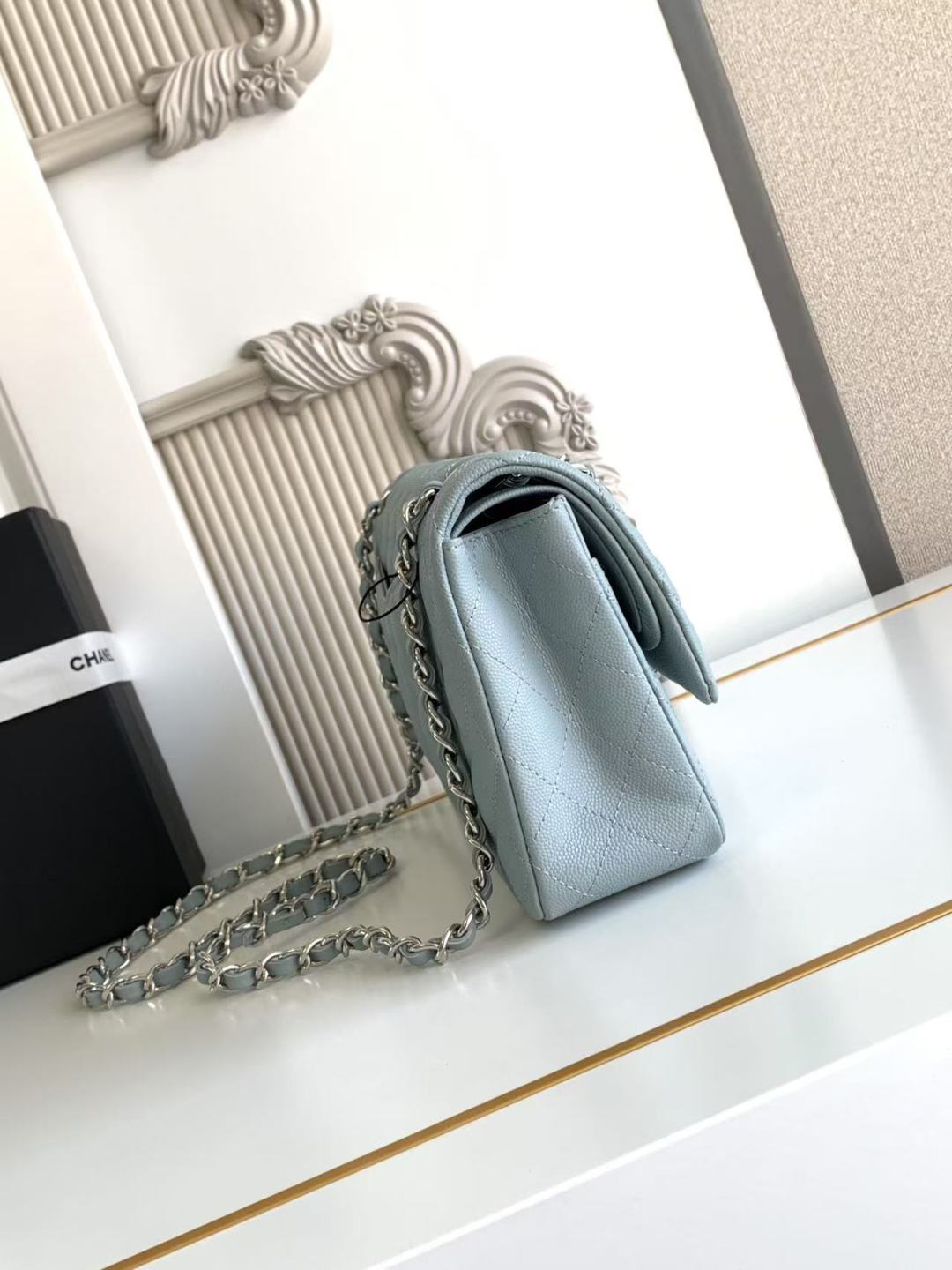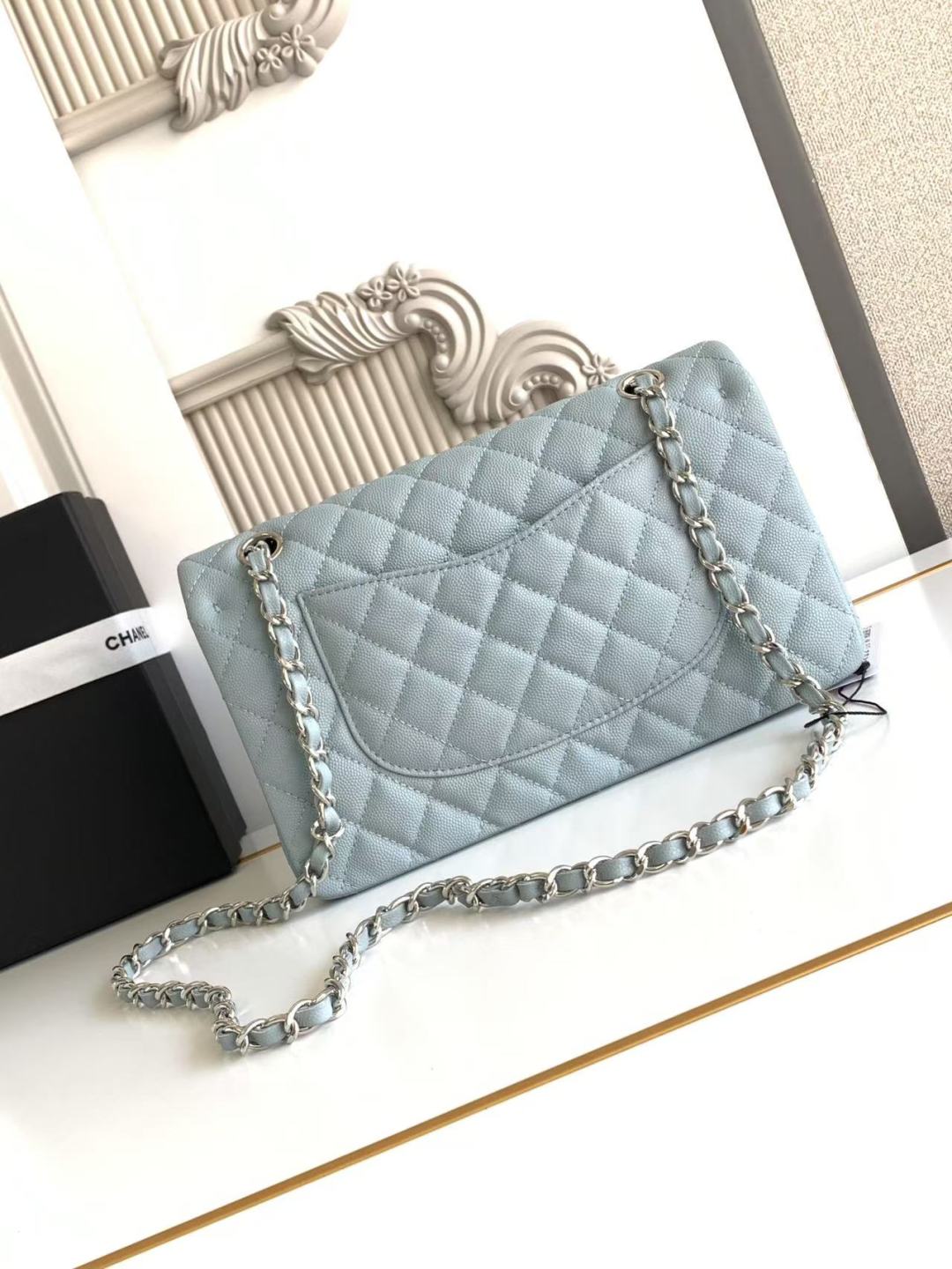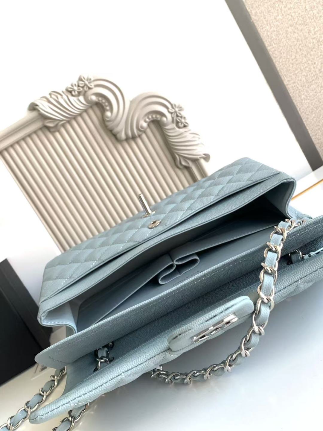 Chanel Classic Flap Bag 25 cm Light Blue Caviar Silver-Tone Hardware A01112