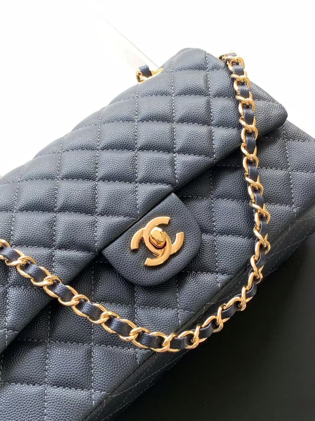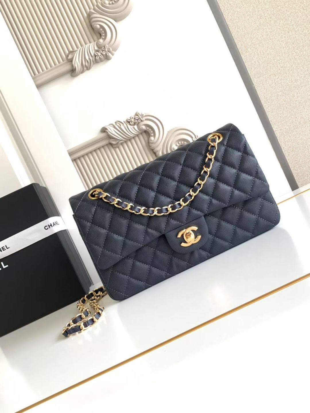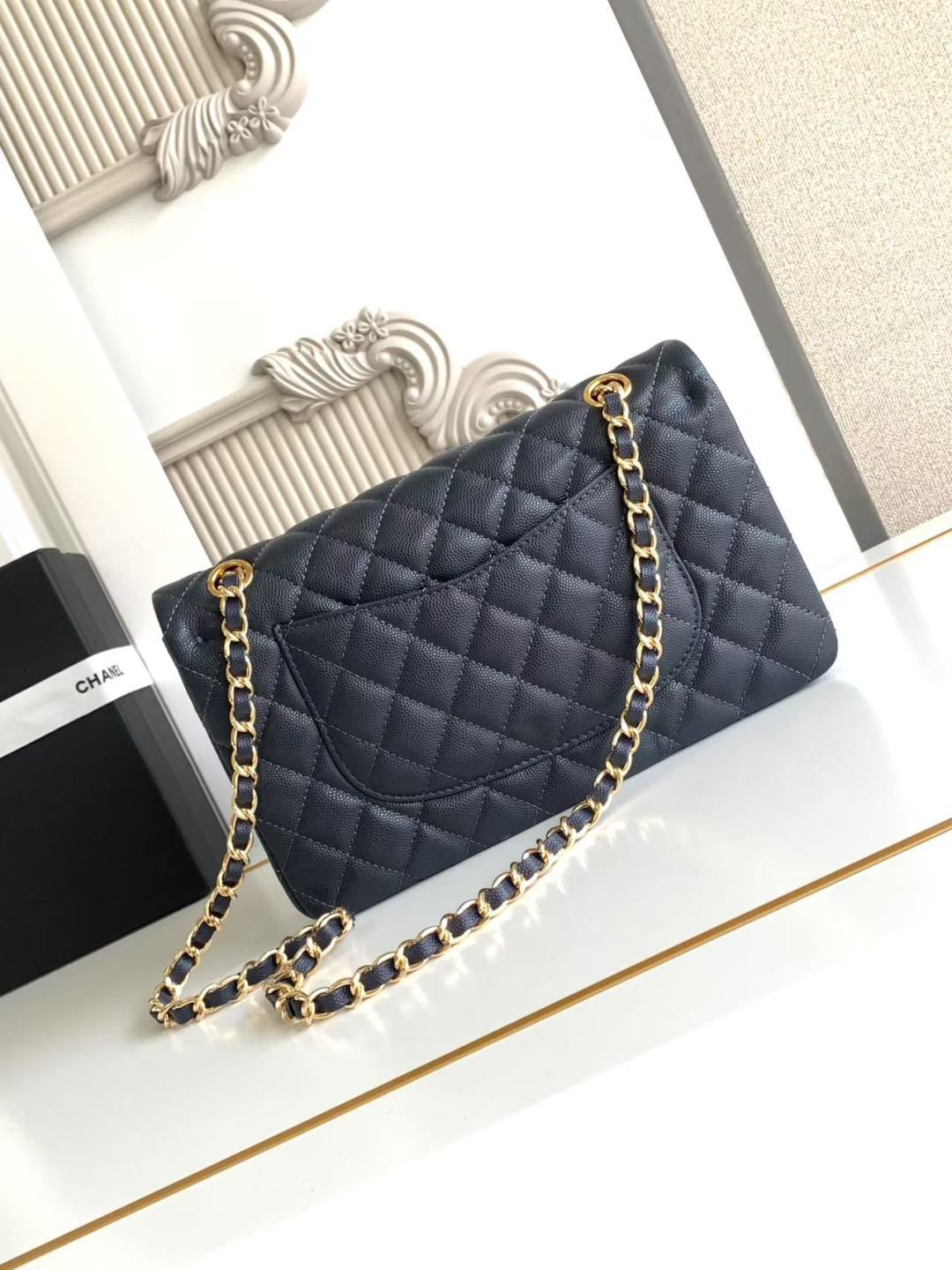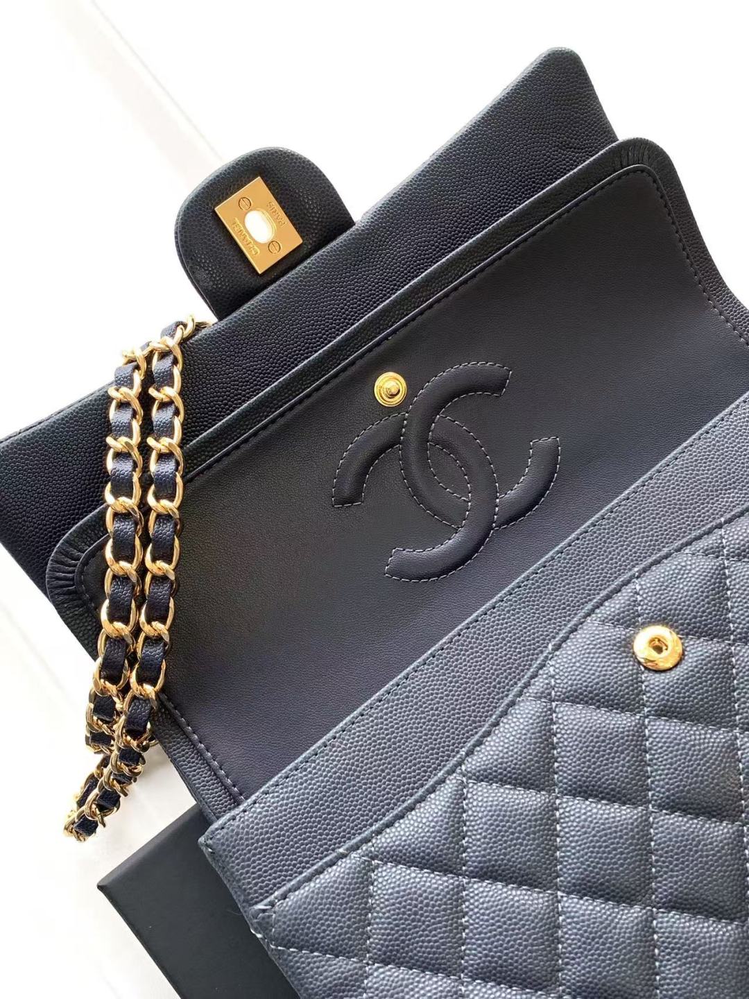Chanel Classic Flap Bag 25 cm Navy Blue Gold-Tone Hardware A01112