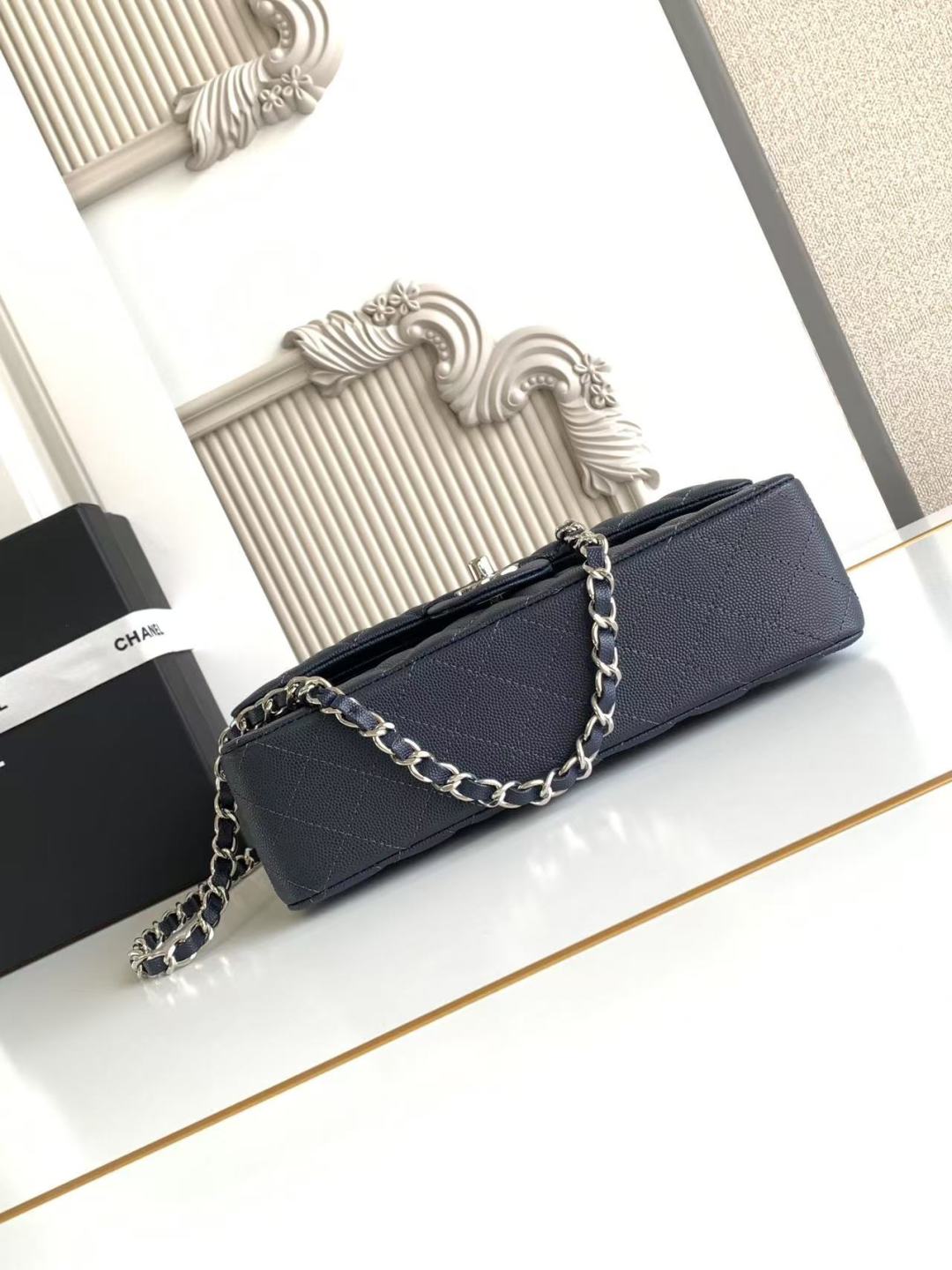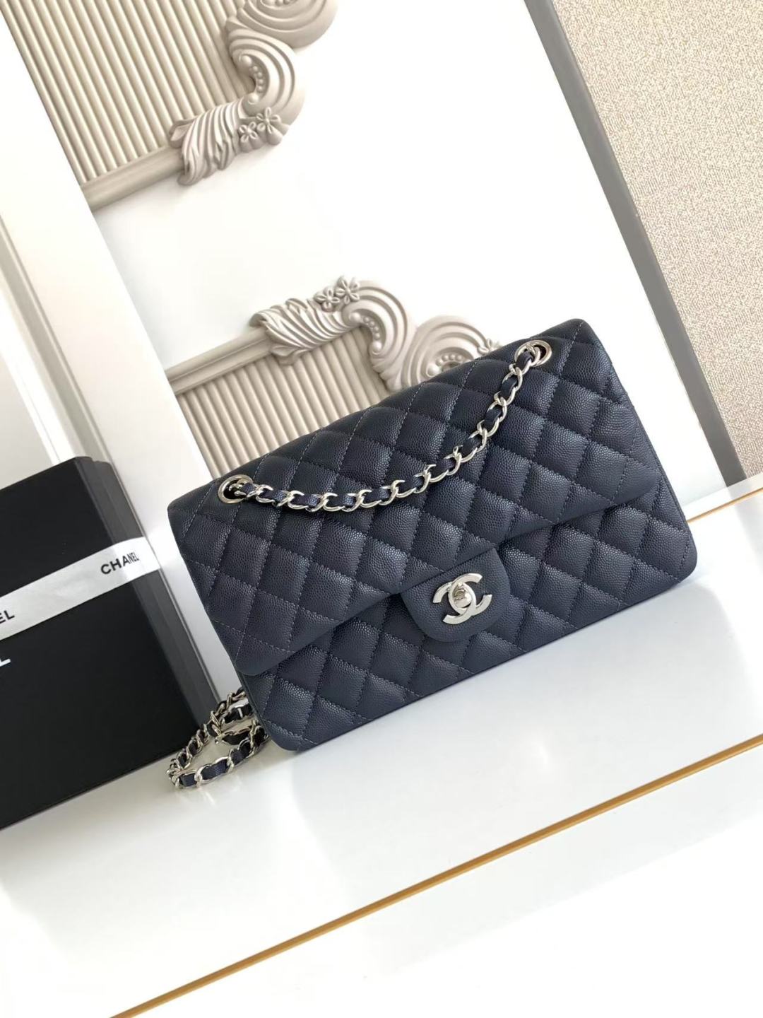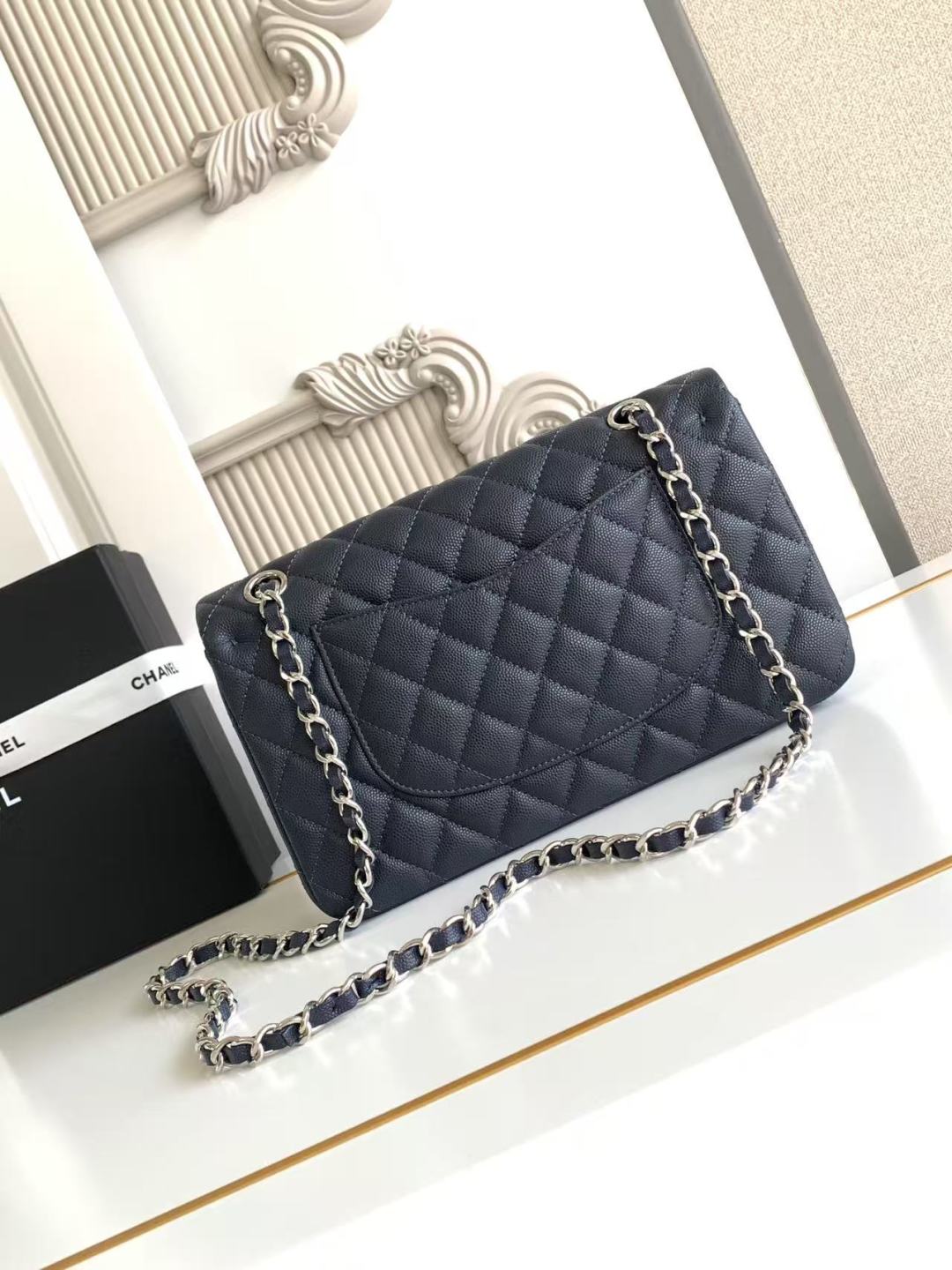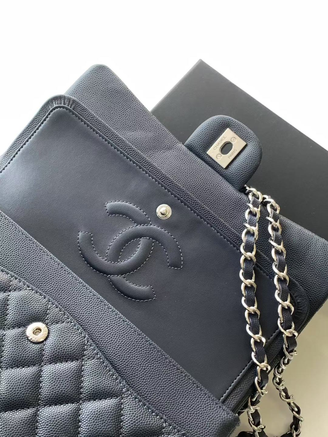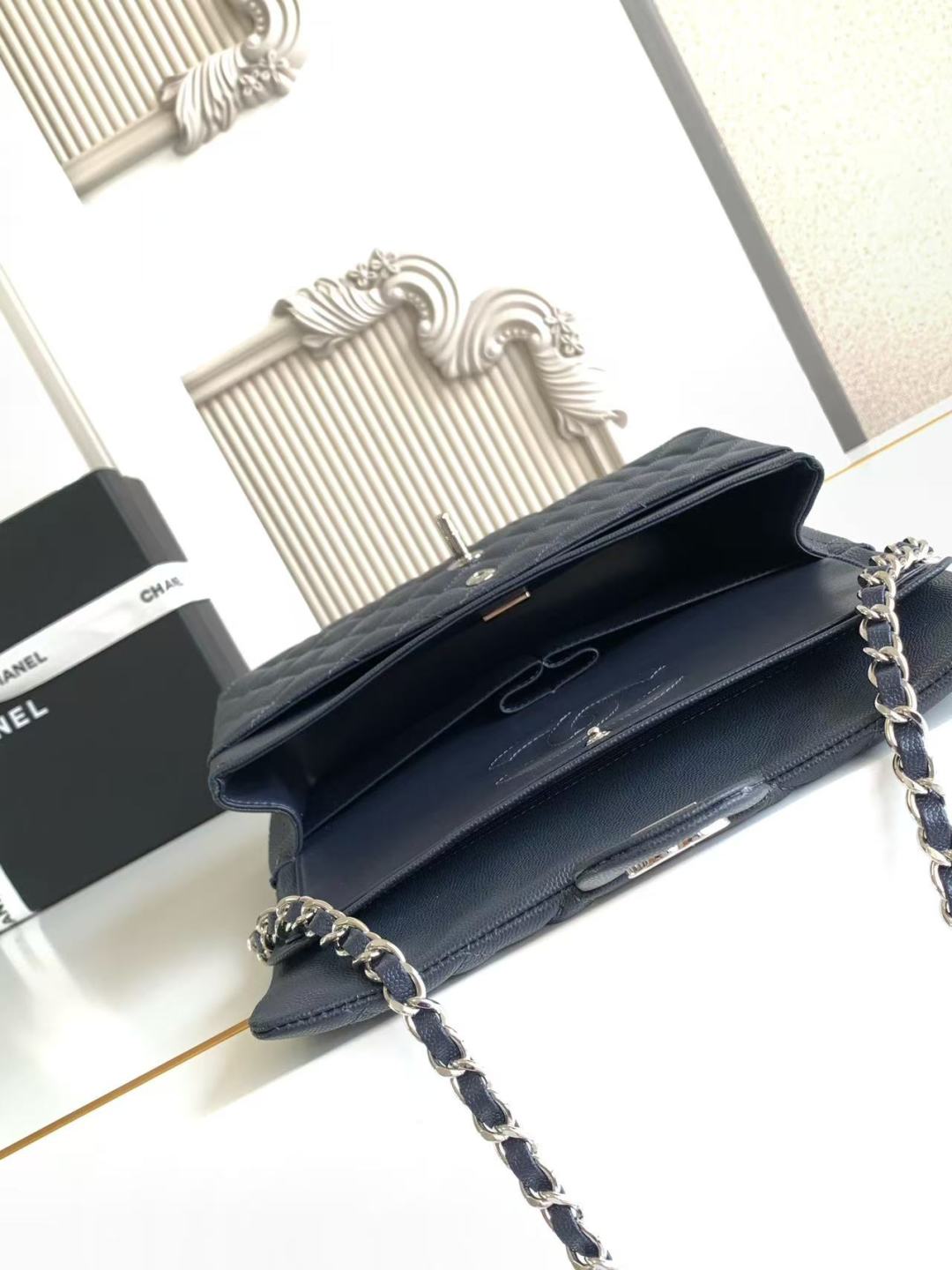 Chanel Classic Flap Bag 25 cm Navy Blue Silver-Tone Hardware A01112