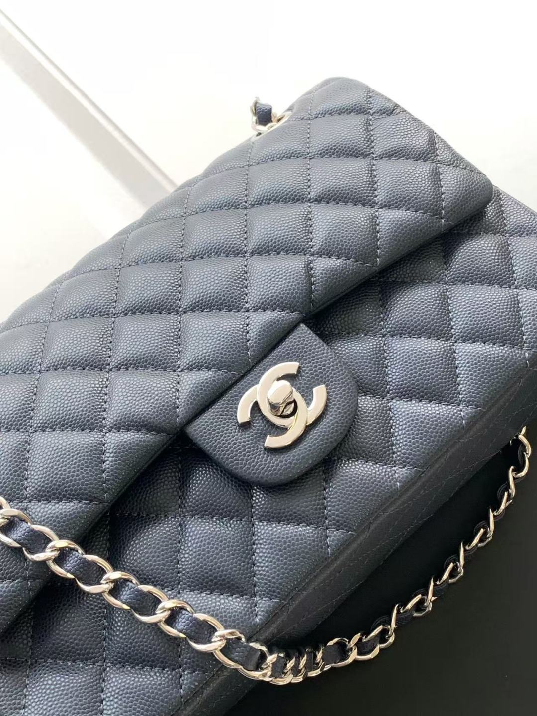 Chanel Classic Flap Bag 25 cm Grey Silver- Tone Hardware A01112