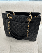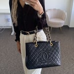 Chanel Classic Tote Bag Gold Toned Hardware Black 34cm