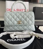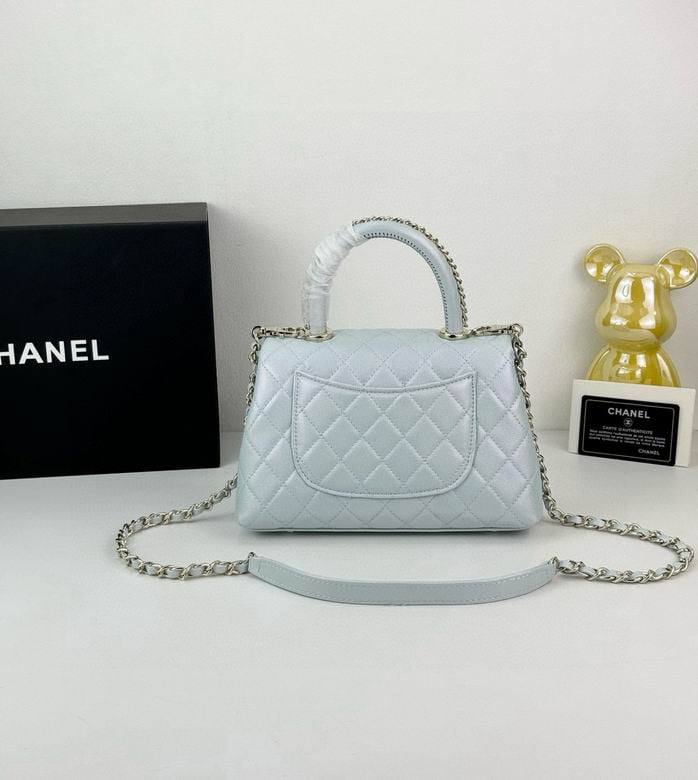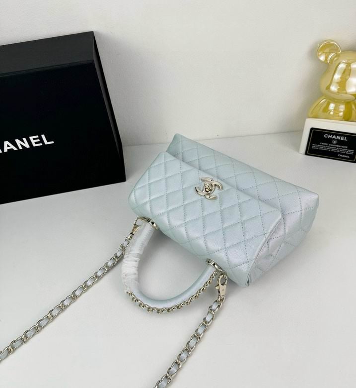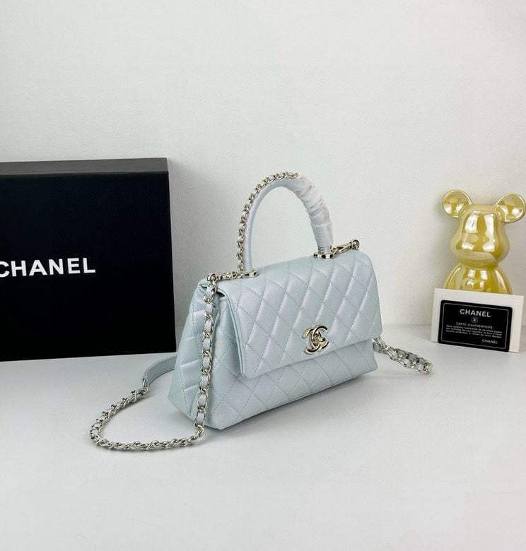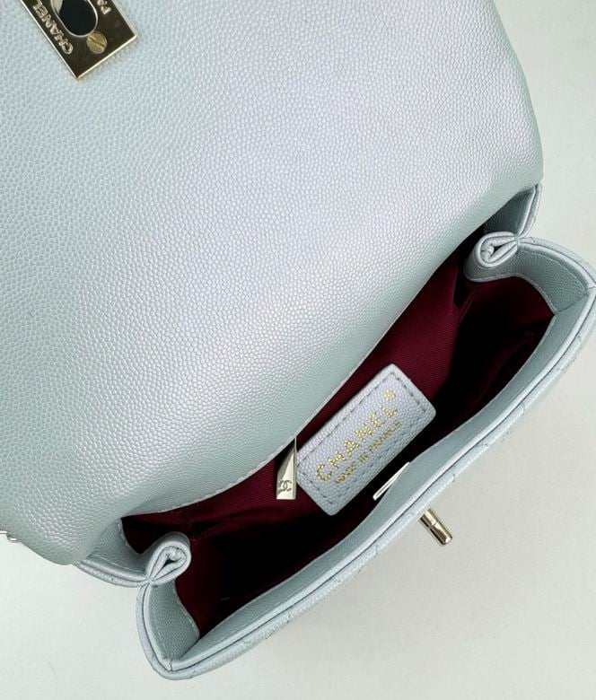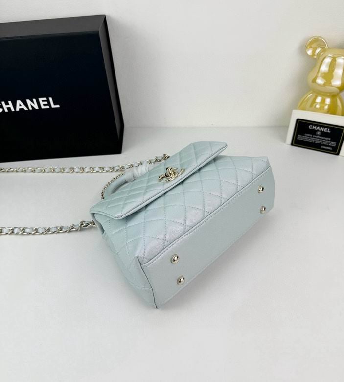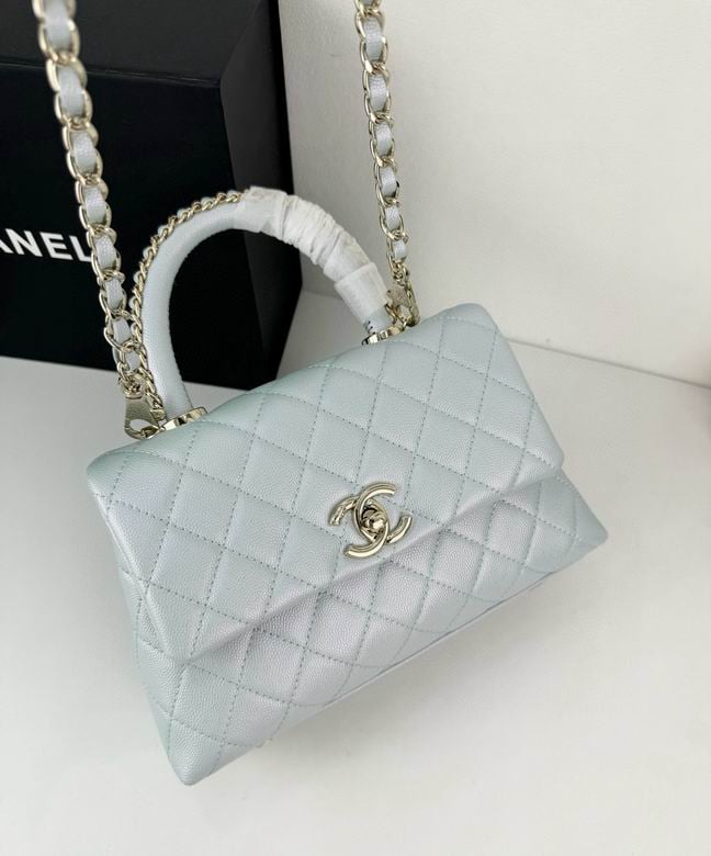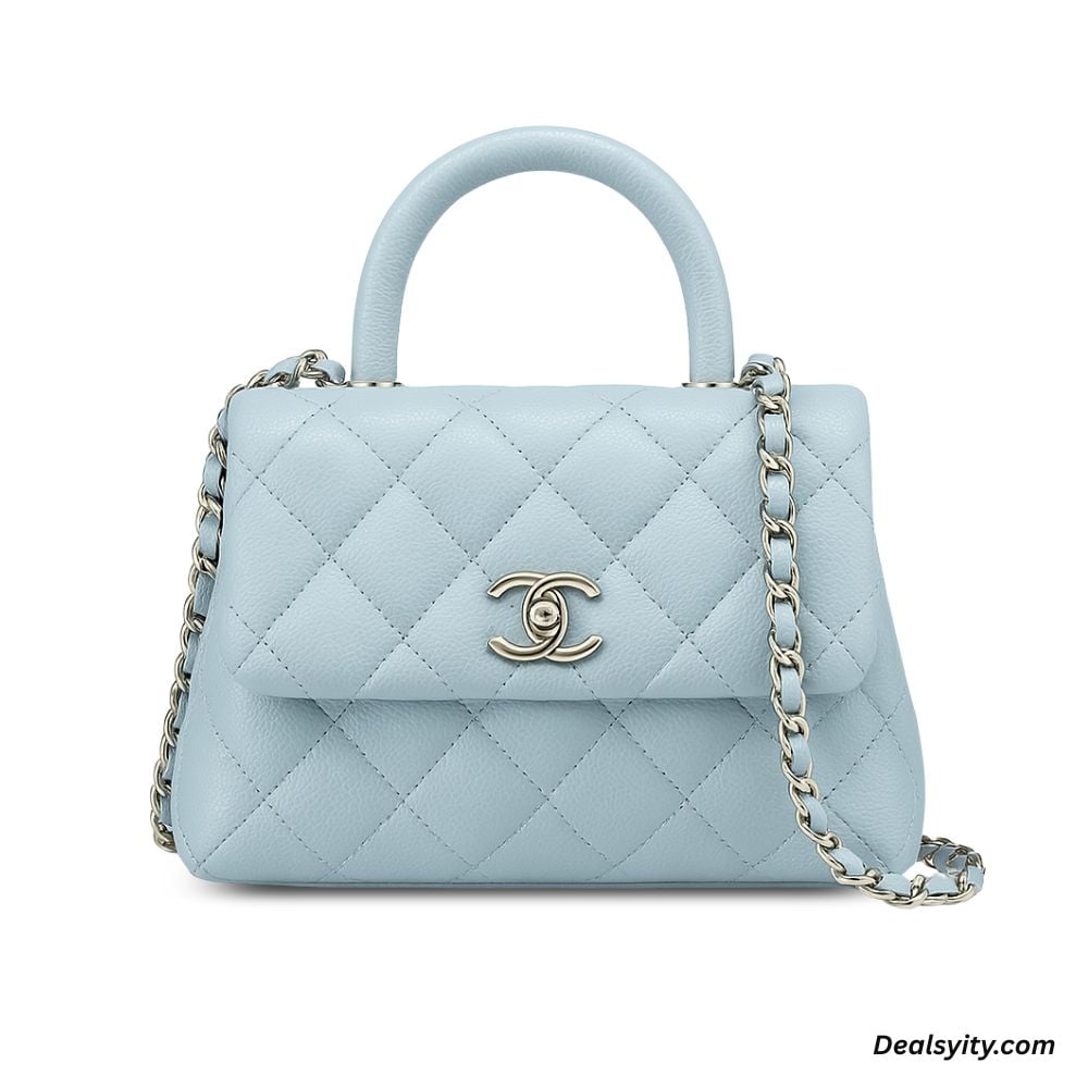 Chanel Coco Classic Flap Bag 24cm/9.4in In Caviar Leather Silver Hardware – Light Blue