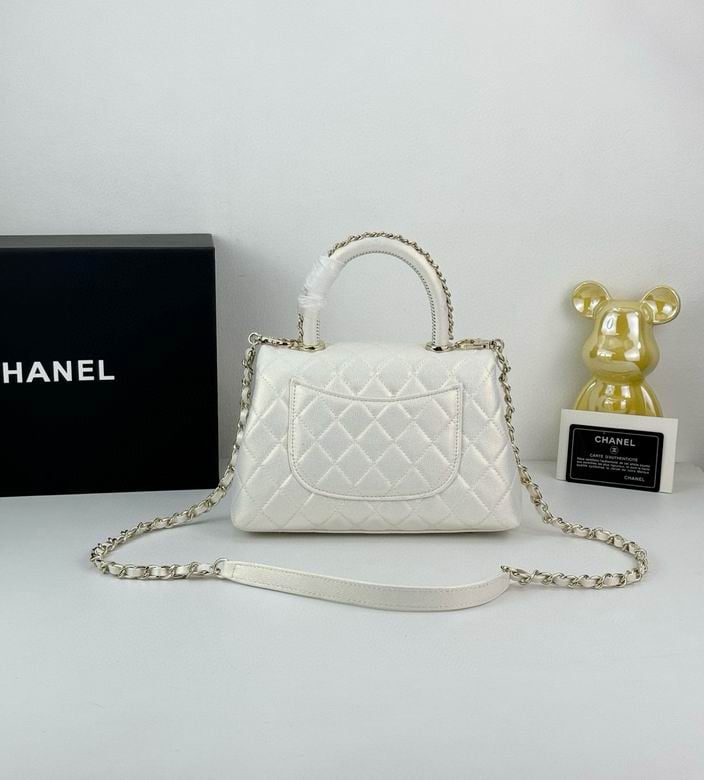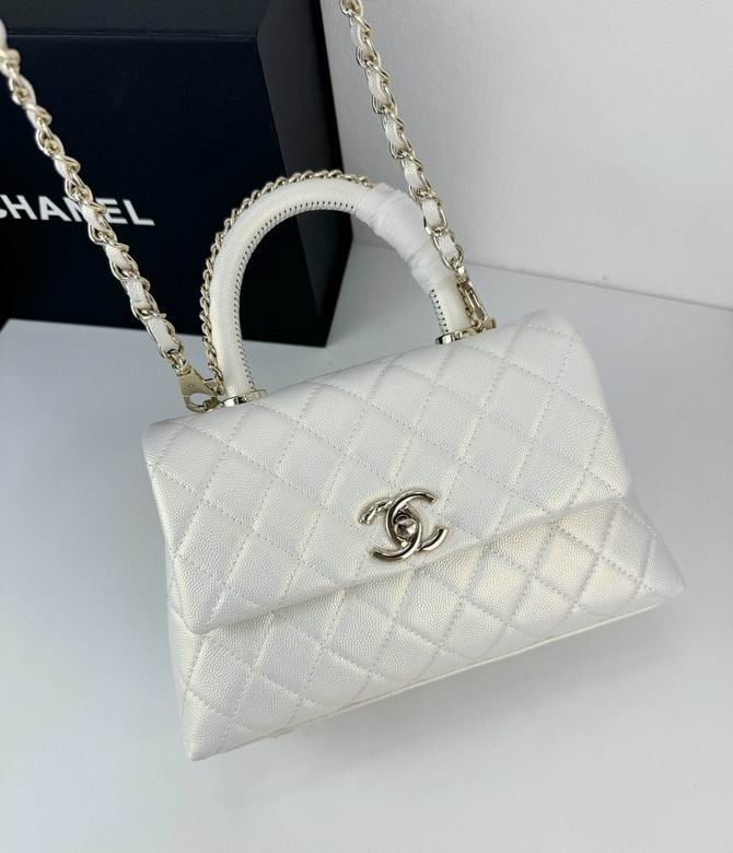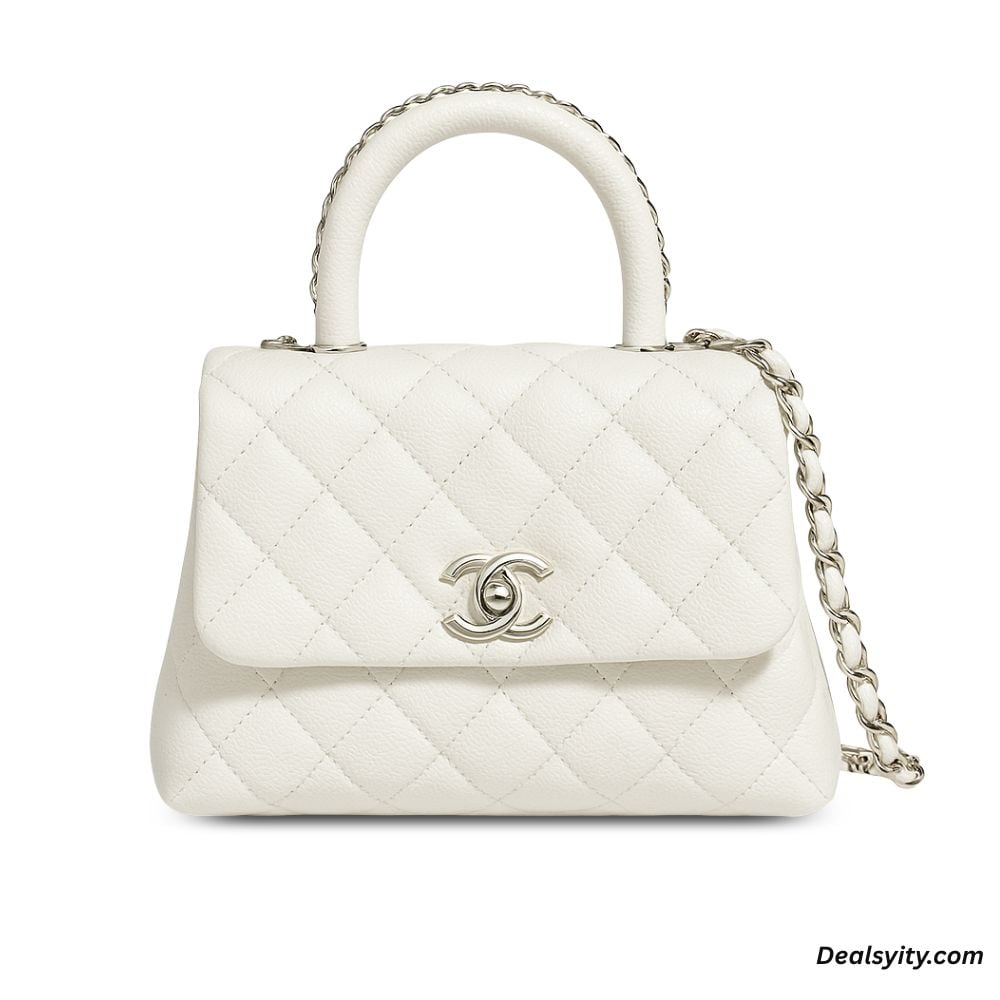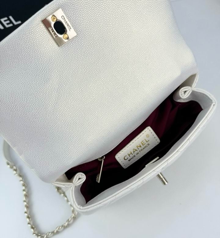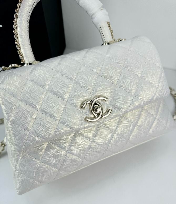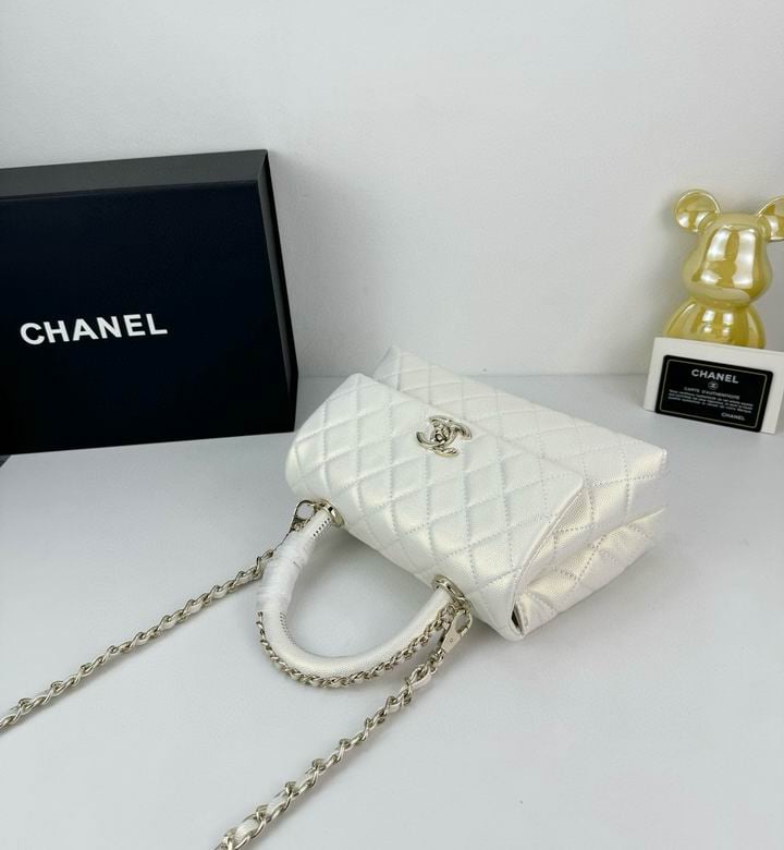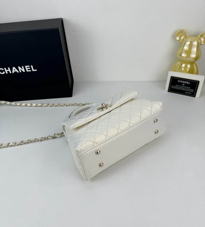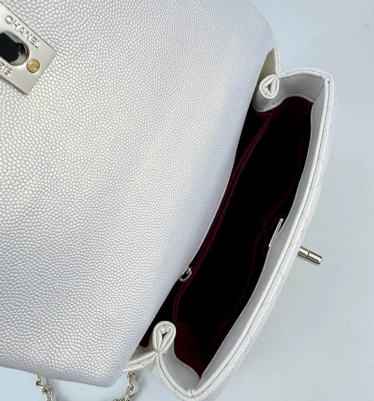 Chanel Coco Classic Flap Bag 24cm/9.4in Caviar Leather Silver Hardware – White