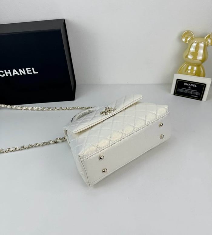 Chanel Coco Classic Flap Bag 24cm/9.4in Caviar Leather Silver Hardware – White.