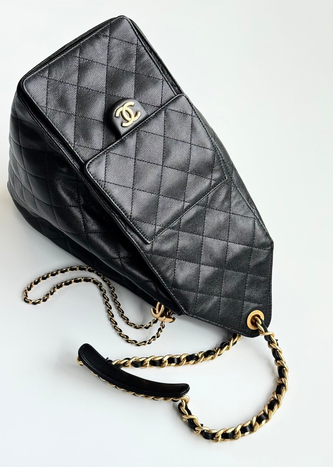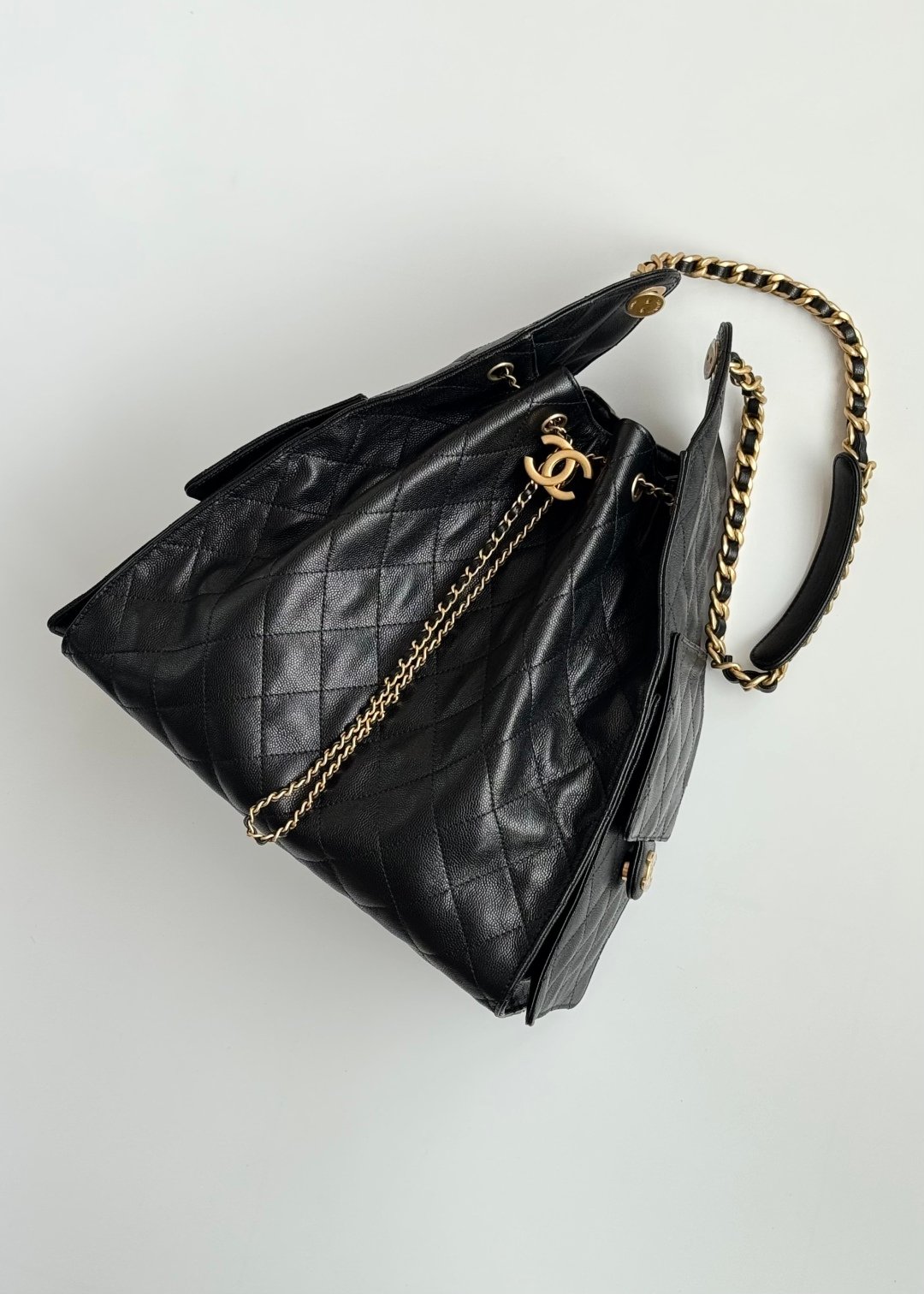 Chanel crossbody bag 25 Medium Handbag Grained Calfskin & Gold-Tone Metal Black 40cm/15.7in