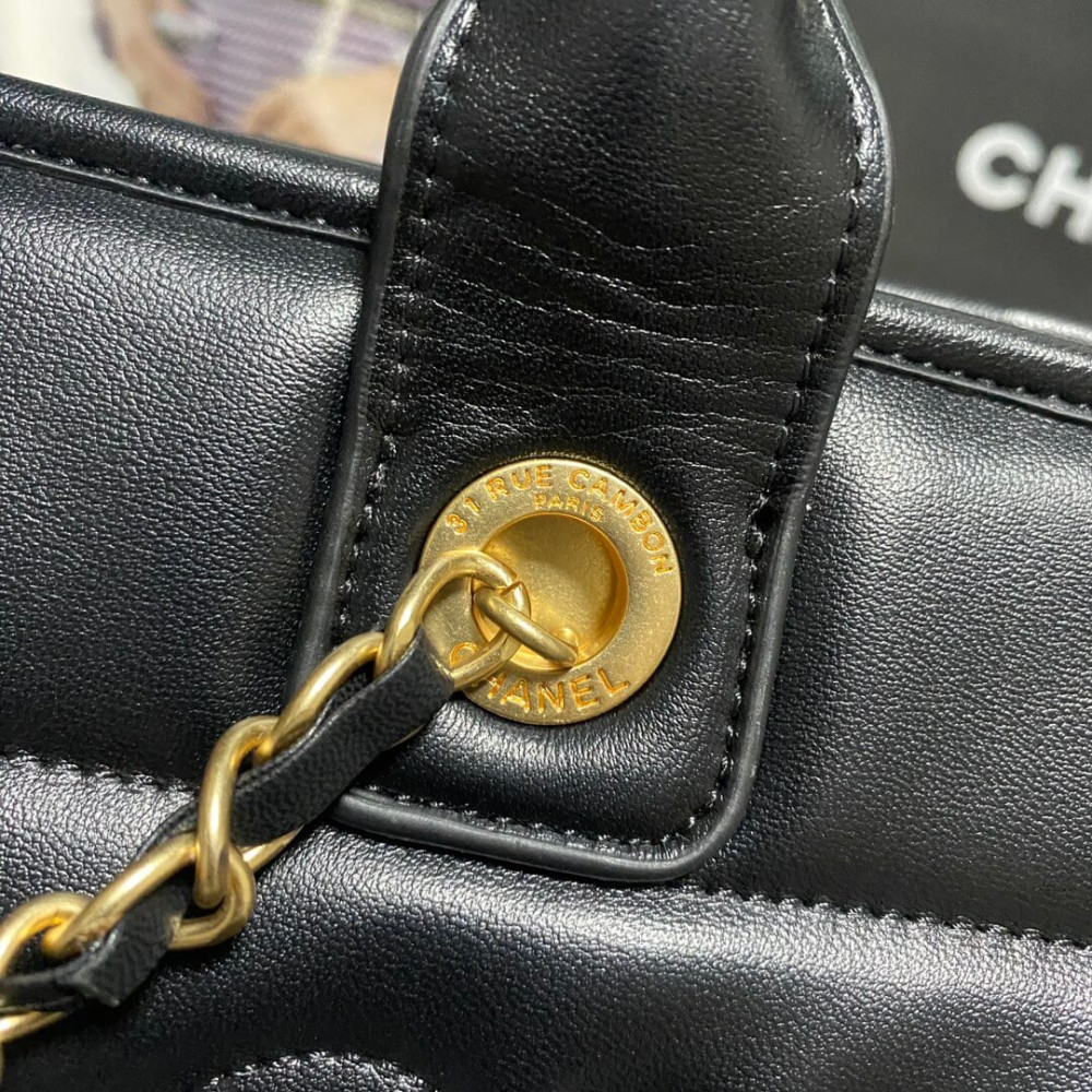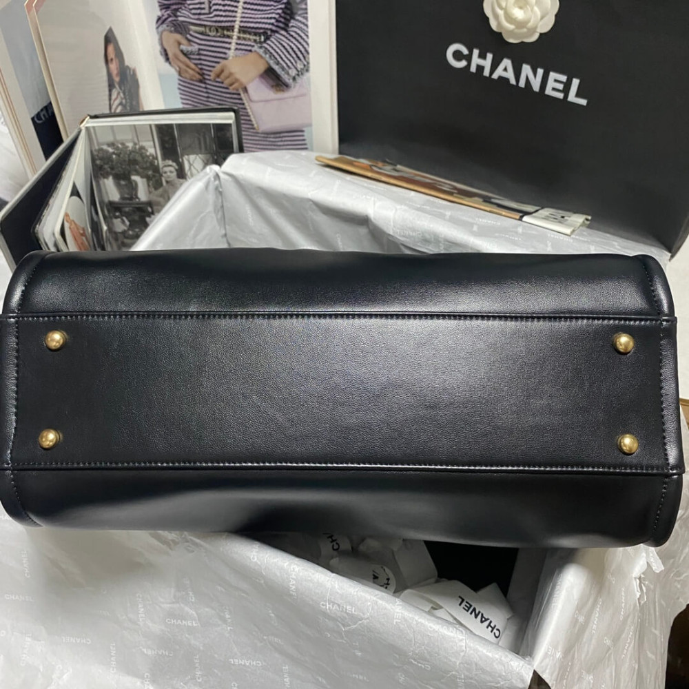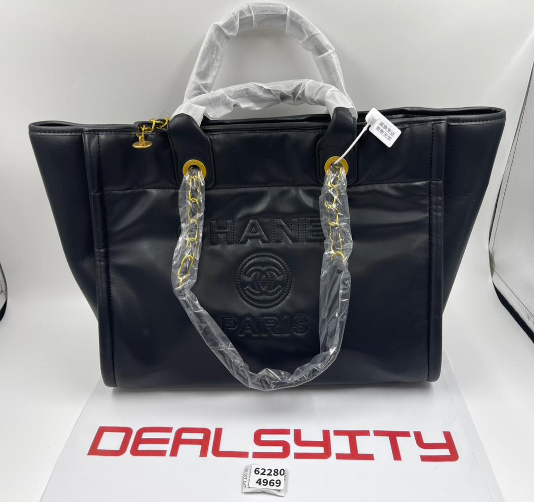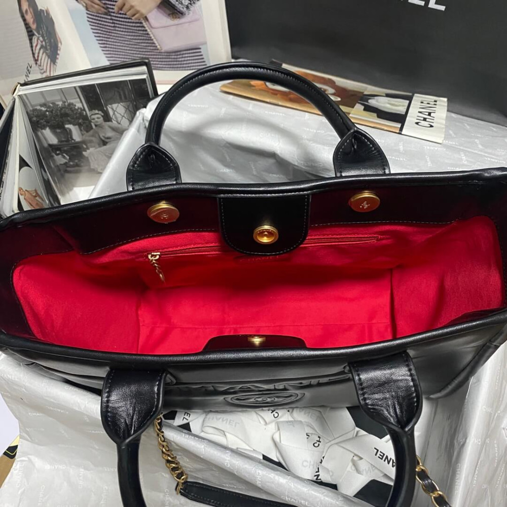 Chanel Deauville Calfskin Small Shopping Bag Black 39cm