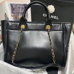 Chanel Deauville Calfskin Small Shopping Bag Black 39cm