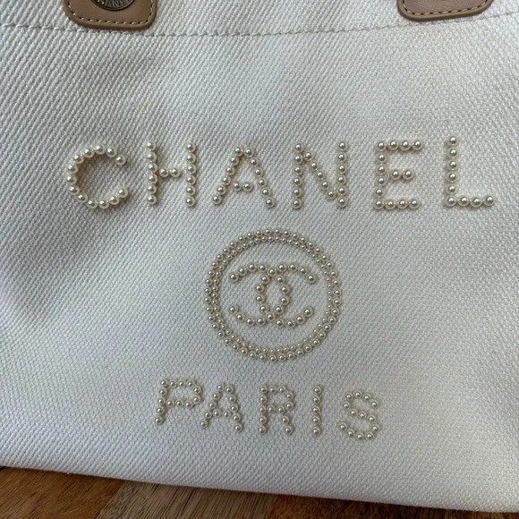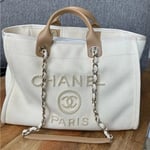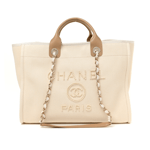 Chanel Deauville Shopping Small Tote 35Cm Mixed Fabric Calfskin White