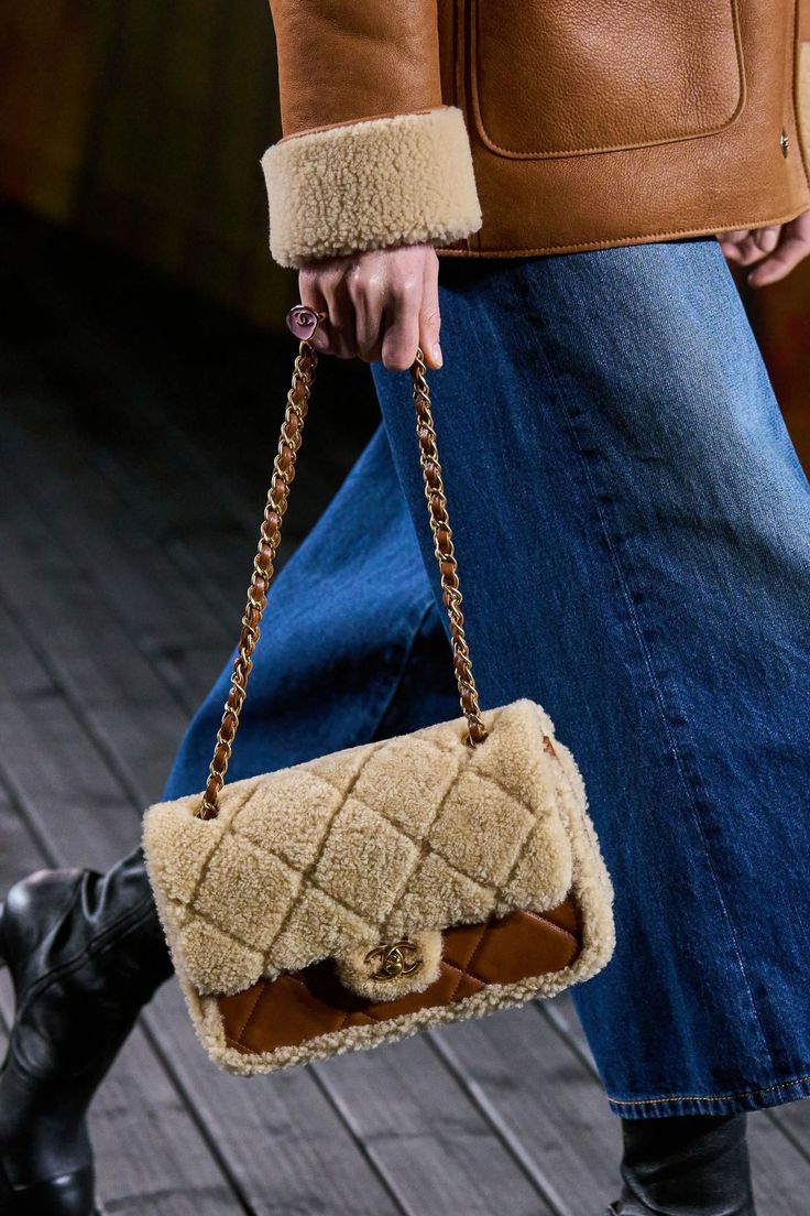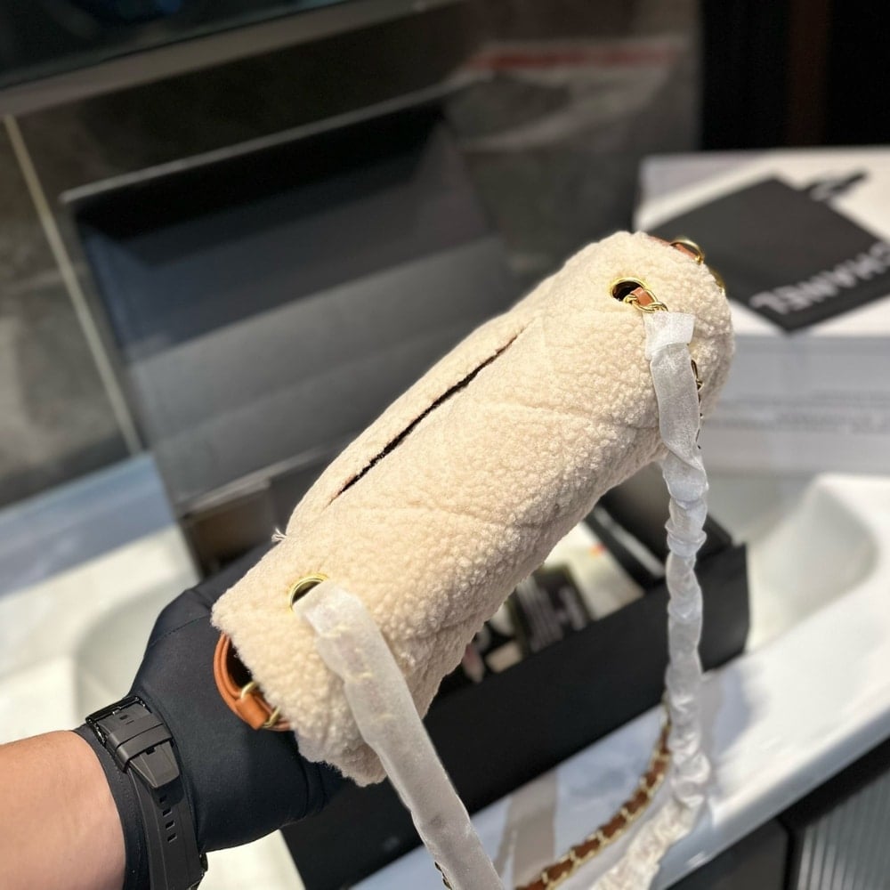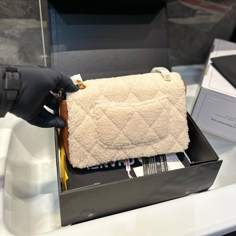 Chanel Flap Bag Shearling Beige And Brown 23Cm