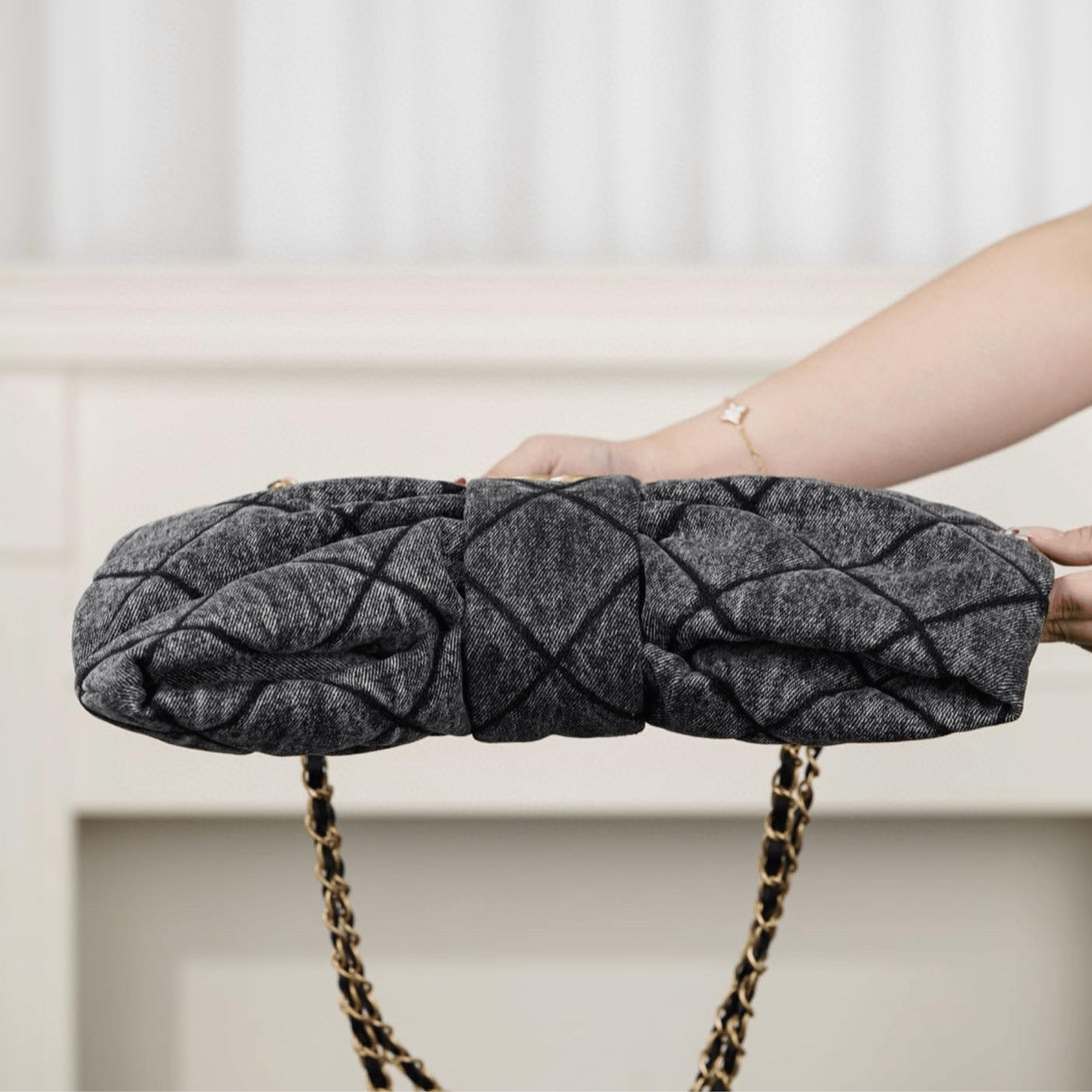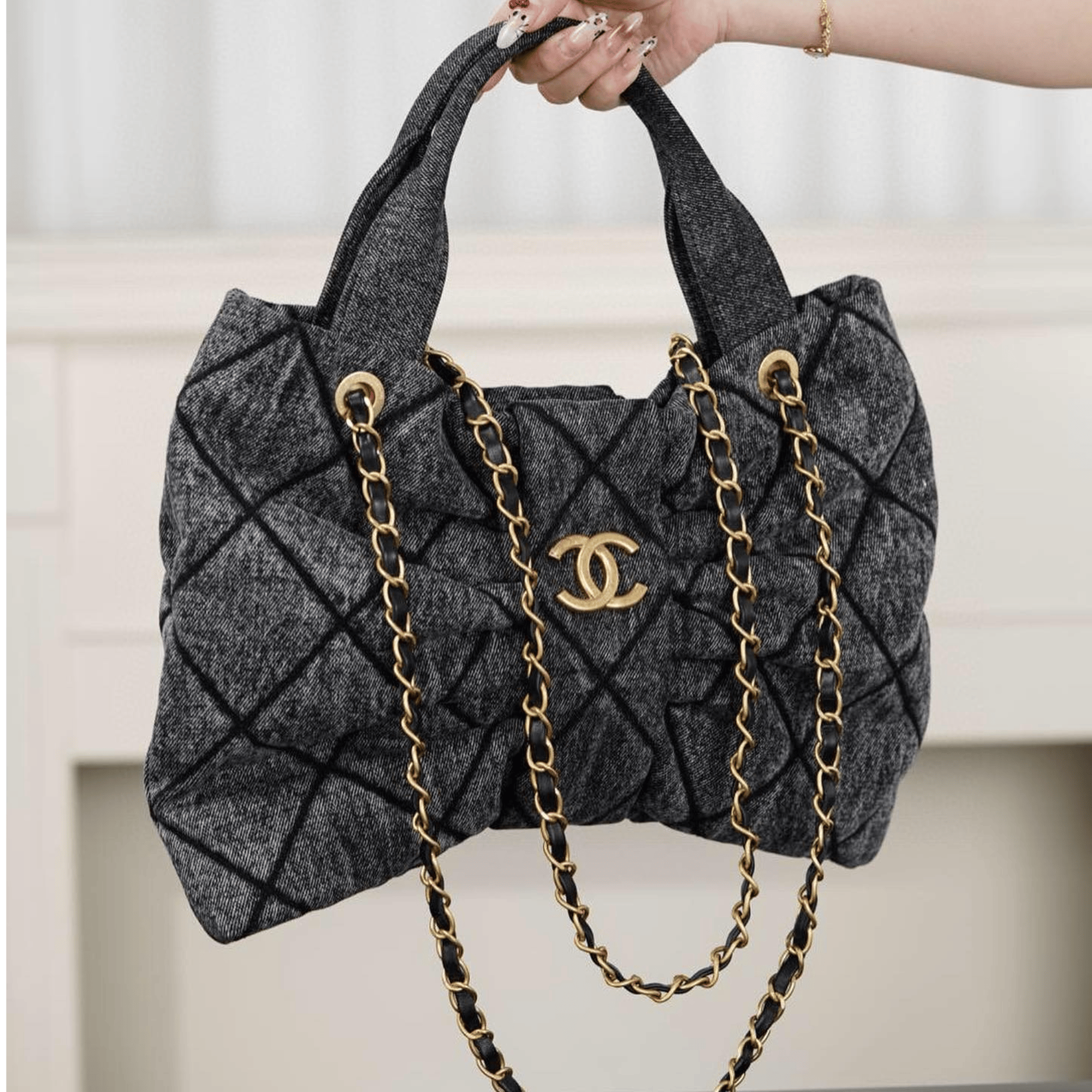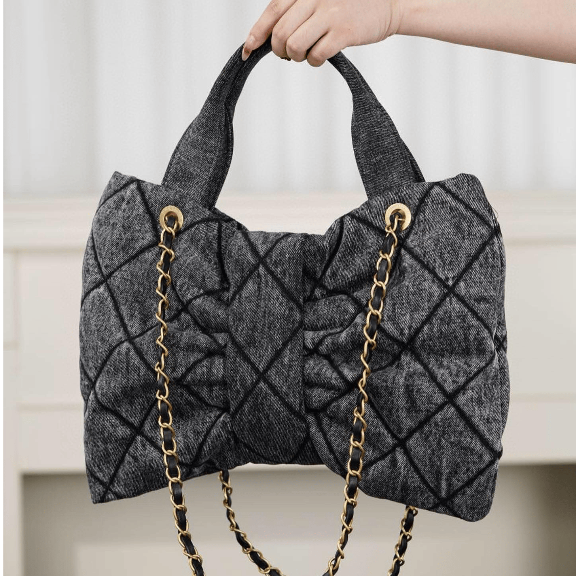 Chanel Grey Bow Pattern Chain Shoulder Bag