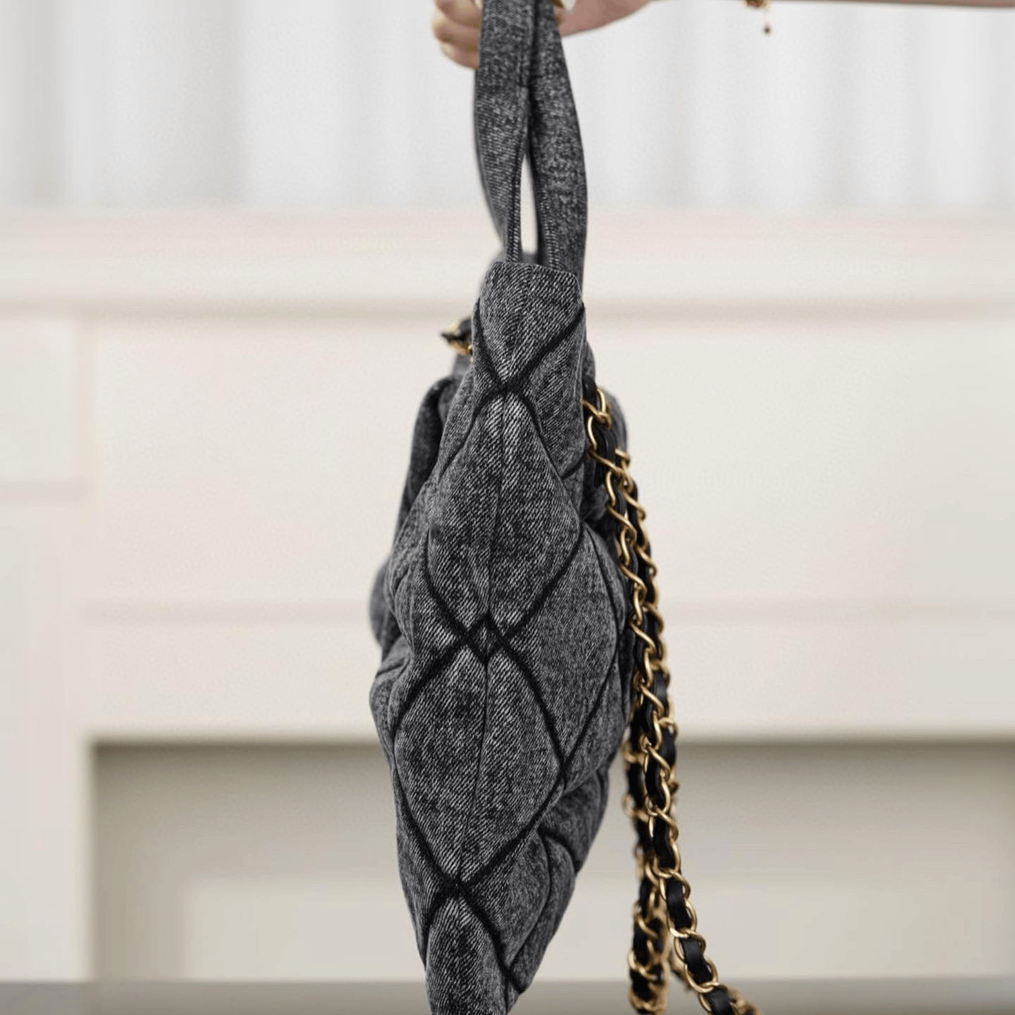 Chanel 22 Bag Handbag Black Shiny Calfskin 45cm