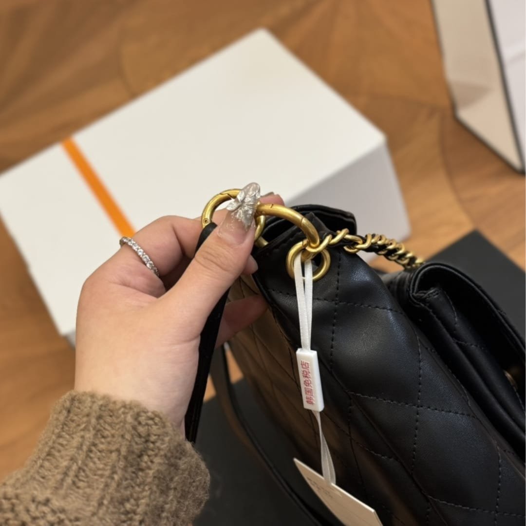 Chanel Hobo Bag Glossy Calfskin Black 25Cm/9.8in