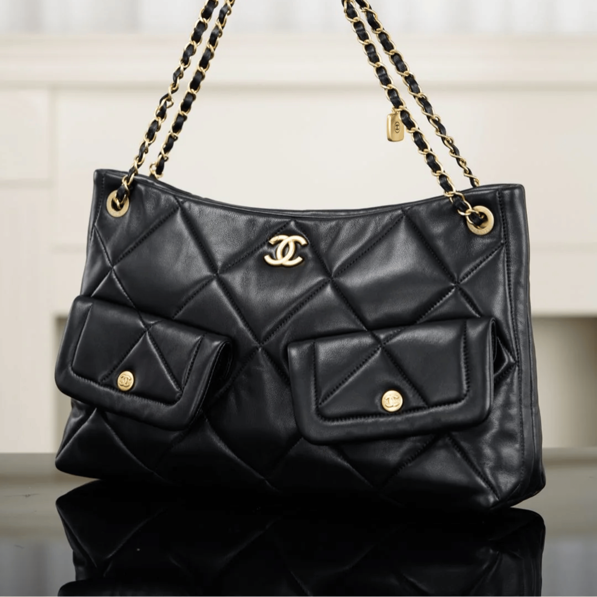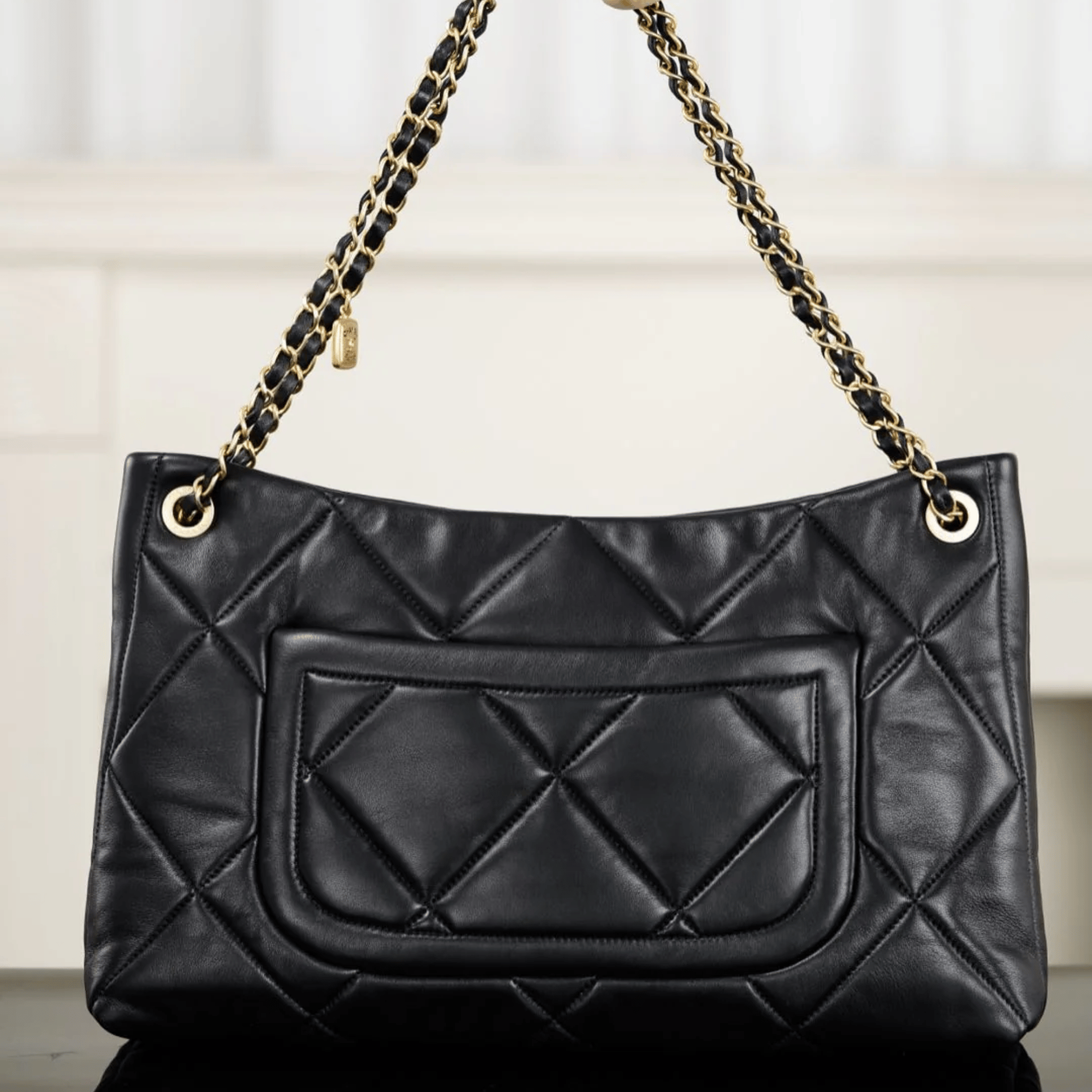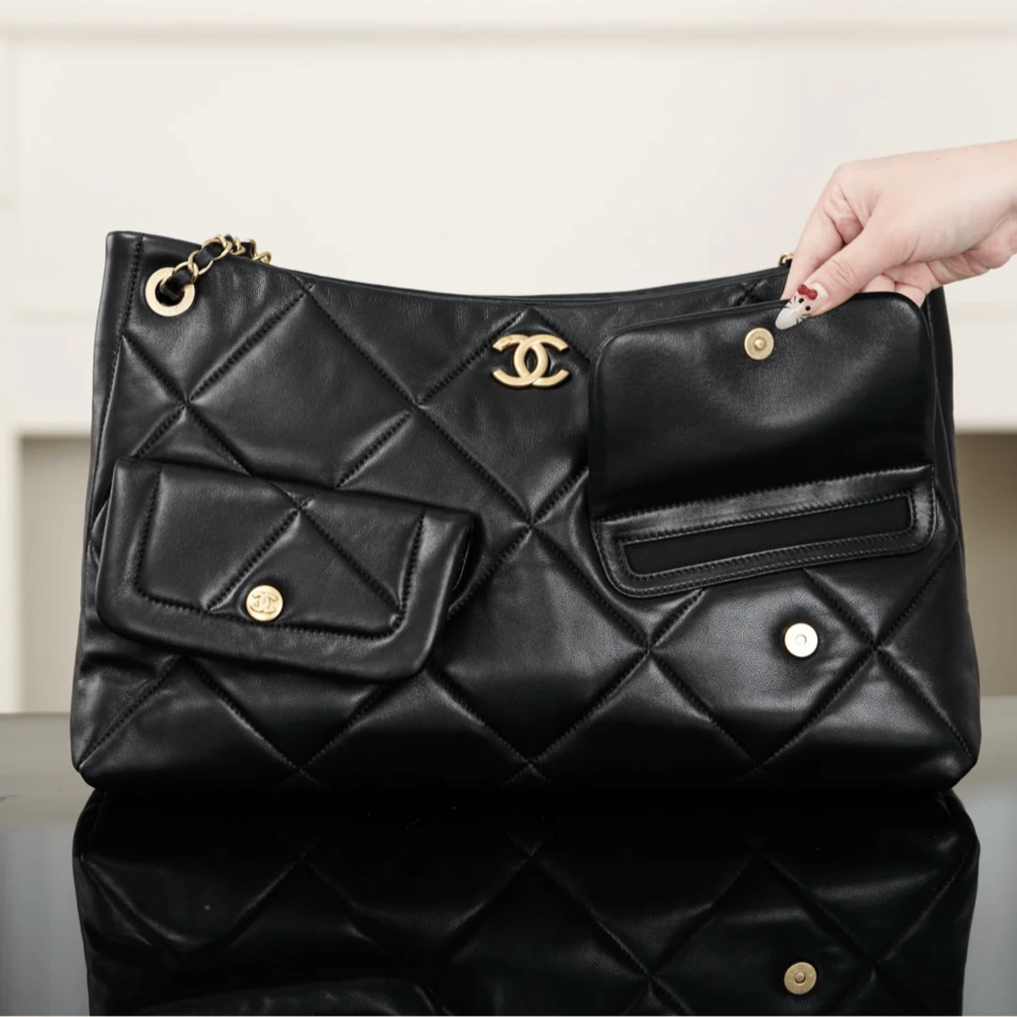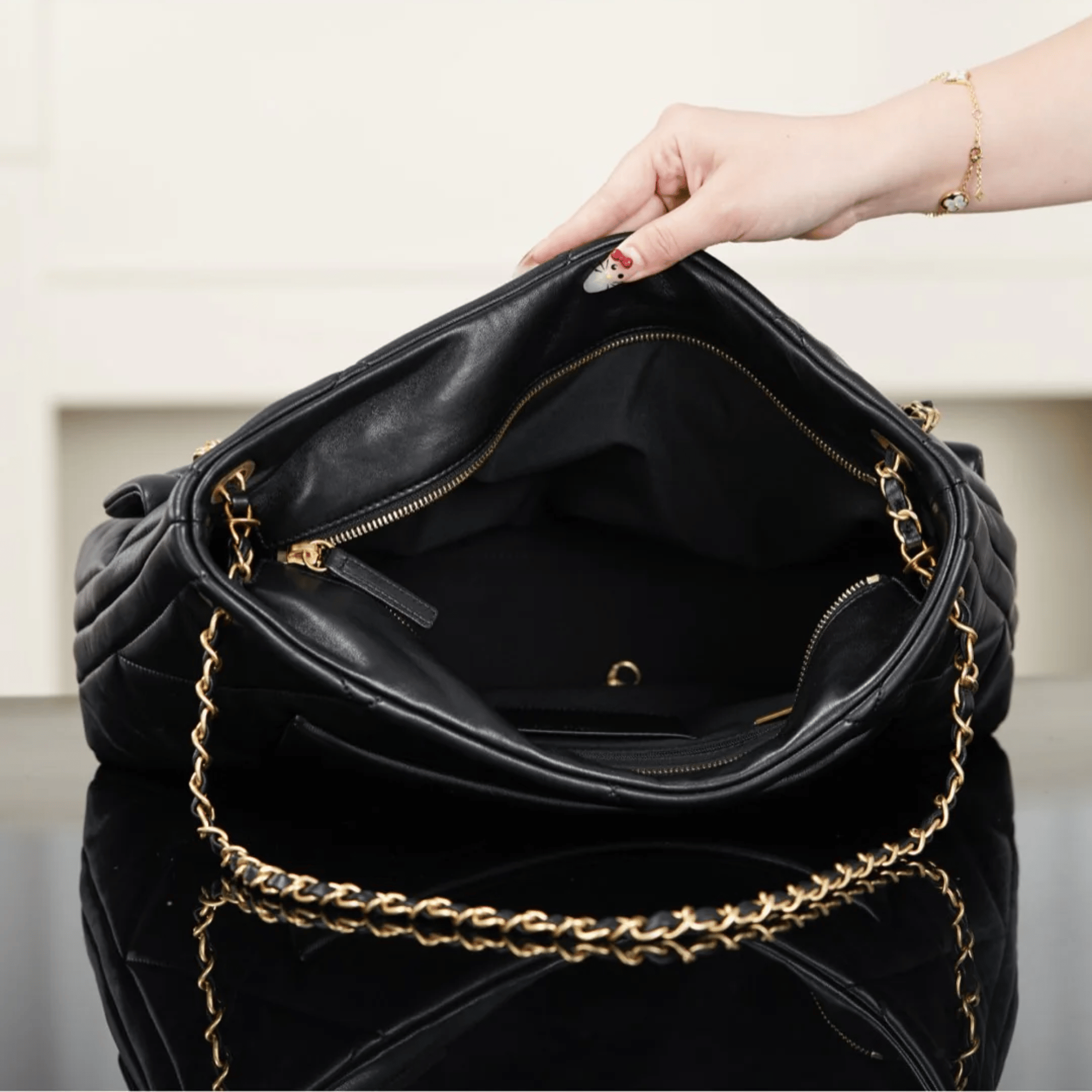 Chanel Hobo Shopping Bag Black – Gold Lambskin 38cm/15in