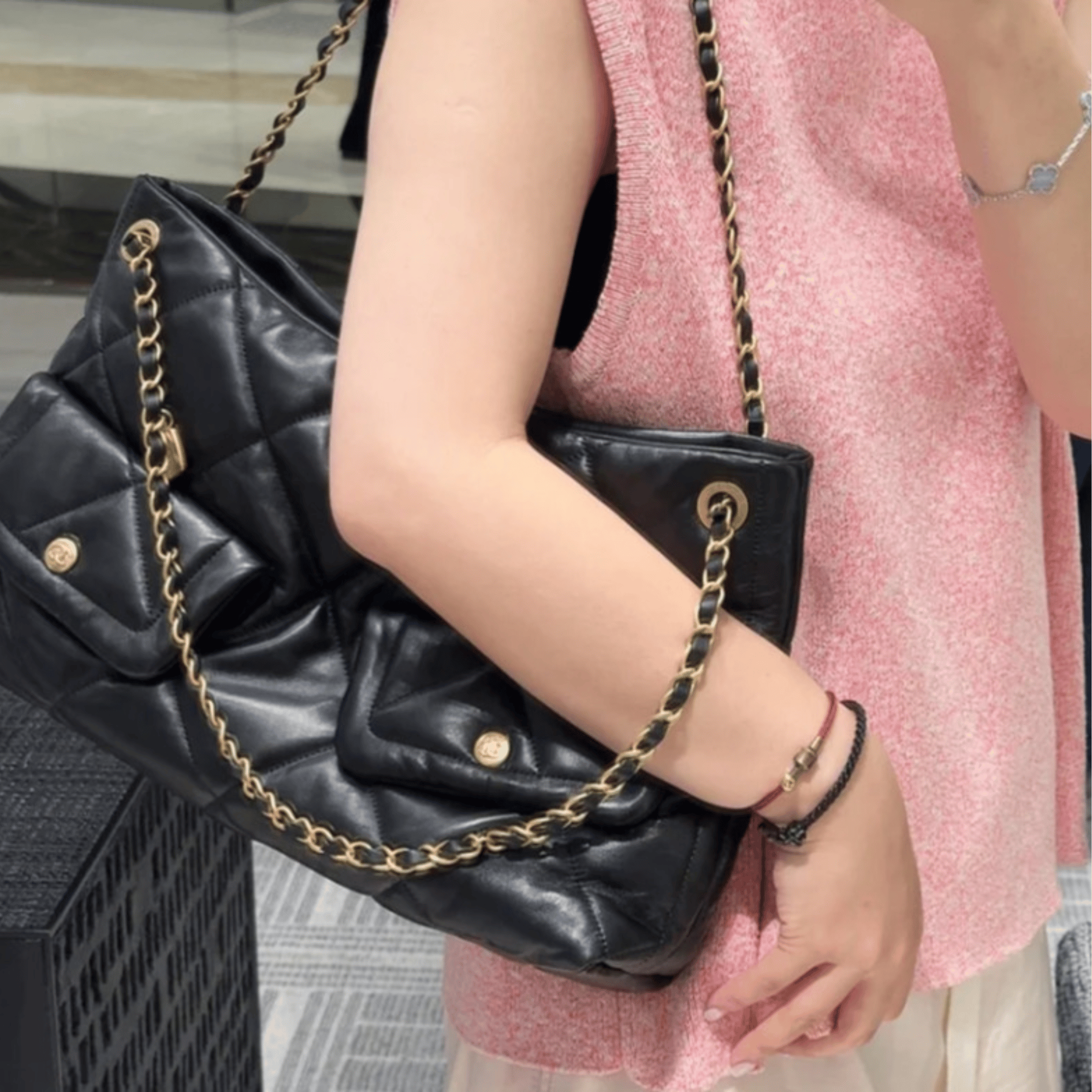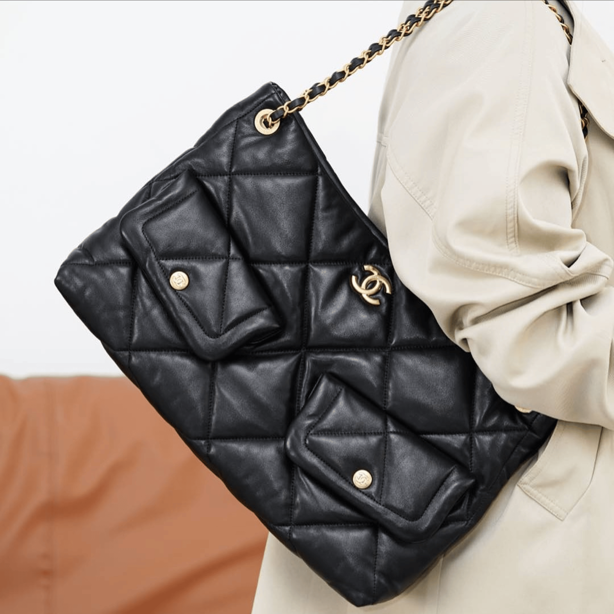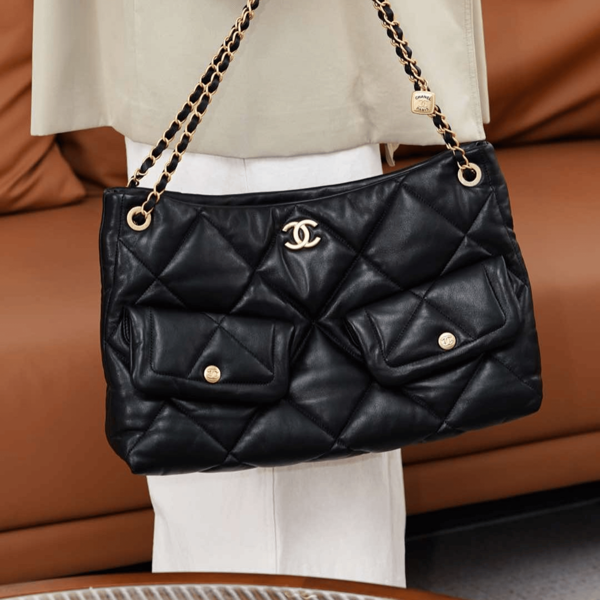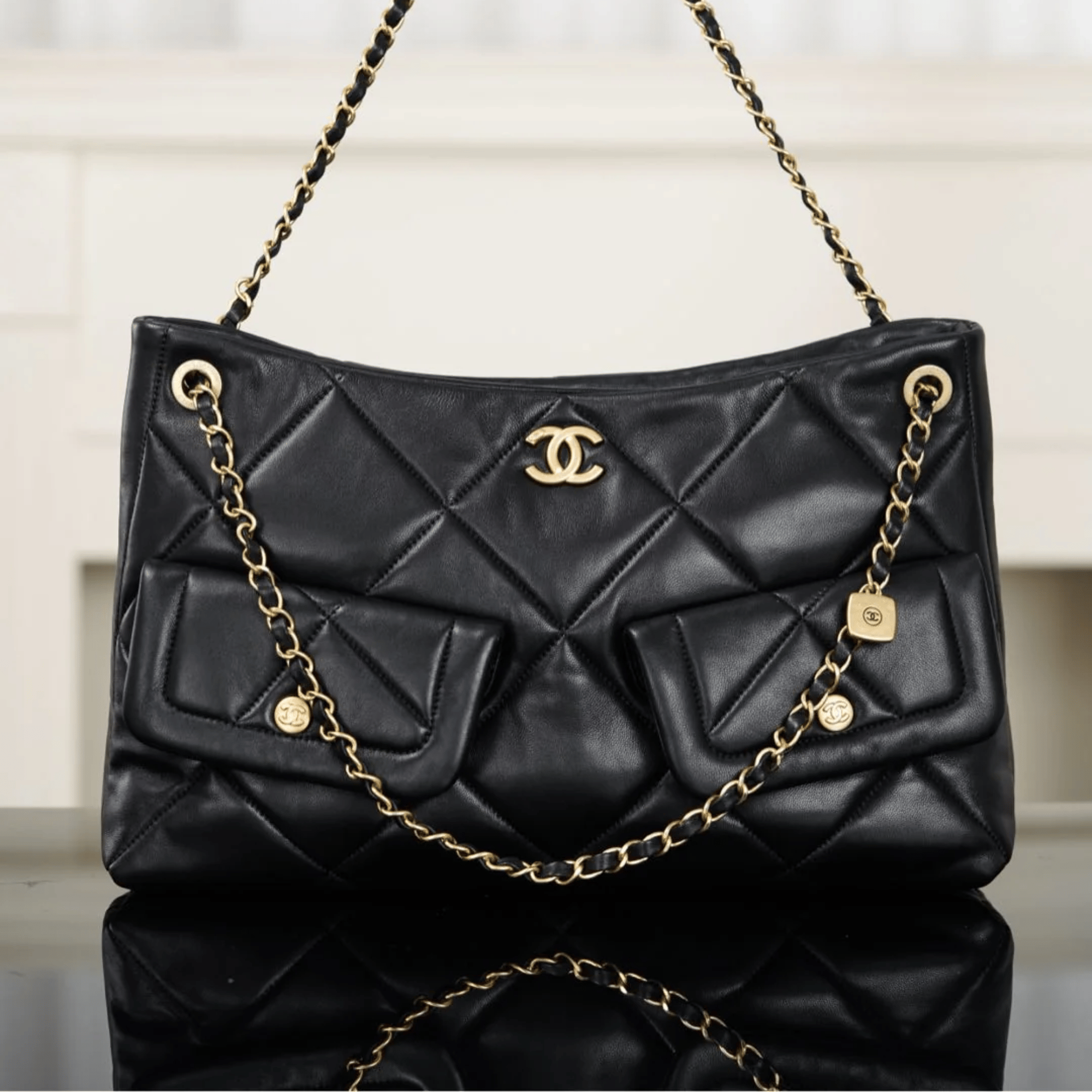 Chanel Hobo Shopping Bag Black – Gold Lambskin 38cm/15in