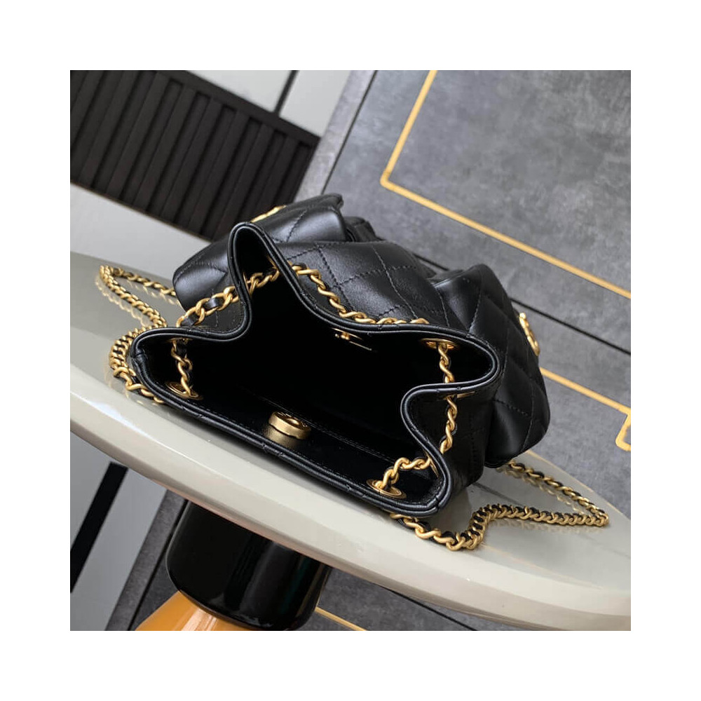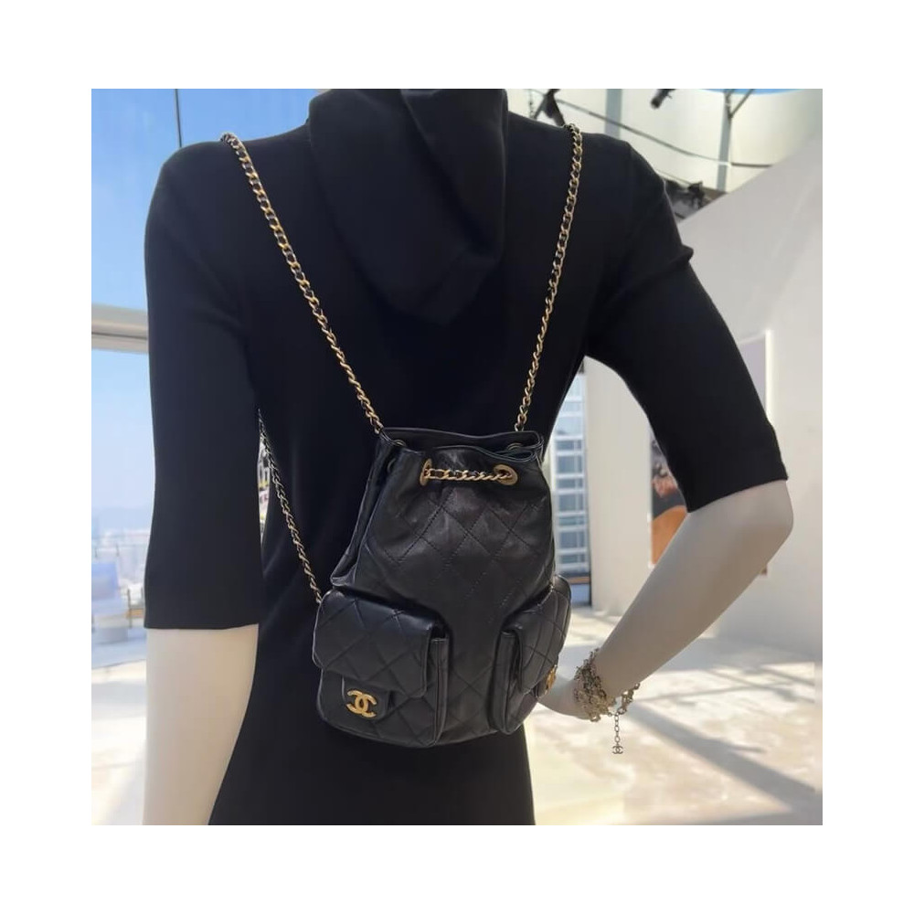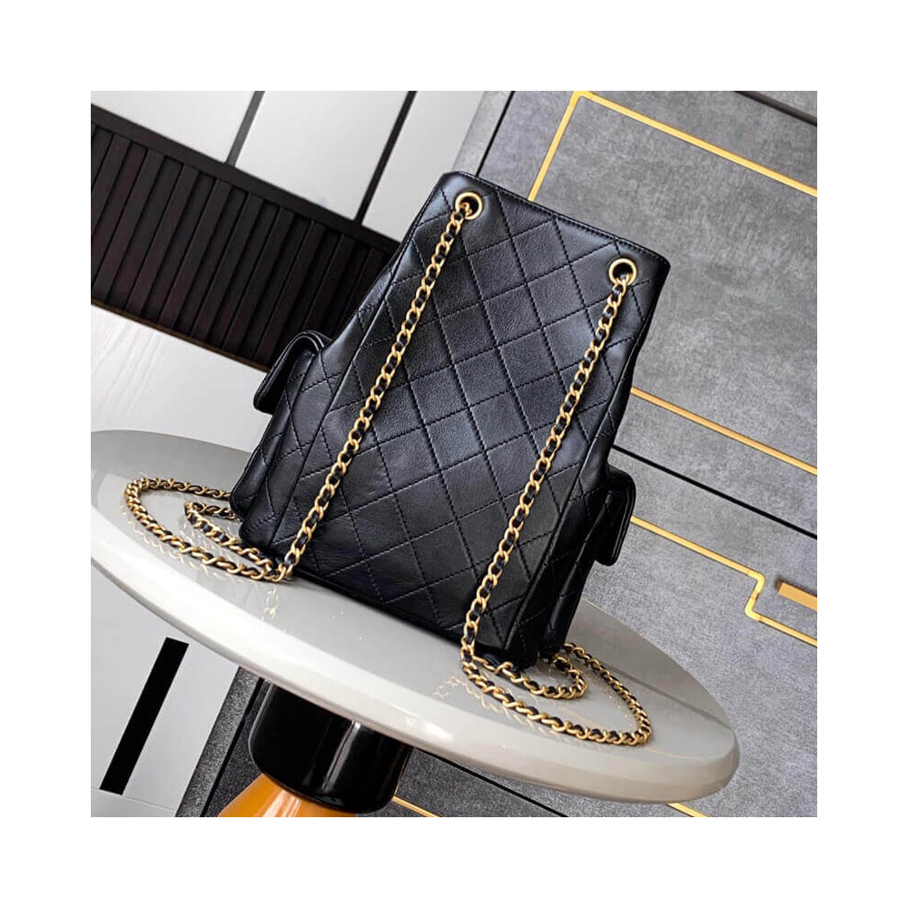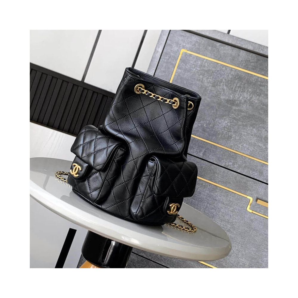 This Chanel Shiny Lambskin Backpack from the Cruise 2024/25 collection is the epitome of timeless sophistication and functionality. Crafted from durable yet luxurious quilted lambskin with gold-tone hardware, it is both stylish and practical. Featuring adjustable chain-link straps and multiple carrying options, this backpack is designed to complement any outfit while offering ample storage for your essentials.