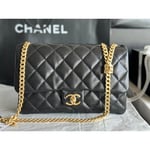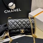 – Gold Lambskin leather strap with interwoven chain detail