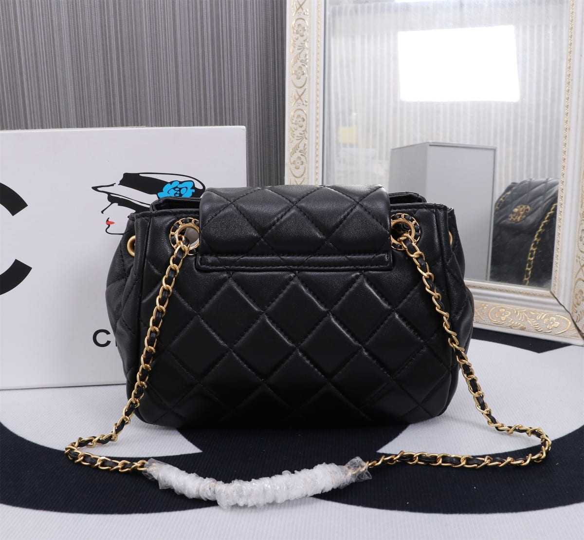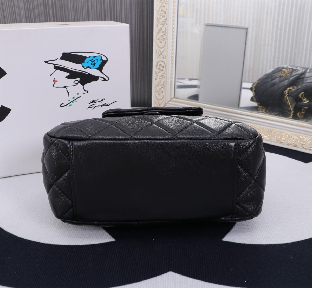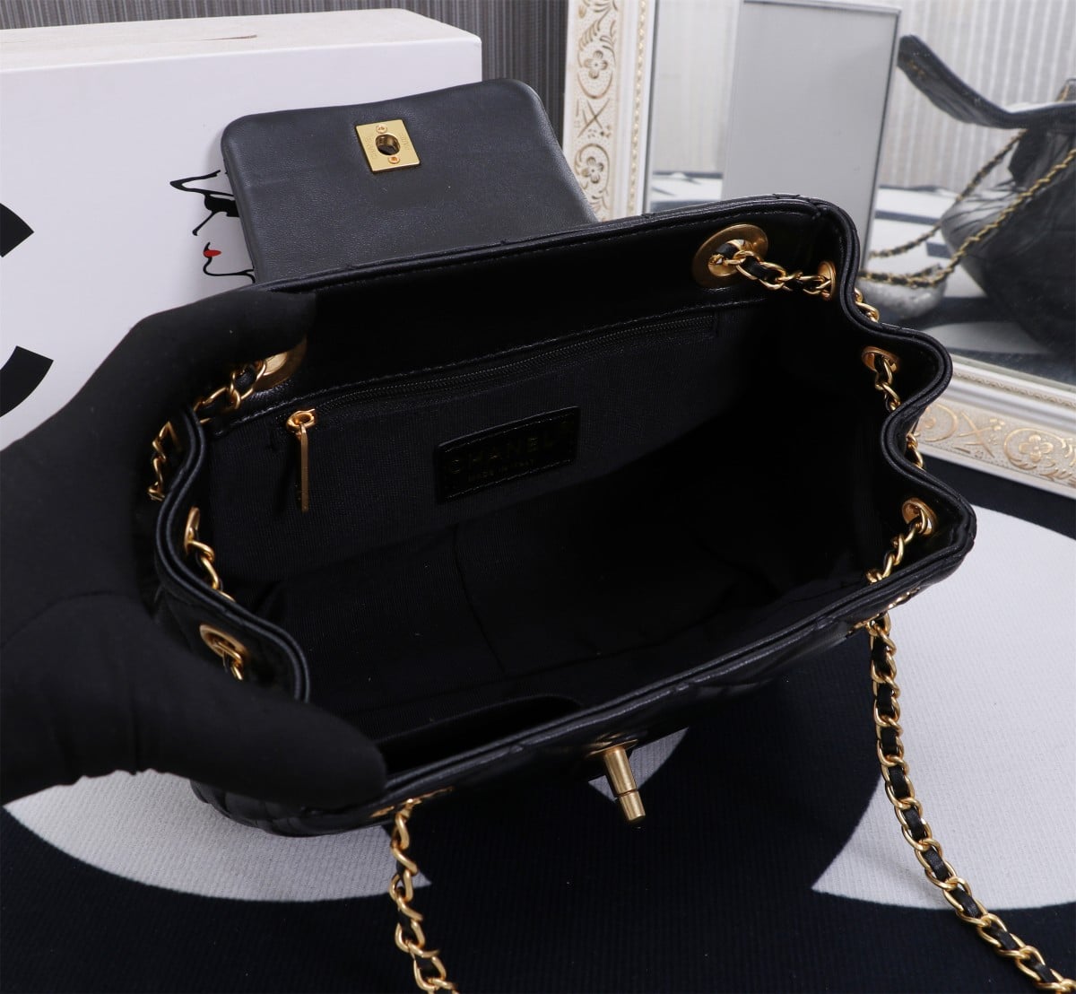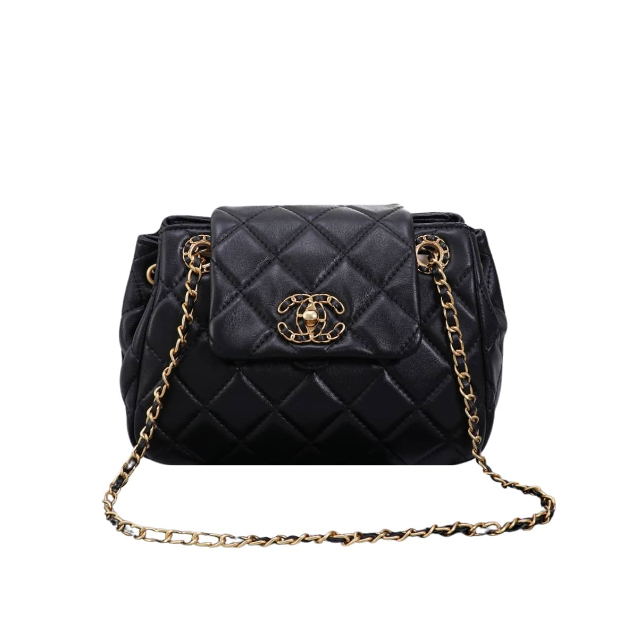 Chanel Mix Accordion Cc Flap Bag Quilted Glazed Calfskin Black 23Cm