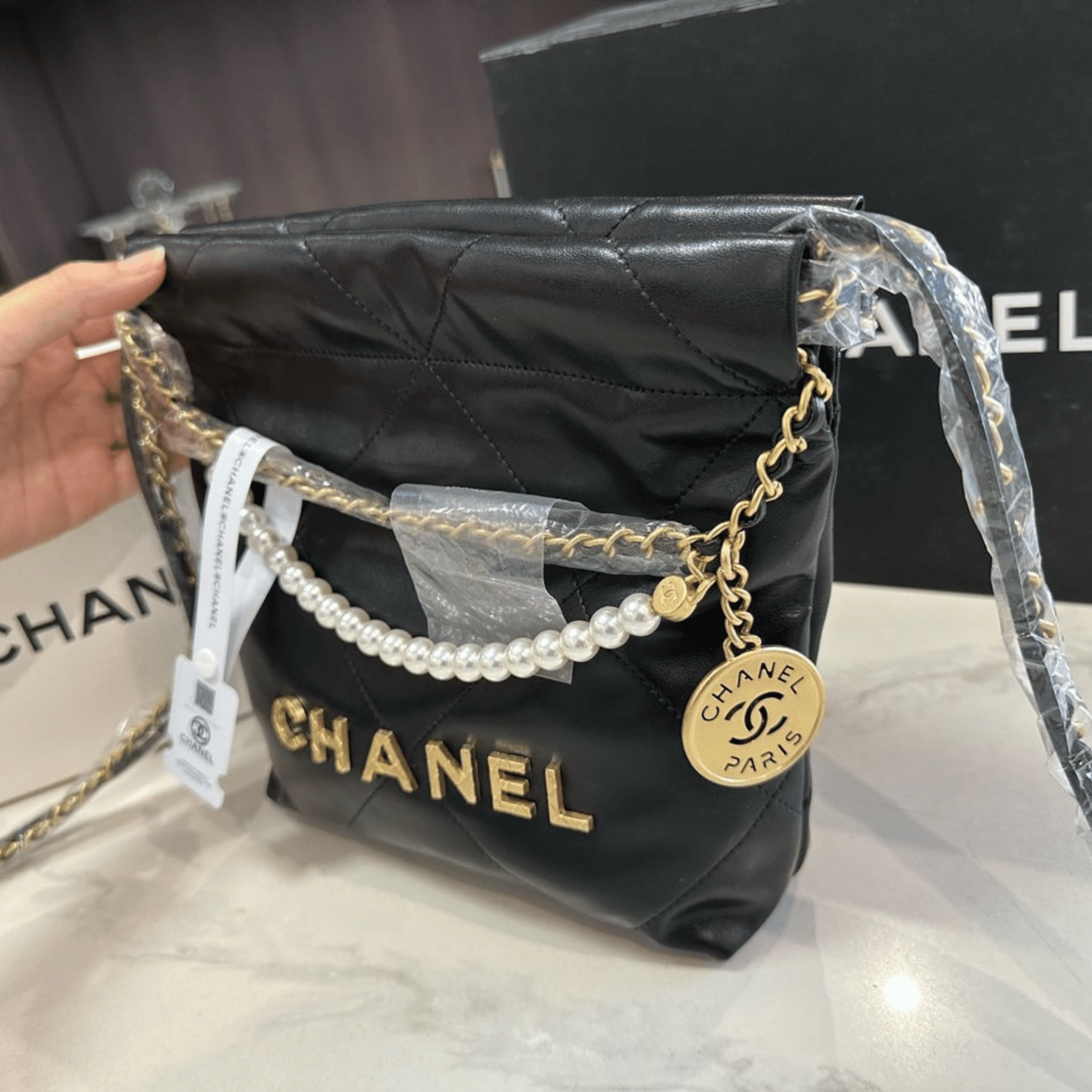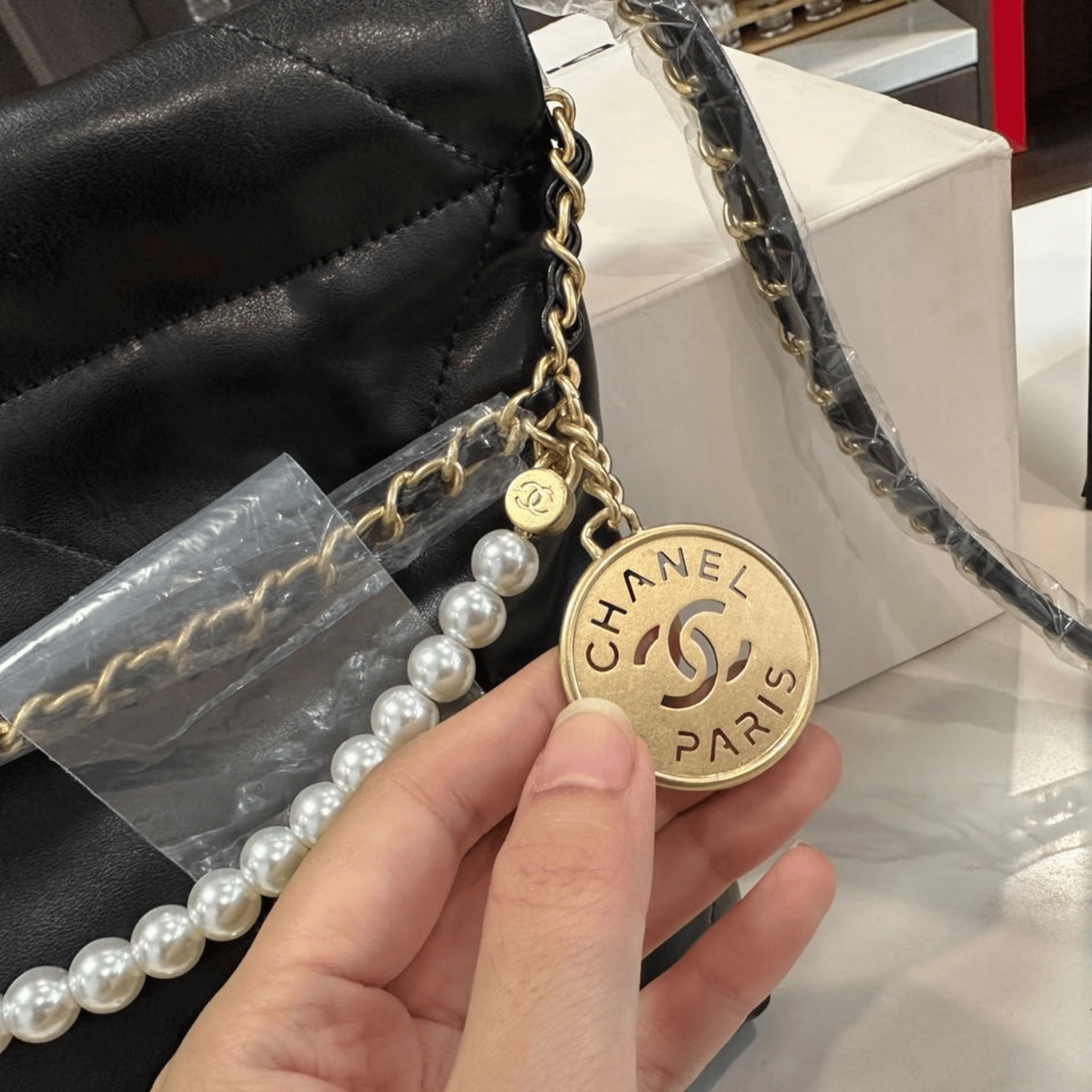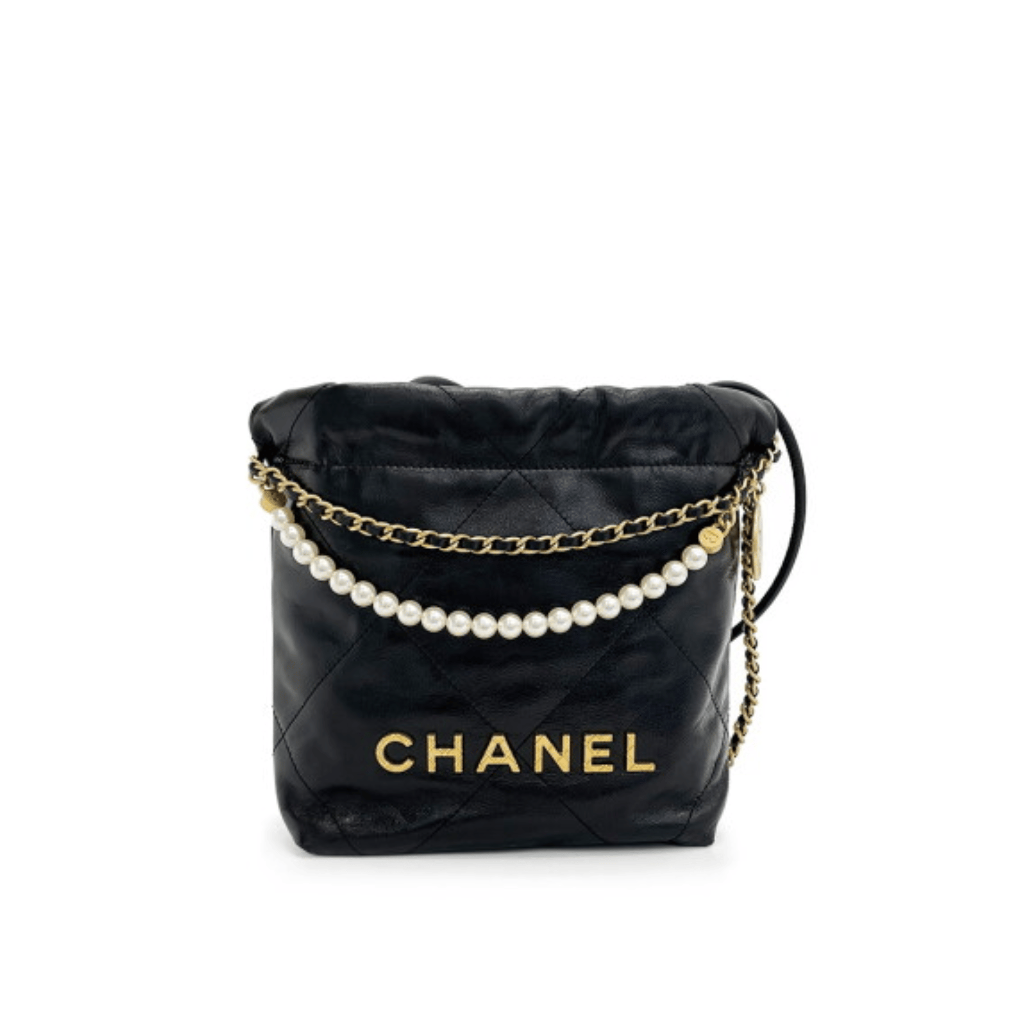 Chanel Pearl Chain Mini Vintage Gold Bag 20cm