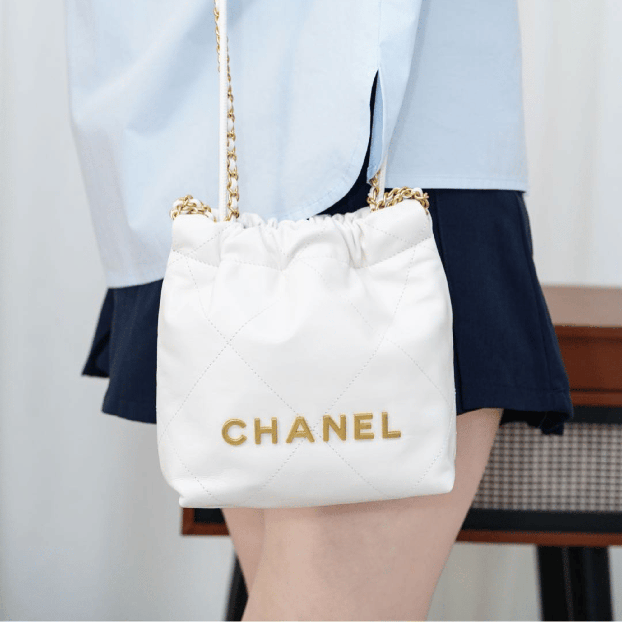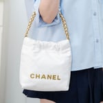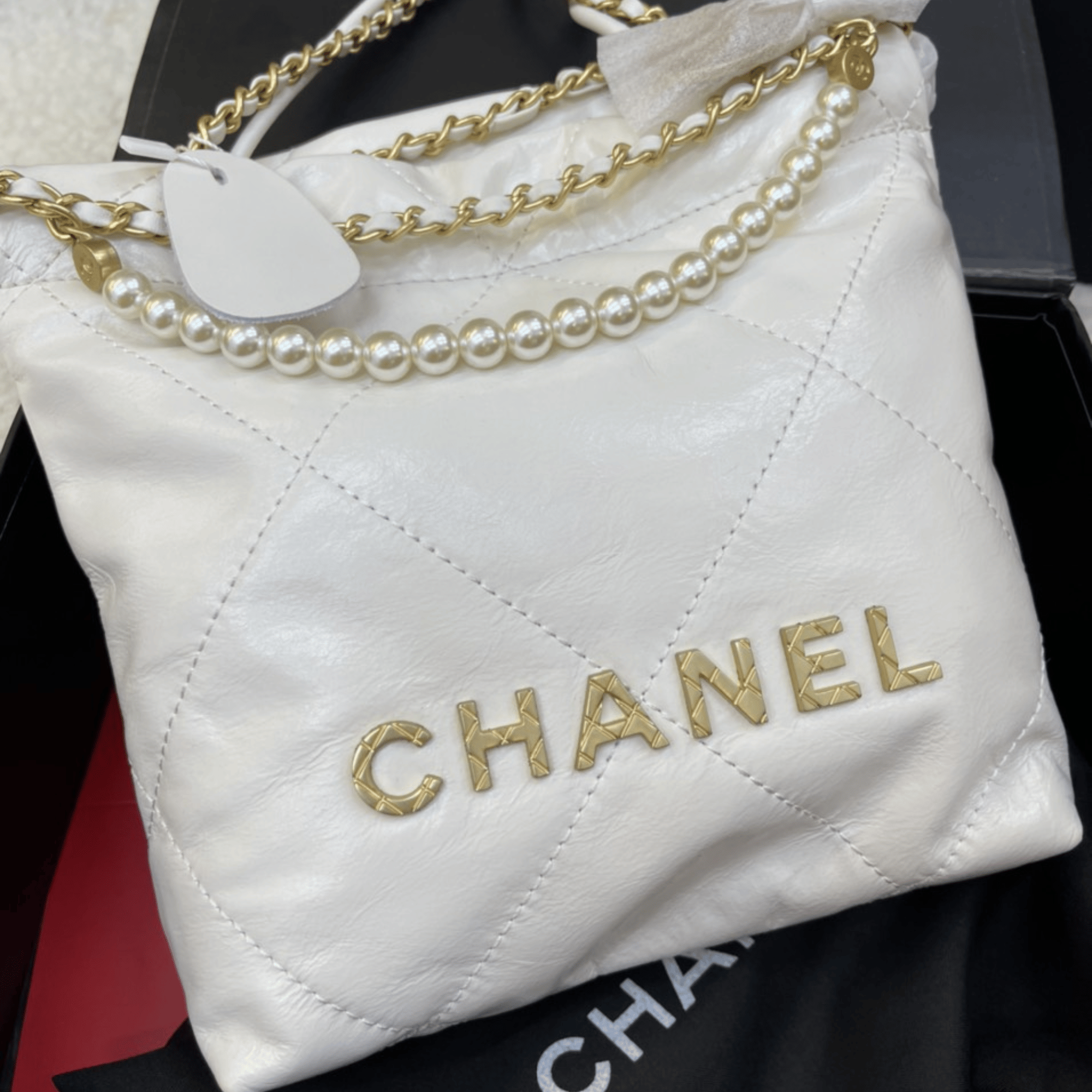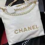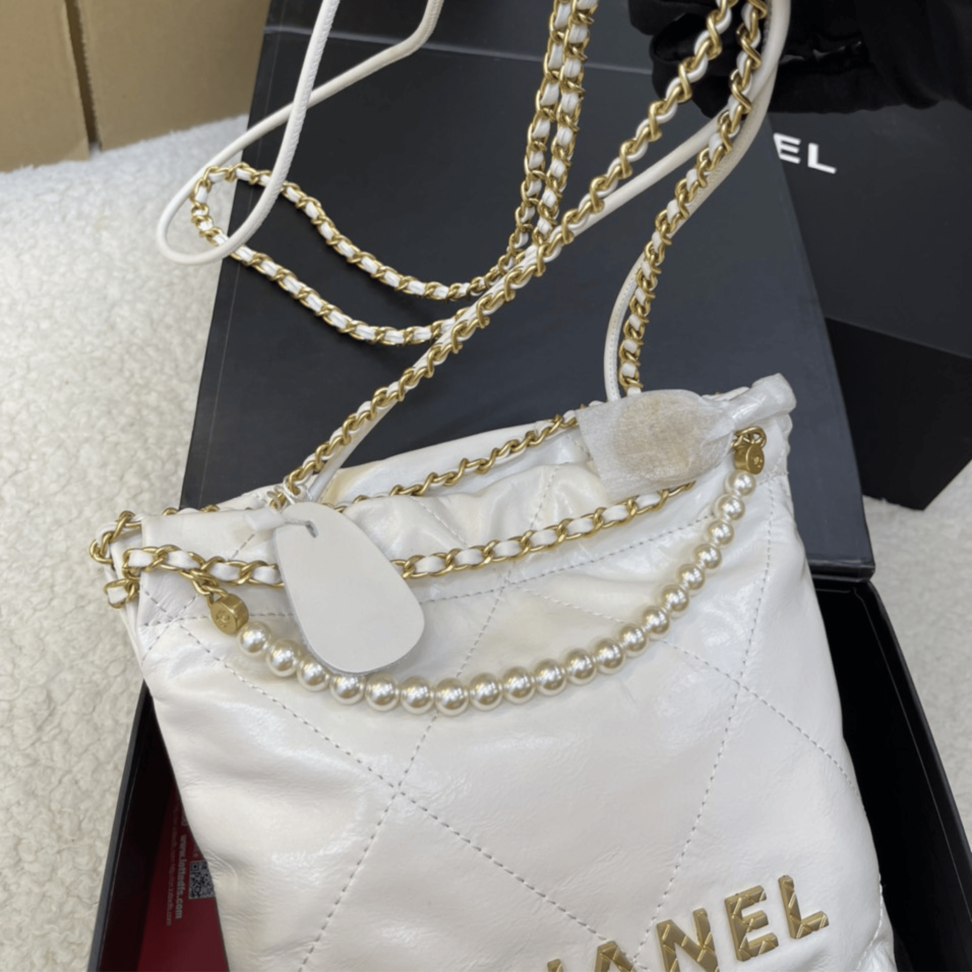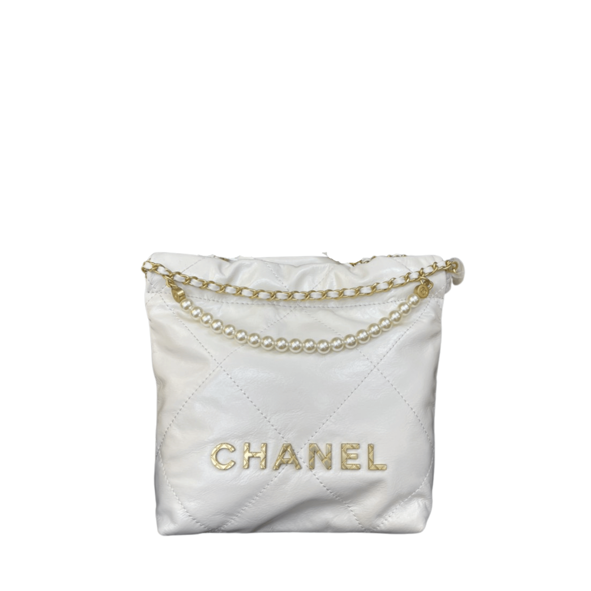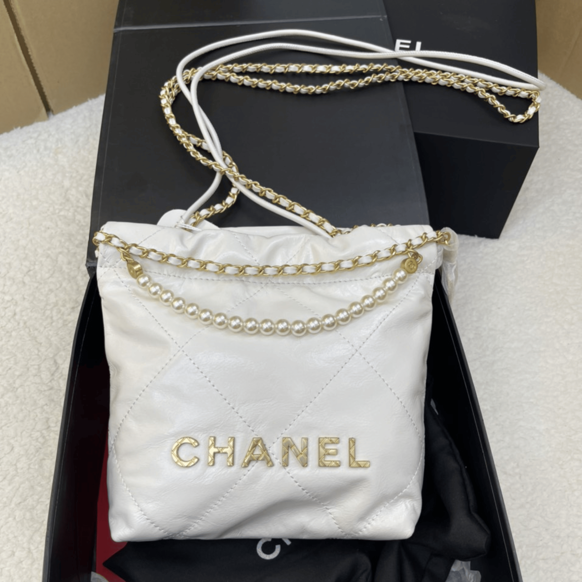 Chanel Pearl Chain White Mini Vintage Gold Bag 20cm
