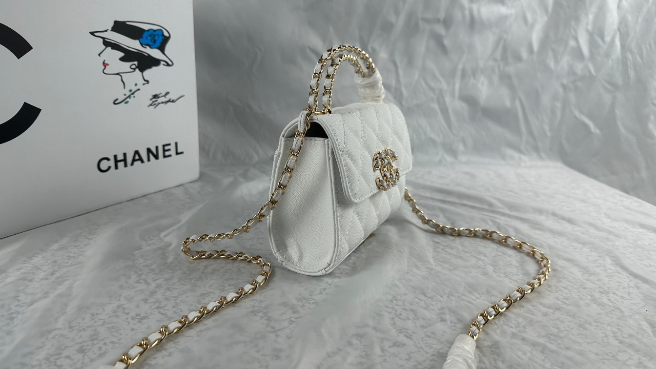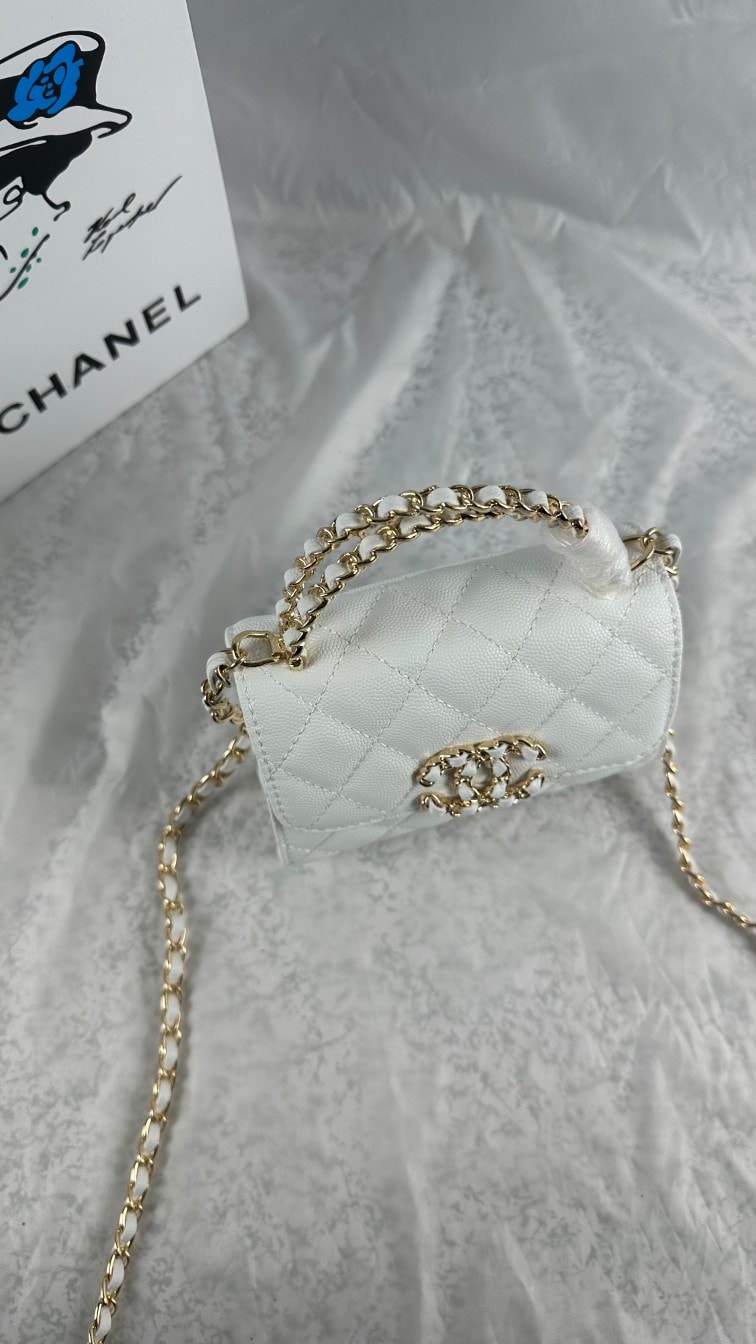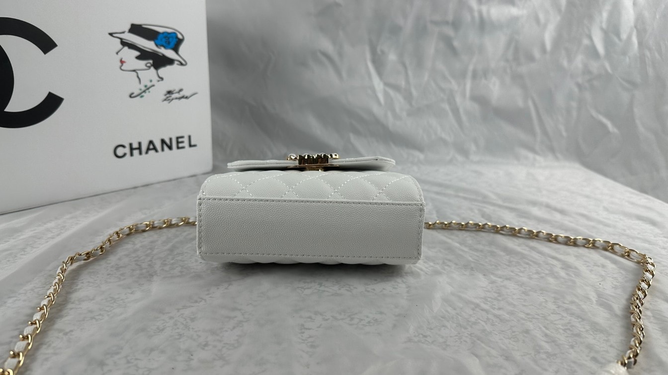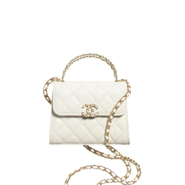 Chanel Top Handle Clutch With Chain In Caviar White 15Cm/5in