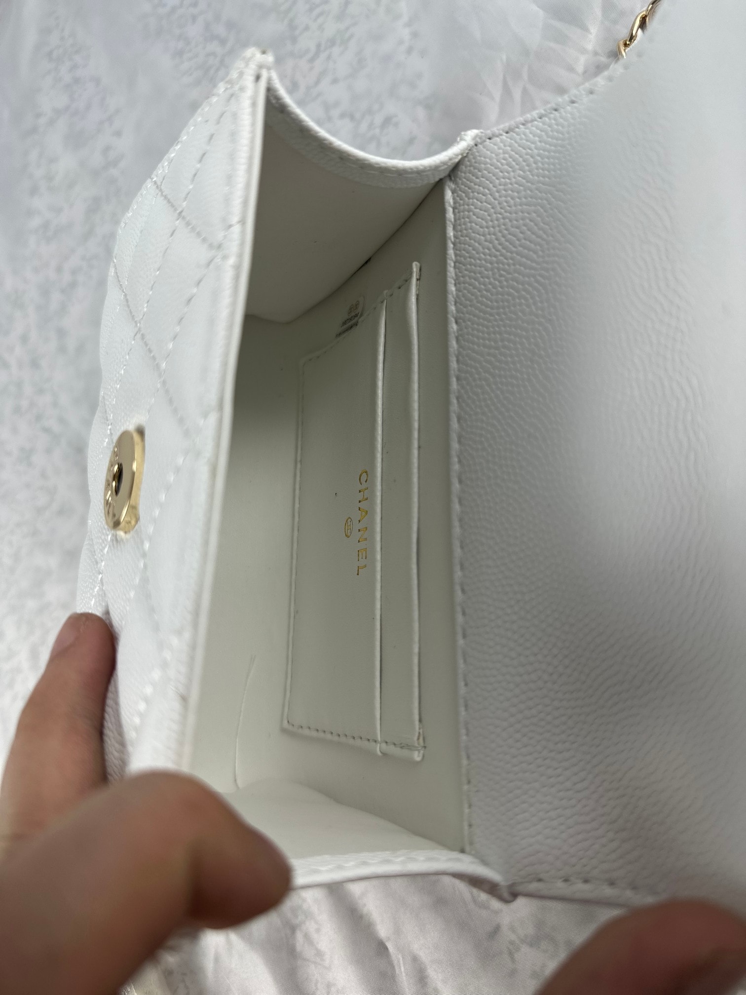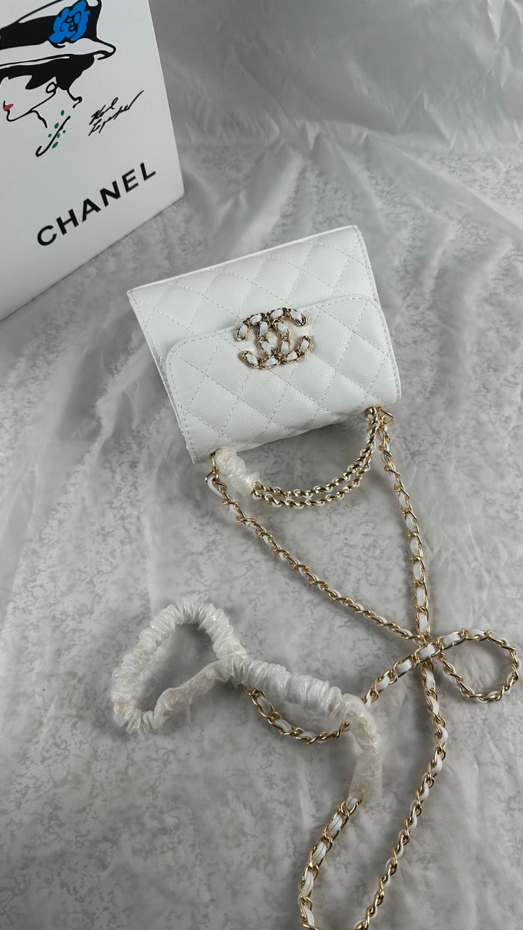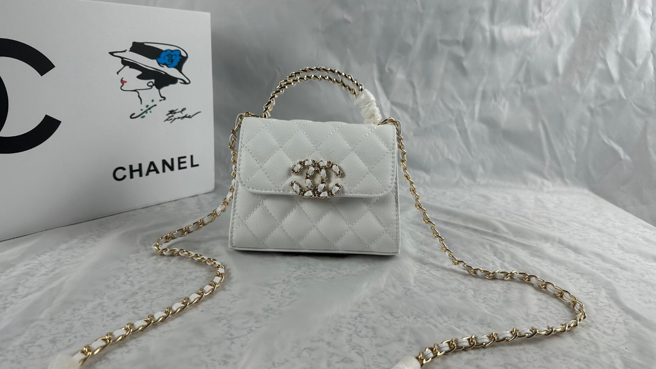 Chanel Top Handle Clutch With Chain In Caviar White 15Cm/5in