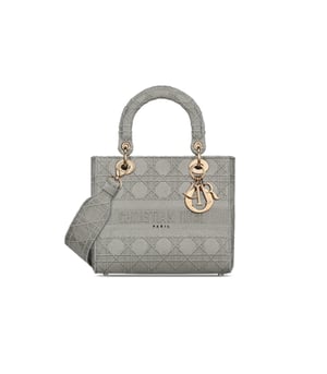 Dior Medium Lady D-Lite Bag Gray Cannage Embroidered