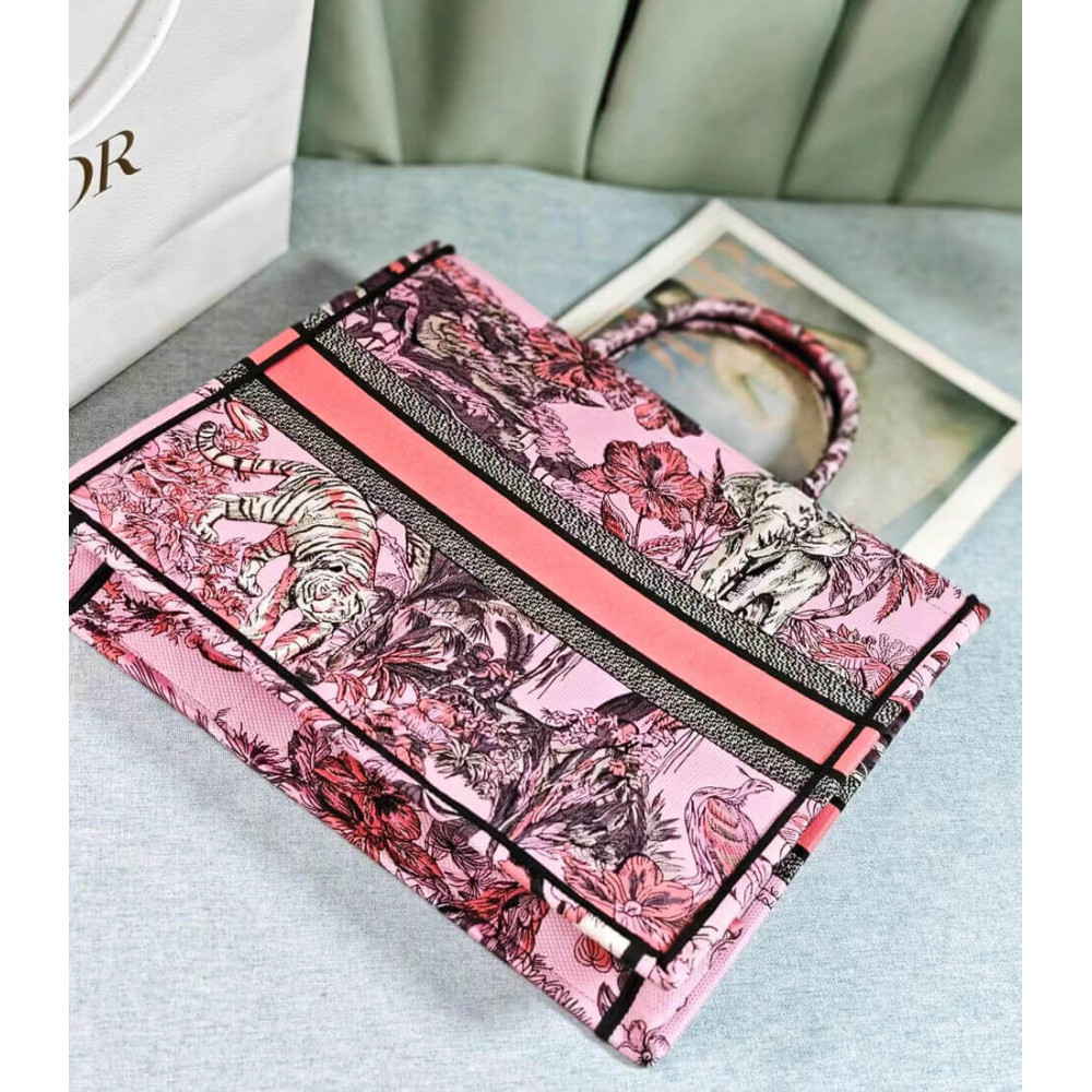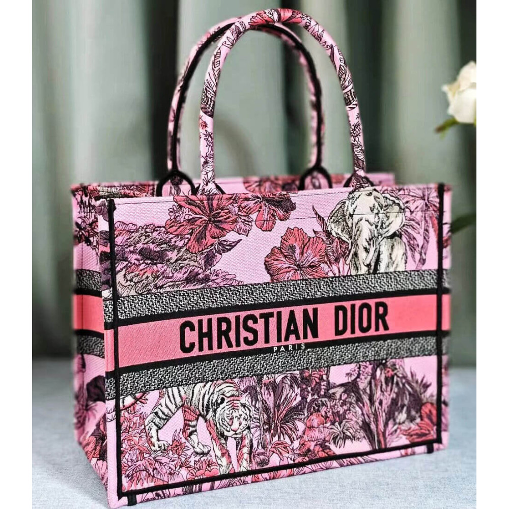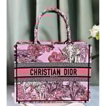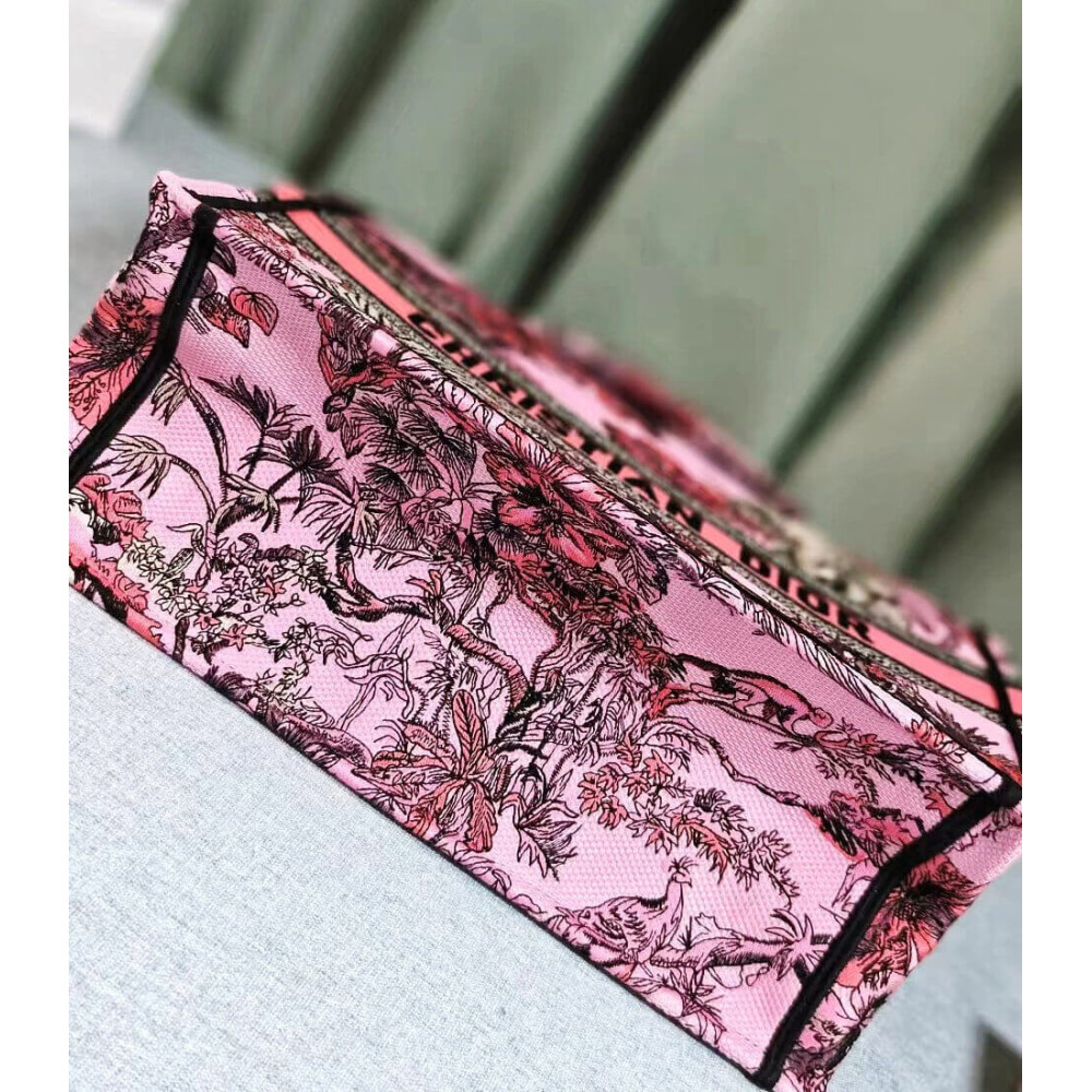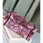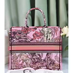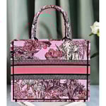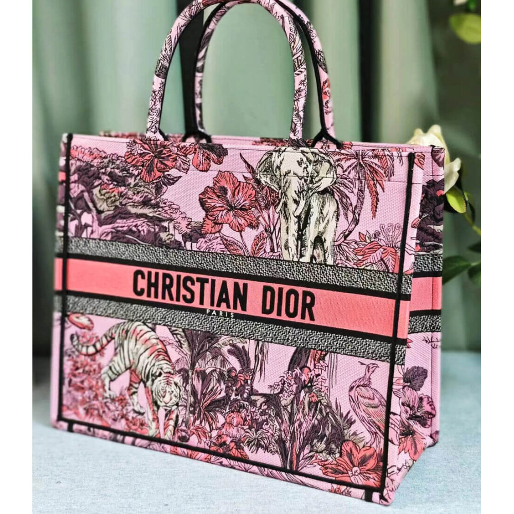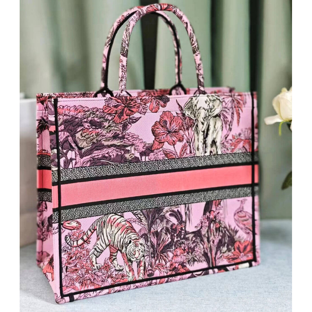 Introduced by Maria Grazia Chiuri, Creative Director of Christian Dior, the Dior Book Tote has become a staple of the Dior aesthetic. Designed to hold all the daily essentials, the pink multicolor style is fully embroidered with the Toile de Jouy Voyage motif by Pietro Ruffo, setting Mr. Dior’s iconic pattern into the heart of Indian flora and fauna. Adorned with the Christian Dior Paris signature on the front, the large tote exemplifies the House’s signature savoir-faire and may be carried by hand or worn over the shoulder.
