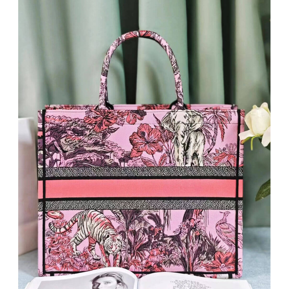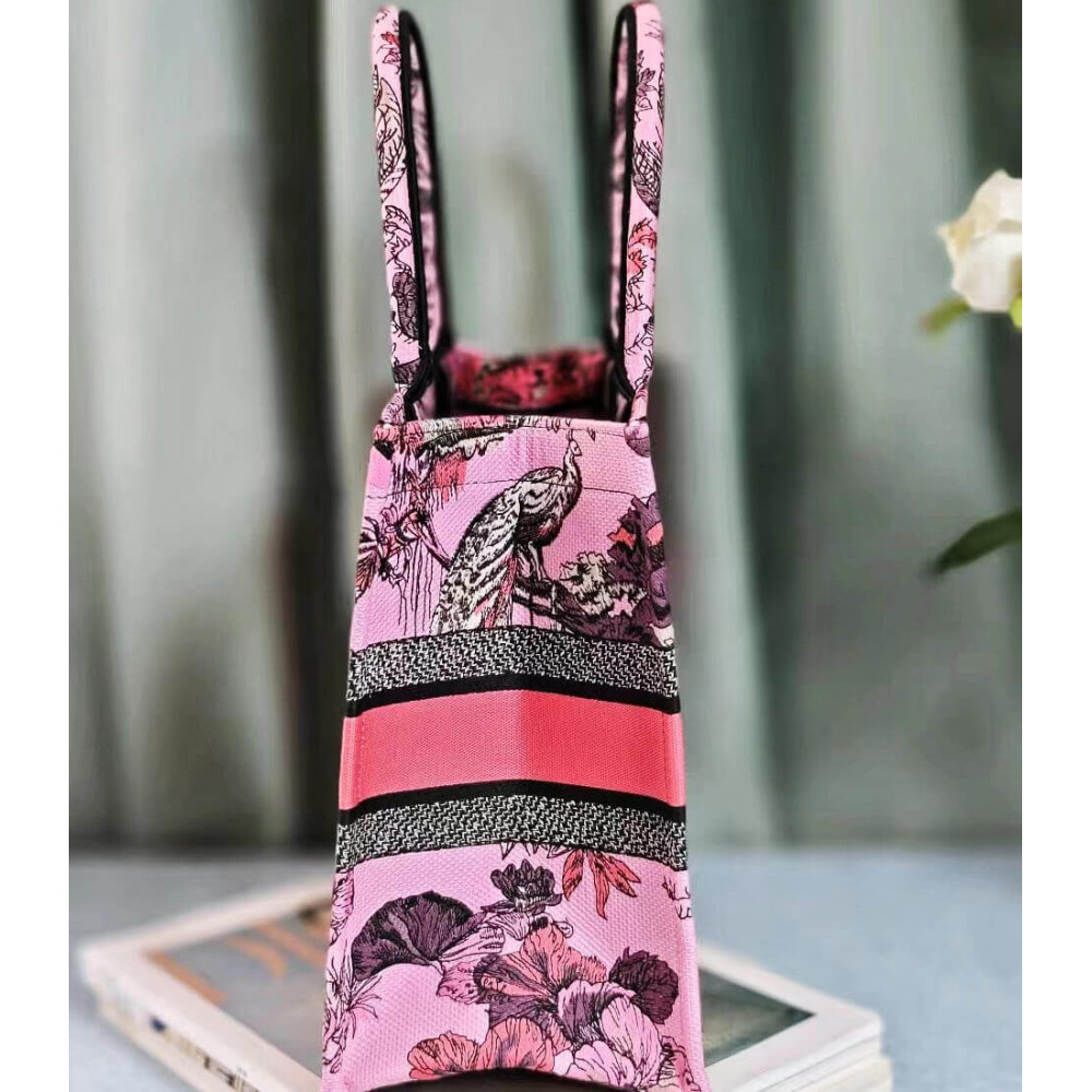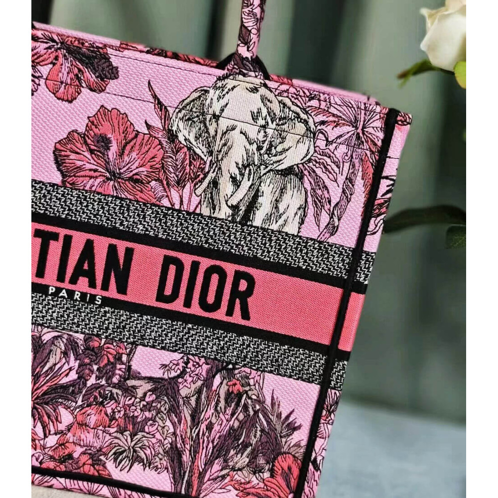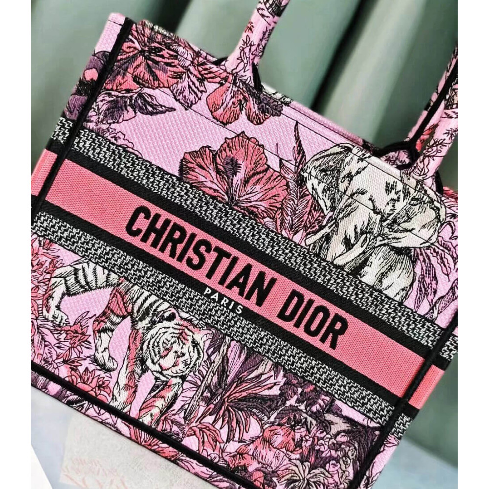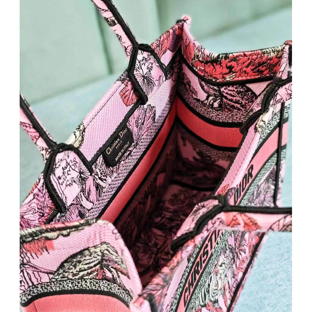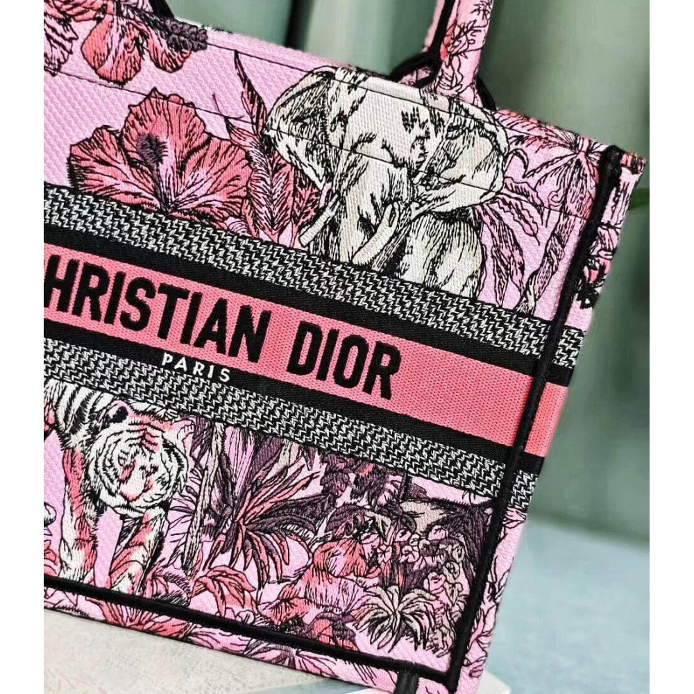 Introduced by Maria Grazia Chiuri, Creative Director of Christian Dior, the Dior Book Tote has become a staple of the Dior aesthetic. Designed to hold all the daily essentials, the pink multicolor style is fully embroidered with the Toile de Jouy Voyage motif by Pietro Ruffo, setting Mr. Dior’s iconic pattern into the heart of Indian flora and fauna. Adorned with the Christian Dior Paris signature on the front, the large tote exemplifies the House’s signature savoir-faire and may be carried by hand or worn over the shoulder.