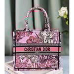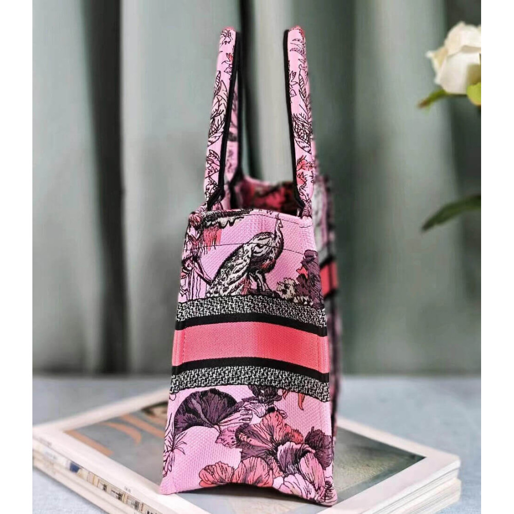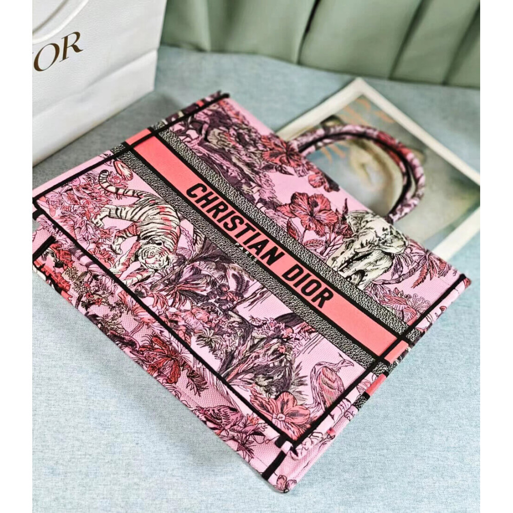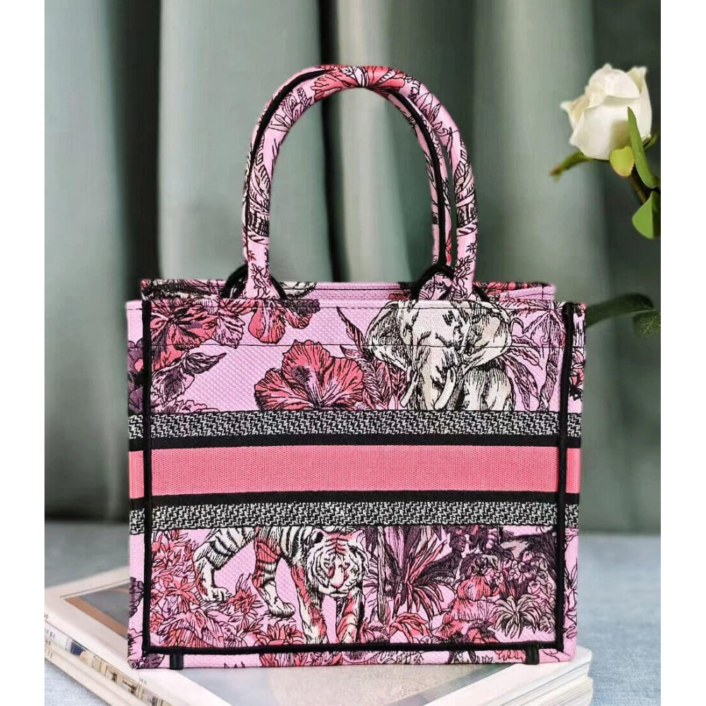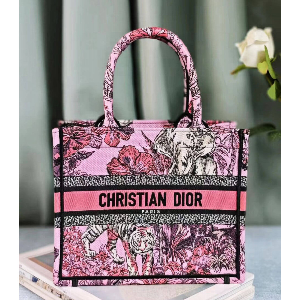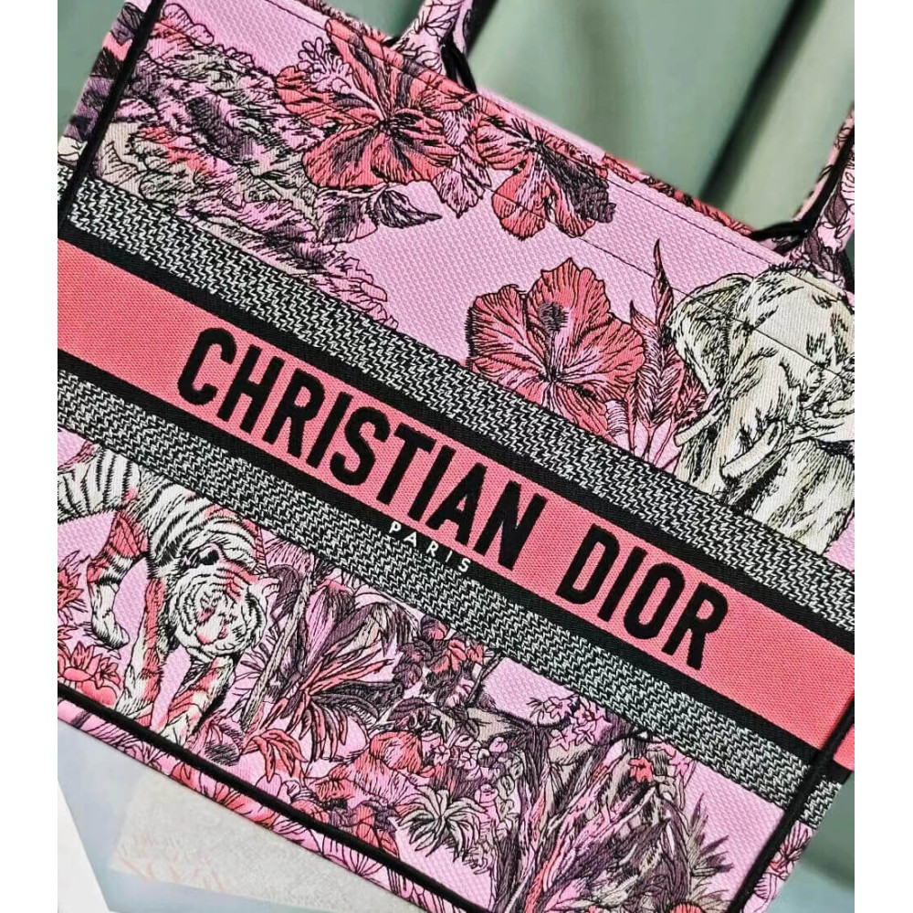 Introduced by Maria Grazia Chiuri, Creative Director of Christian Dior, the Dior Book Tote has become a staple of the Dior aesthetic. Designed to hold all the daily essentials, the pink multicolor style is fully embroidered with the Toile de Jouy Voyage motif by Pietro Ruffo, setting Mr. Dior’s iconic pattern into the heart of Indian flora and fauna. Adorned with the Christian Dior Paris signature on the front, the large tote exemplifies the House’s signature savoir-faire and may be carried by hand or worn over the shoulder.