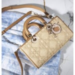 Dior Medium Lady D-Lite Bag Beige Cannage Embroidered