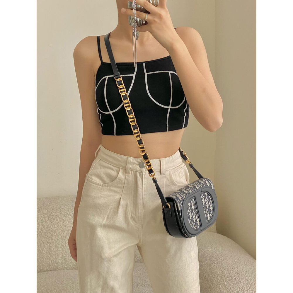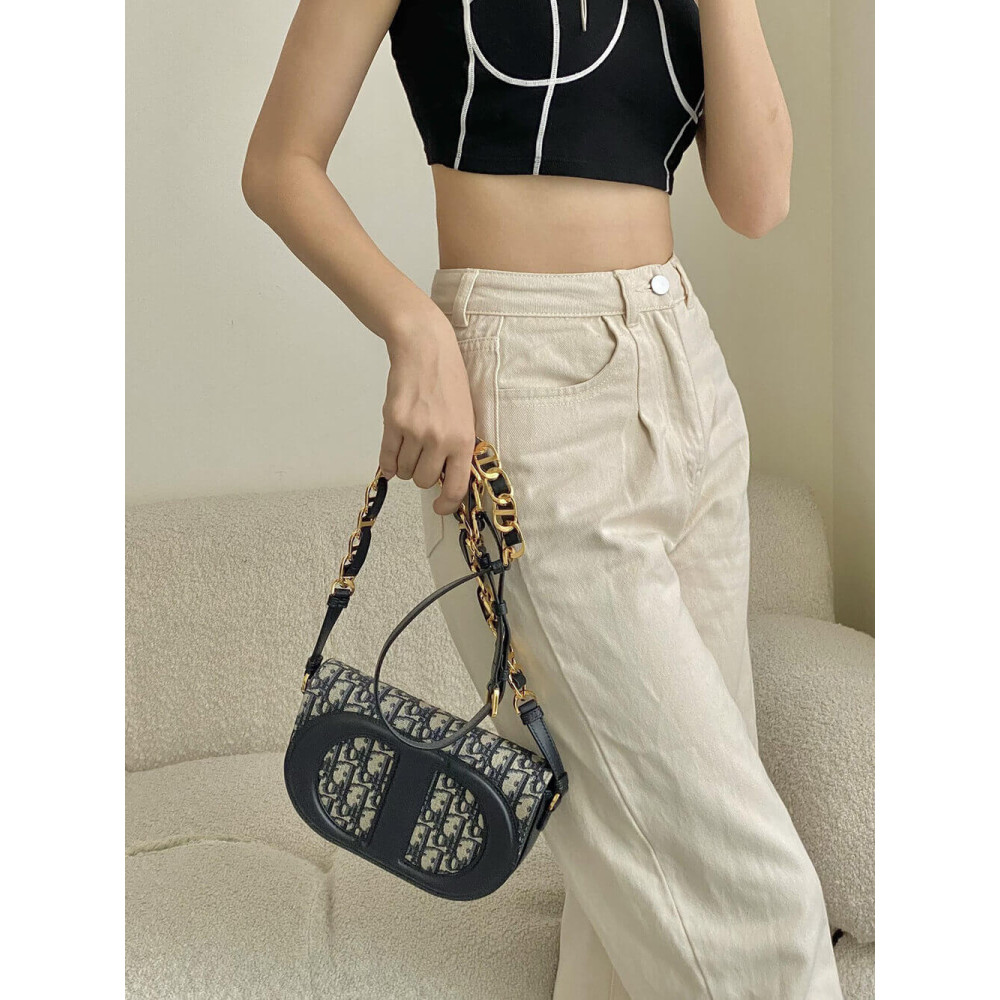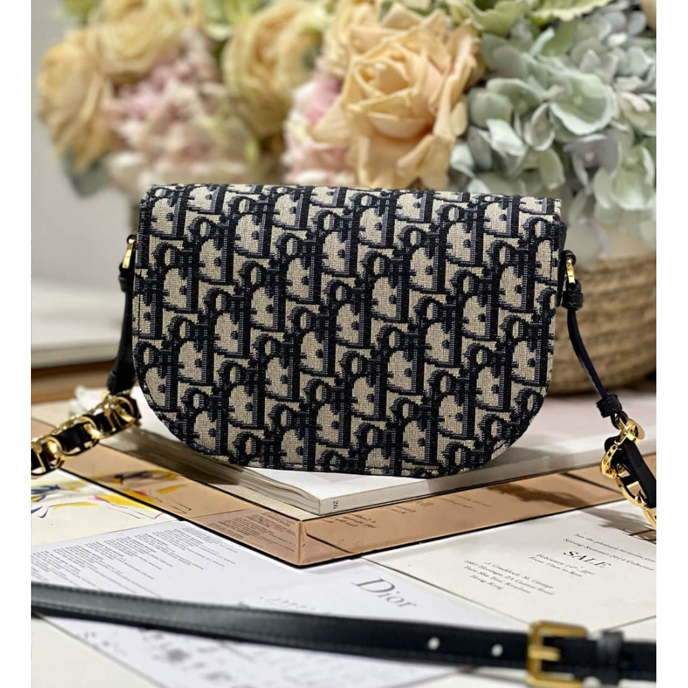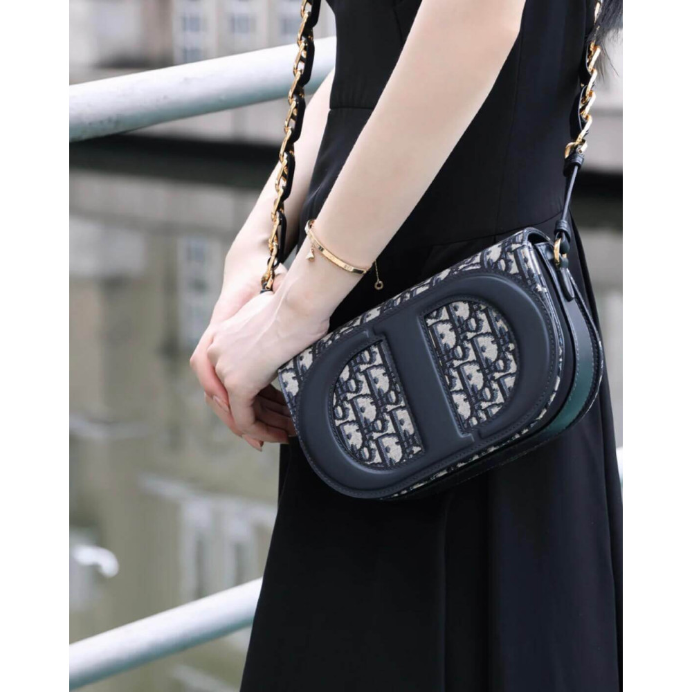 New for Fall 2023, the CD Signature bag with strap combines modernity with timeless elegance. Crafted in blue Dior Oblique jacquard, it is distinguished by an embossed CD signature on the front. Its gusseted compartment and patch pocket allow daily essentials to stay organized. The medium bag features a flap and chain shoulder strap with CD signature links interwoven with leather that allows it to be worn over the shoulder or crossbody.
