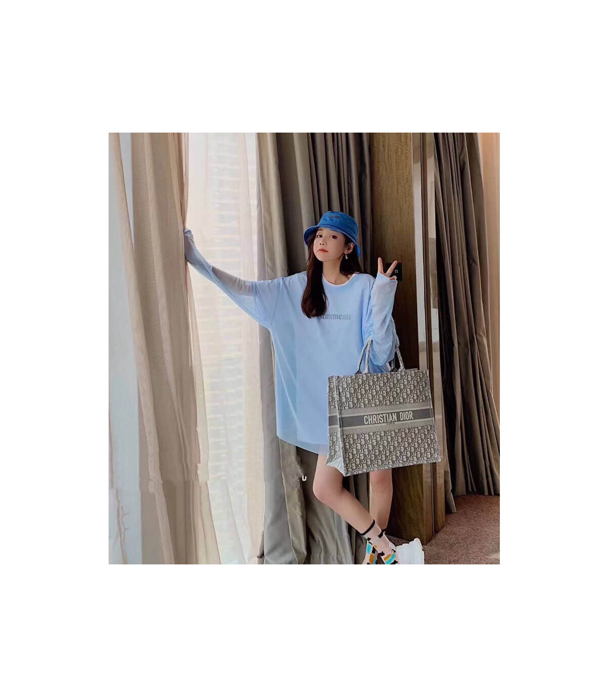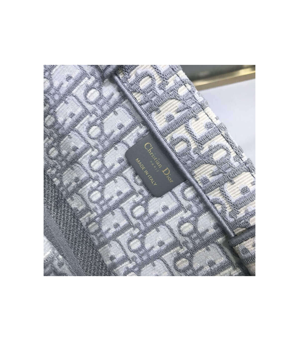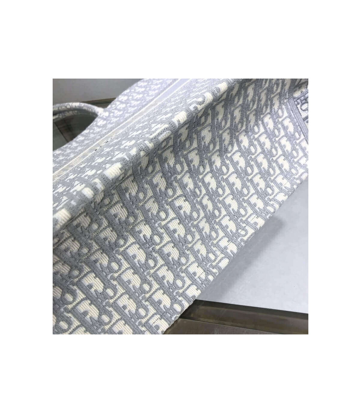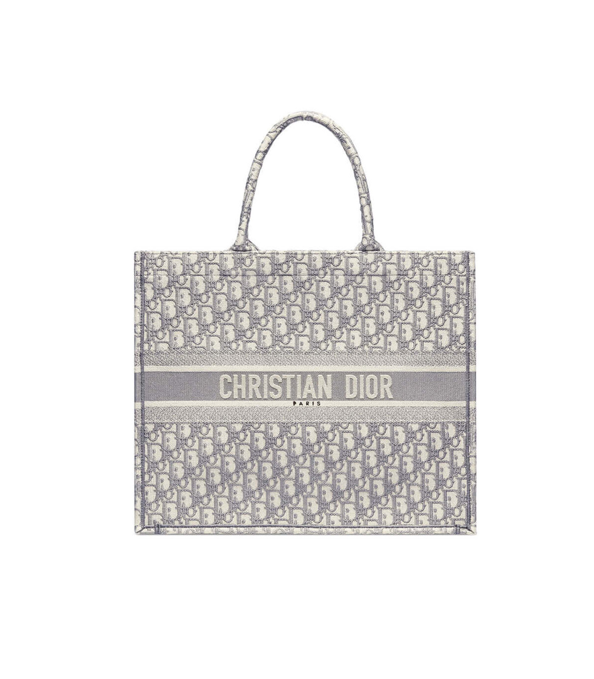 The Dior Book Tote, an original style introduced by Creative Director Maria Grazia Chiuri, has become a staple of the Dior aesthetic. Ideally designed to carry all your daily essentials, the large shape is fully embroidered with a gray Dior Oblique pattern and the ‘Christian Dior’ signature on the front. This carryall is a perfect example of the Dior savoir-faire and it may be worn with other small accessories or the Mitzah scarf for a complete look.