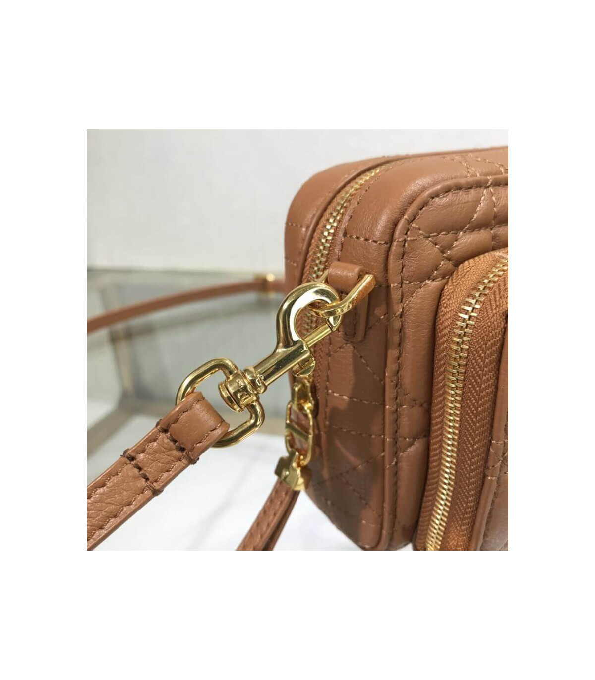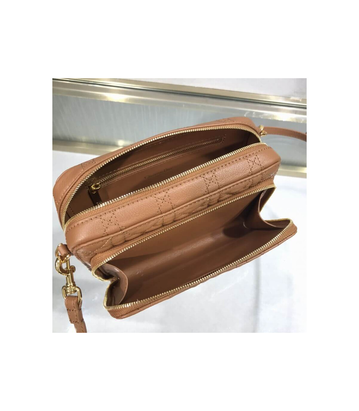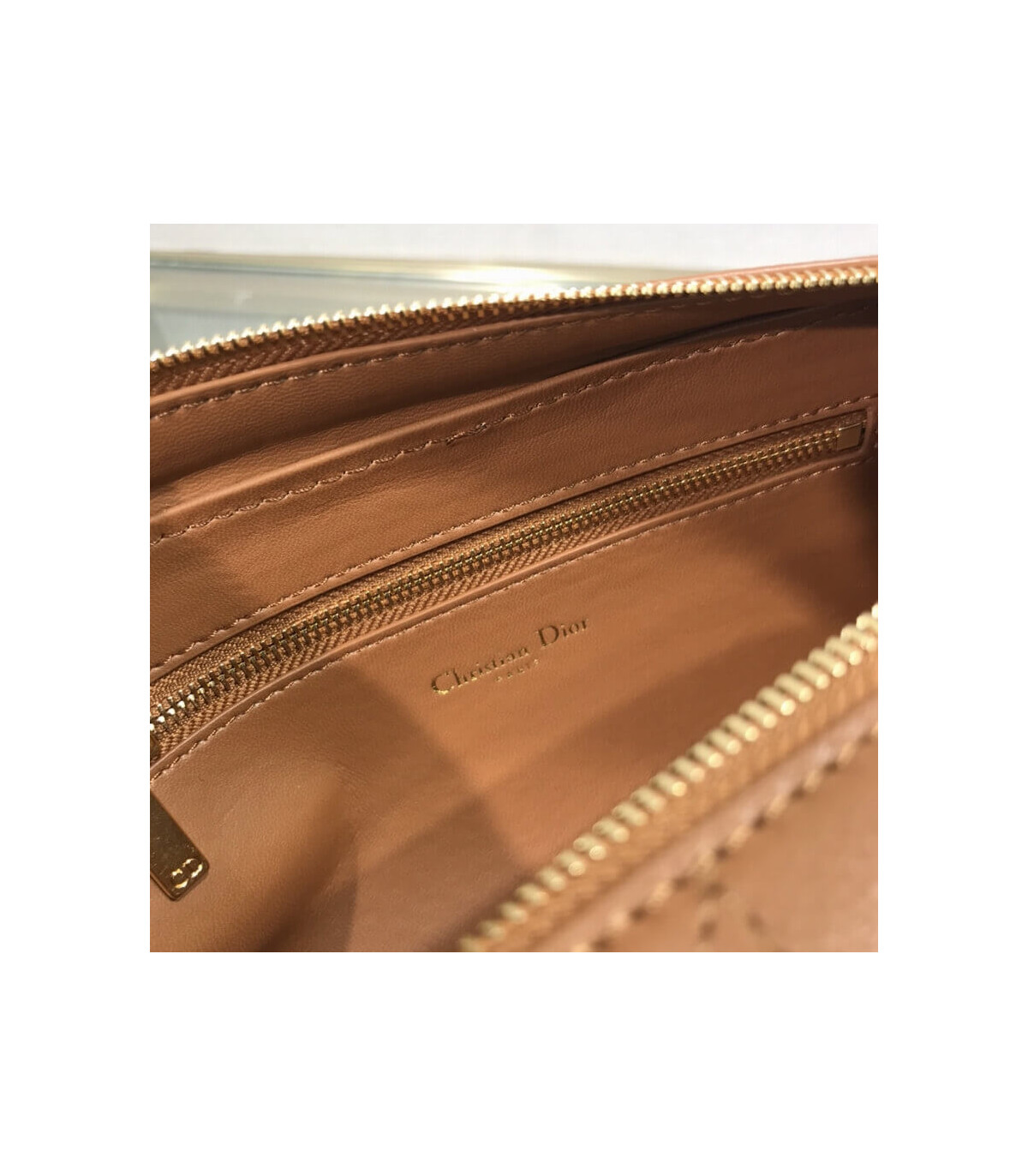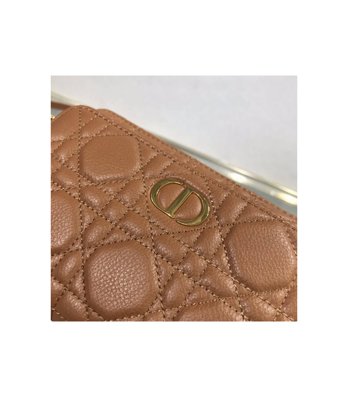– Brown supple calfskin with Cannage topstitching