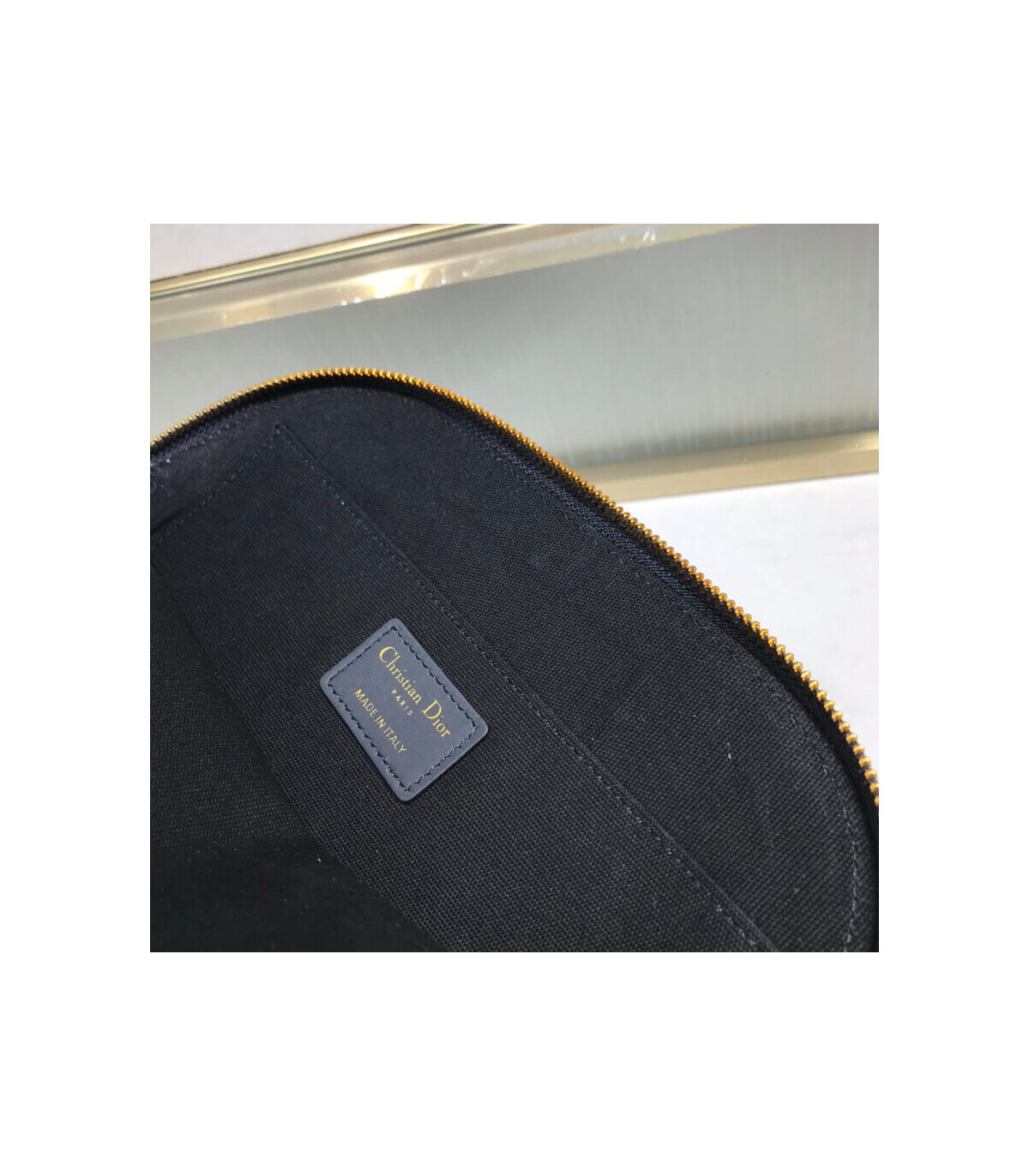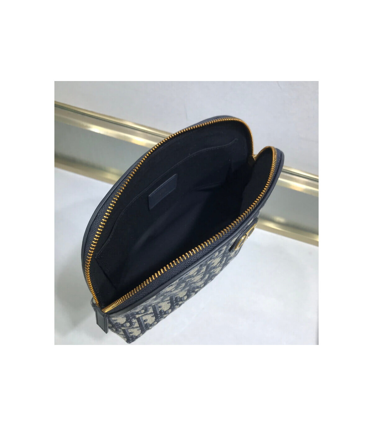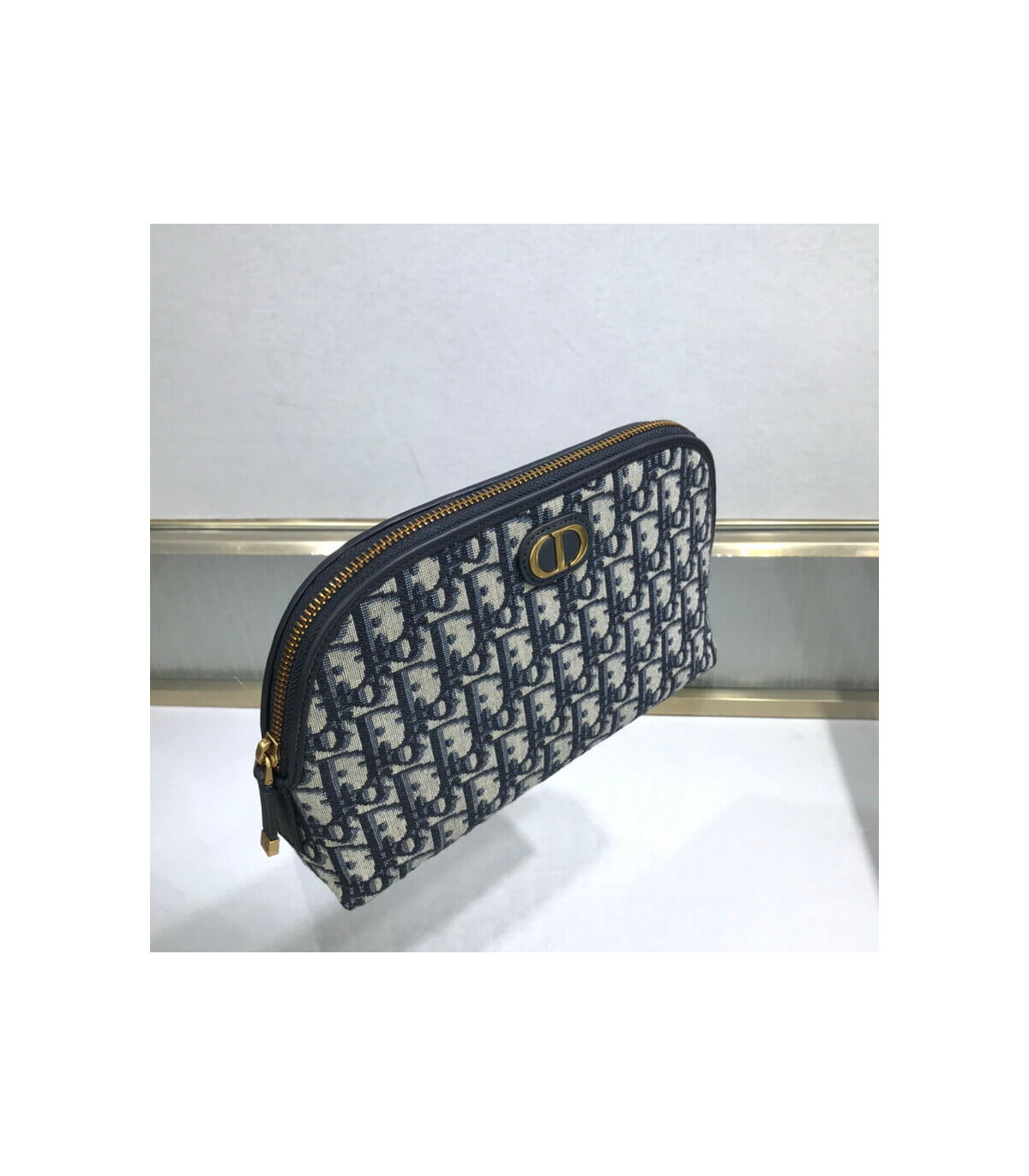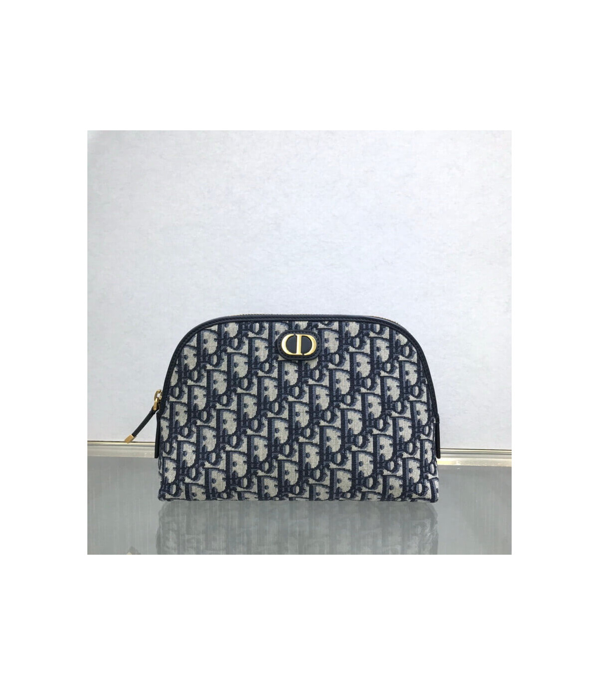 The medium 30 Montaigne beauty pouch is an elegant and timeless accessory. Crafted in blue Dior Oblique jacquard, it features a ‘CD’ element at the front. A zipped closure opens on a single compartment with patch pockets that can hold beauty essentials and other accessories. It may easily be slipped into a Dior Book Tote.