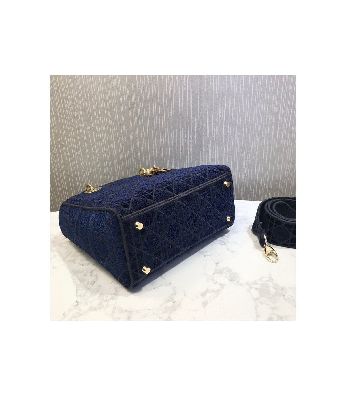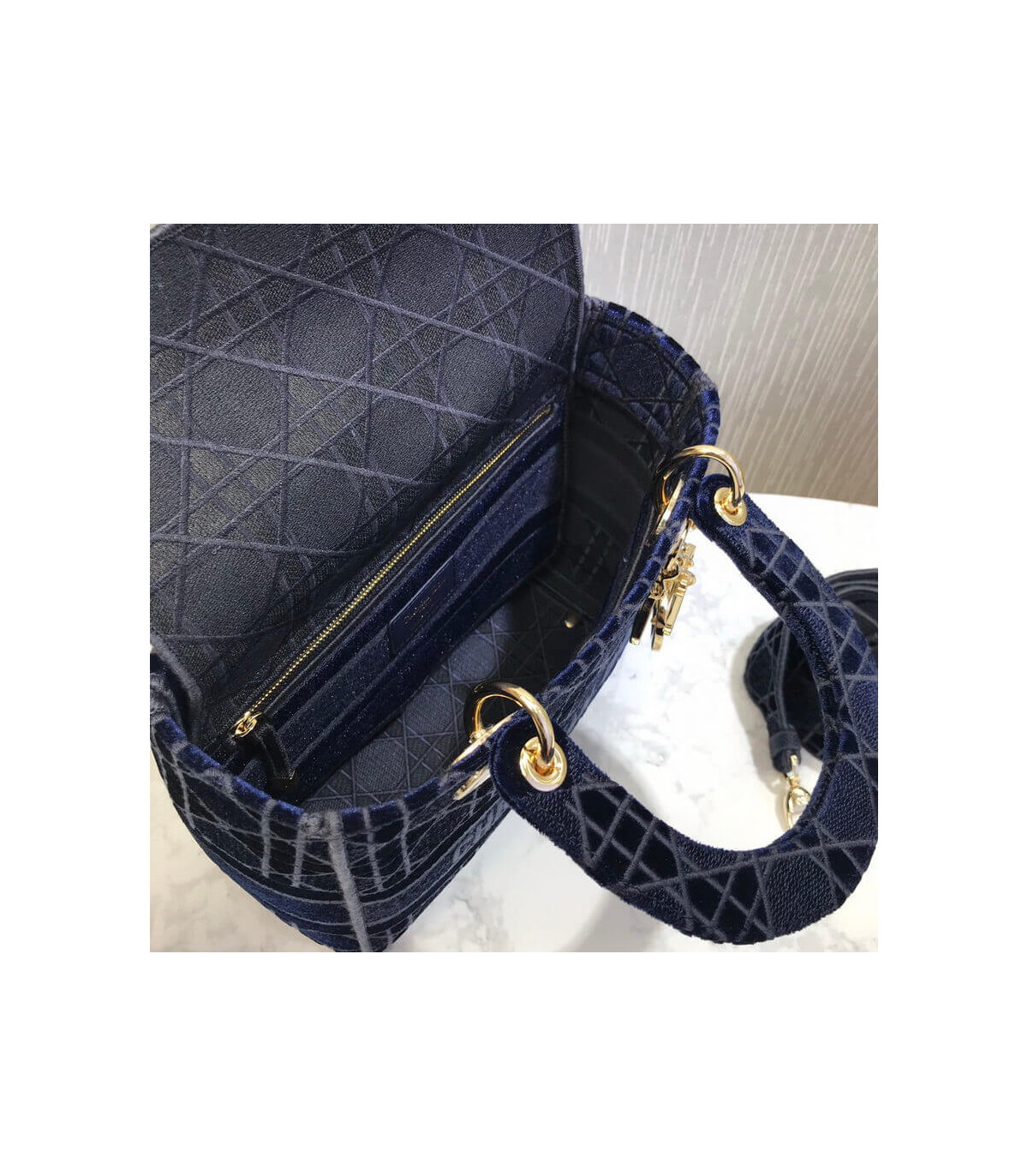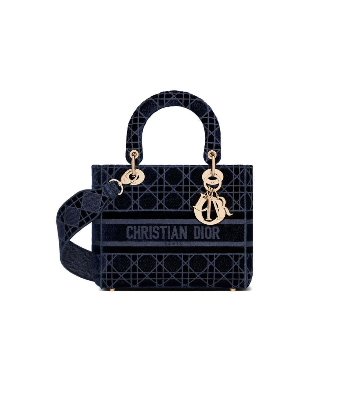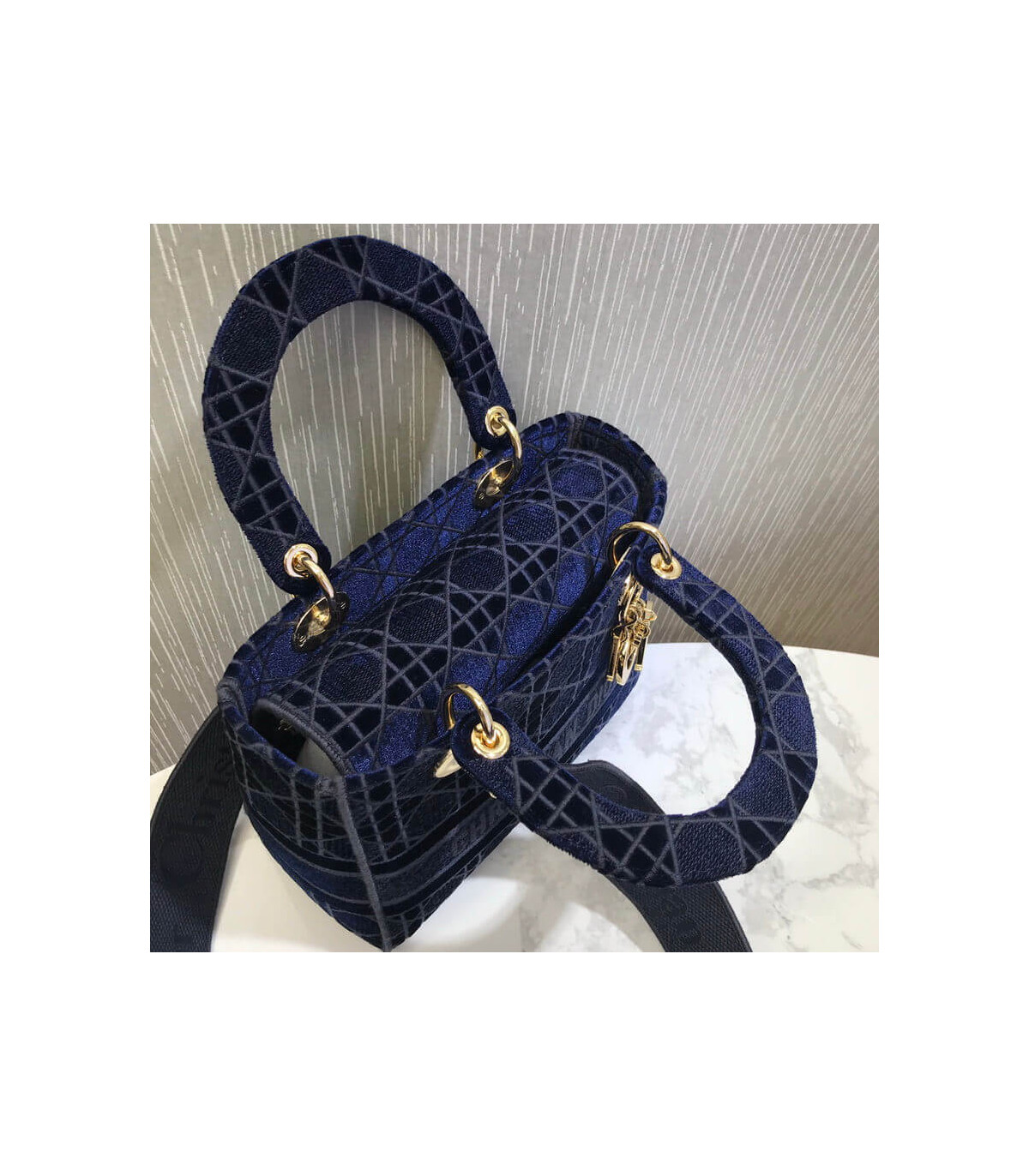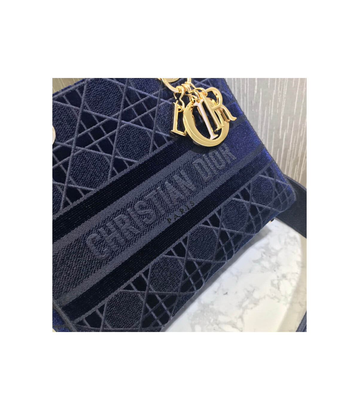Home Shop All Bags Dior Dior Medium Lady D-Lite Bag Blue Cannage Embroidered Velvet
