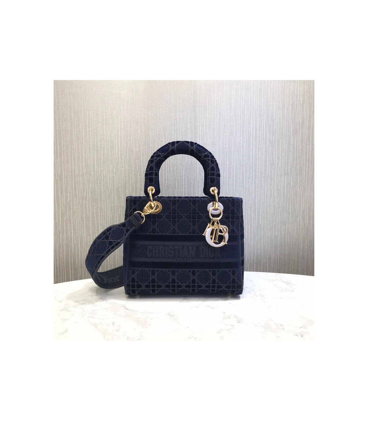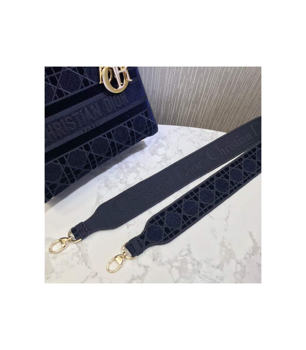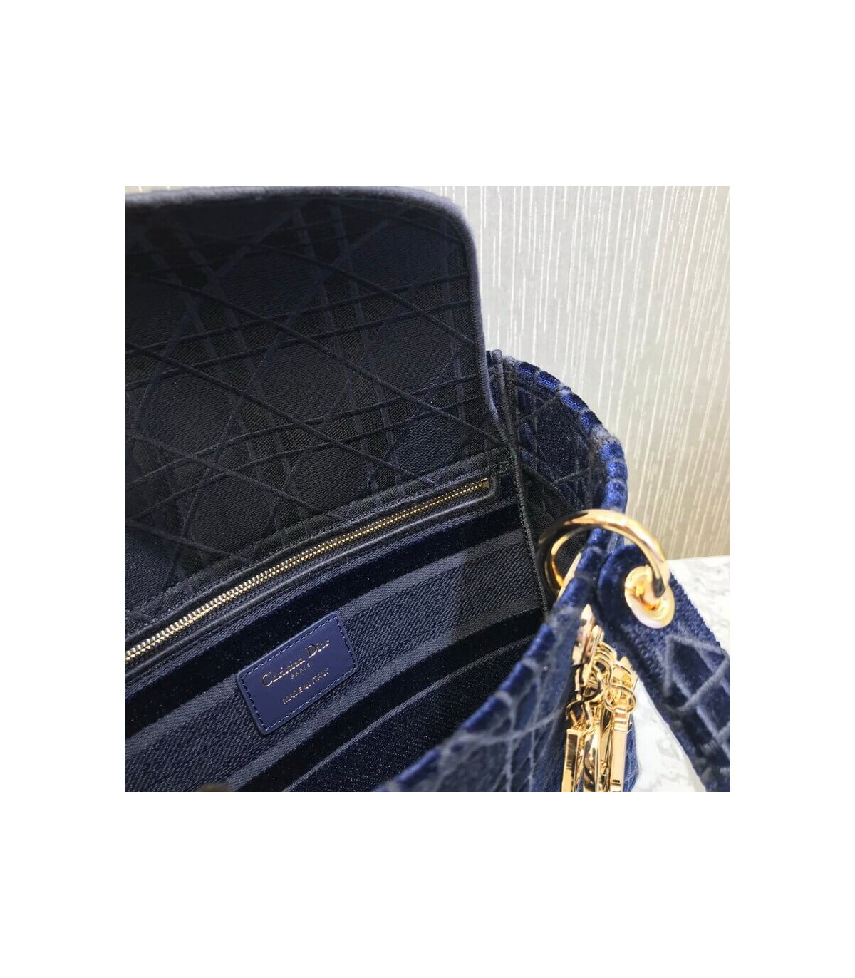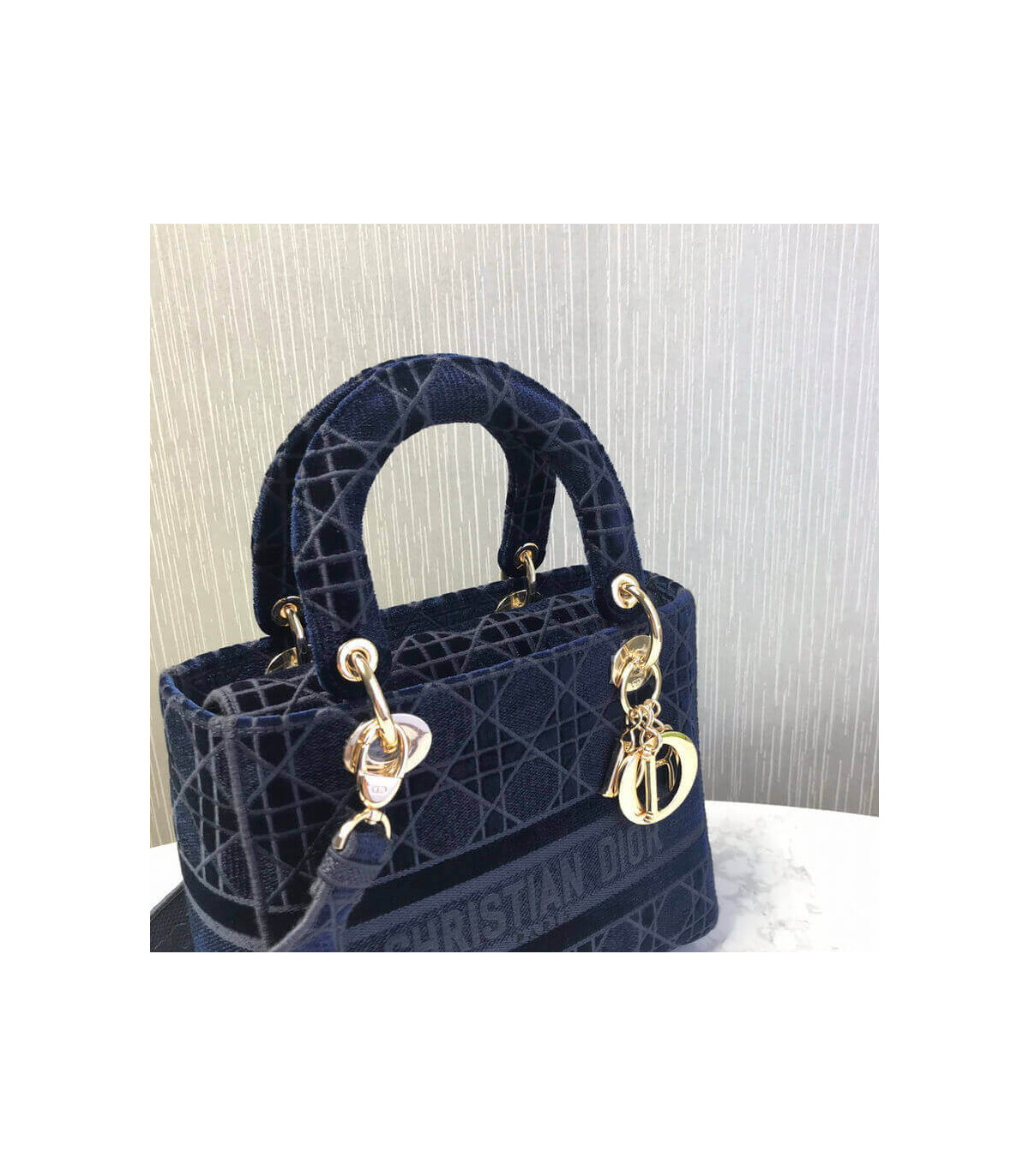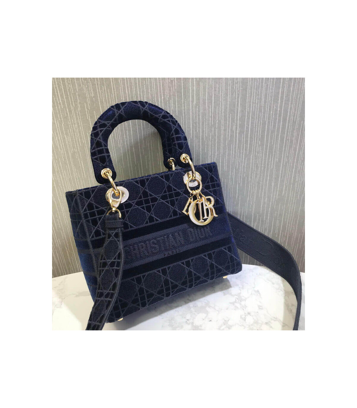 Home Shop All Bags Dior Dior Medium Lady D-Lite Bag Blue Cannage Embroidered Velvet