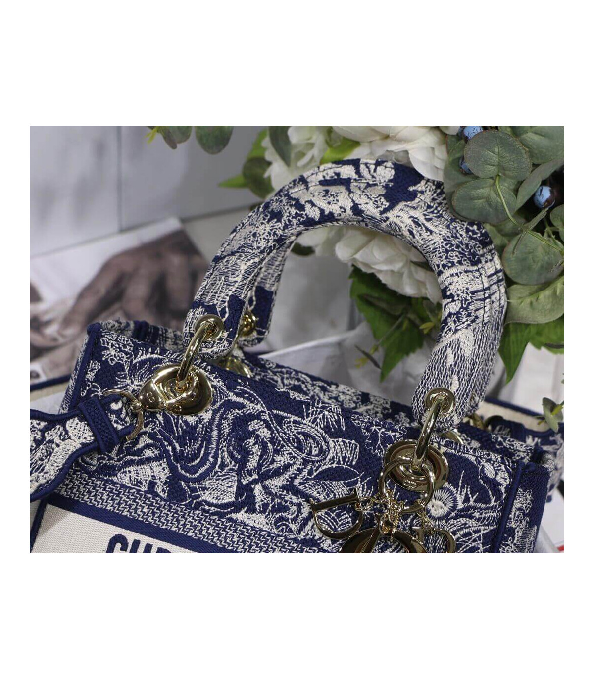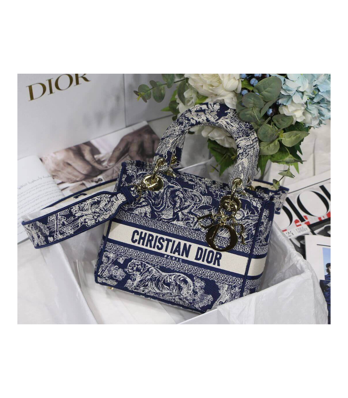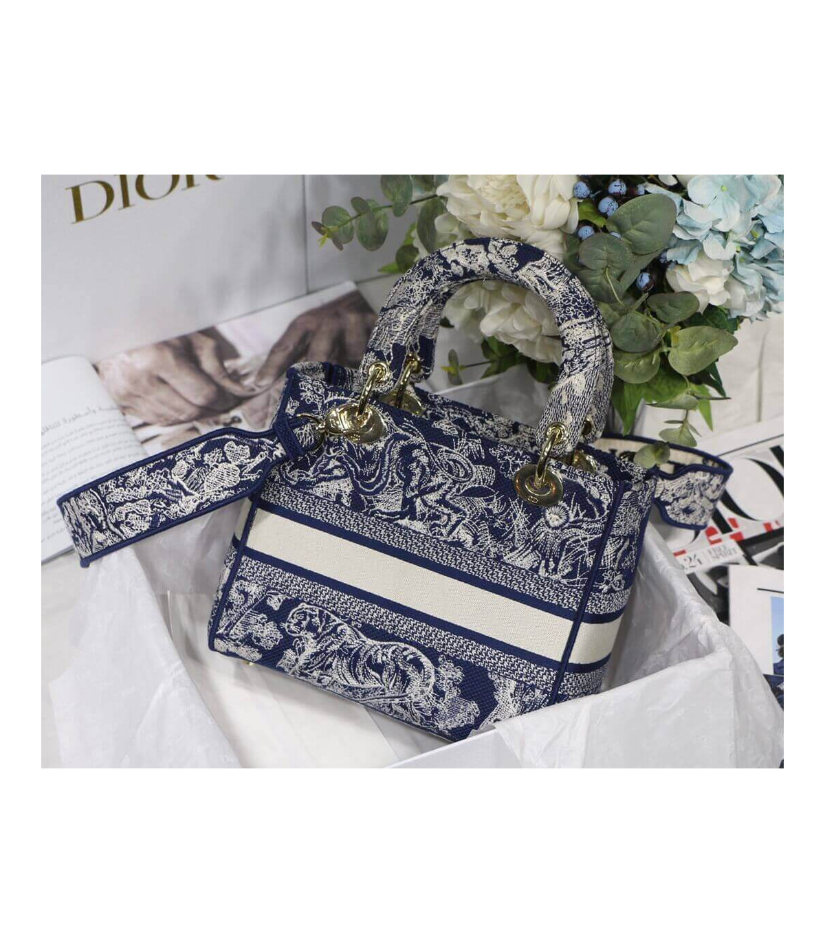 Dior Medium Lady D-Lite Bag Denim Blue Toile de Jouy Embroidery