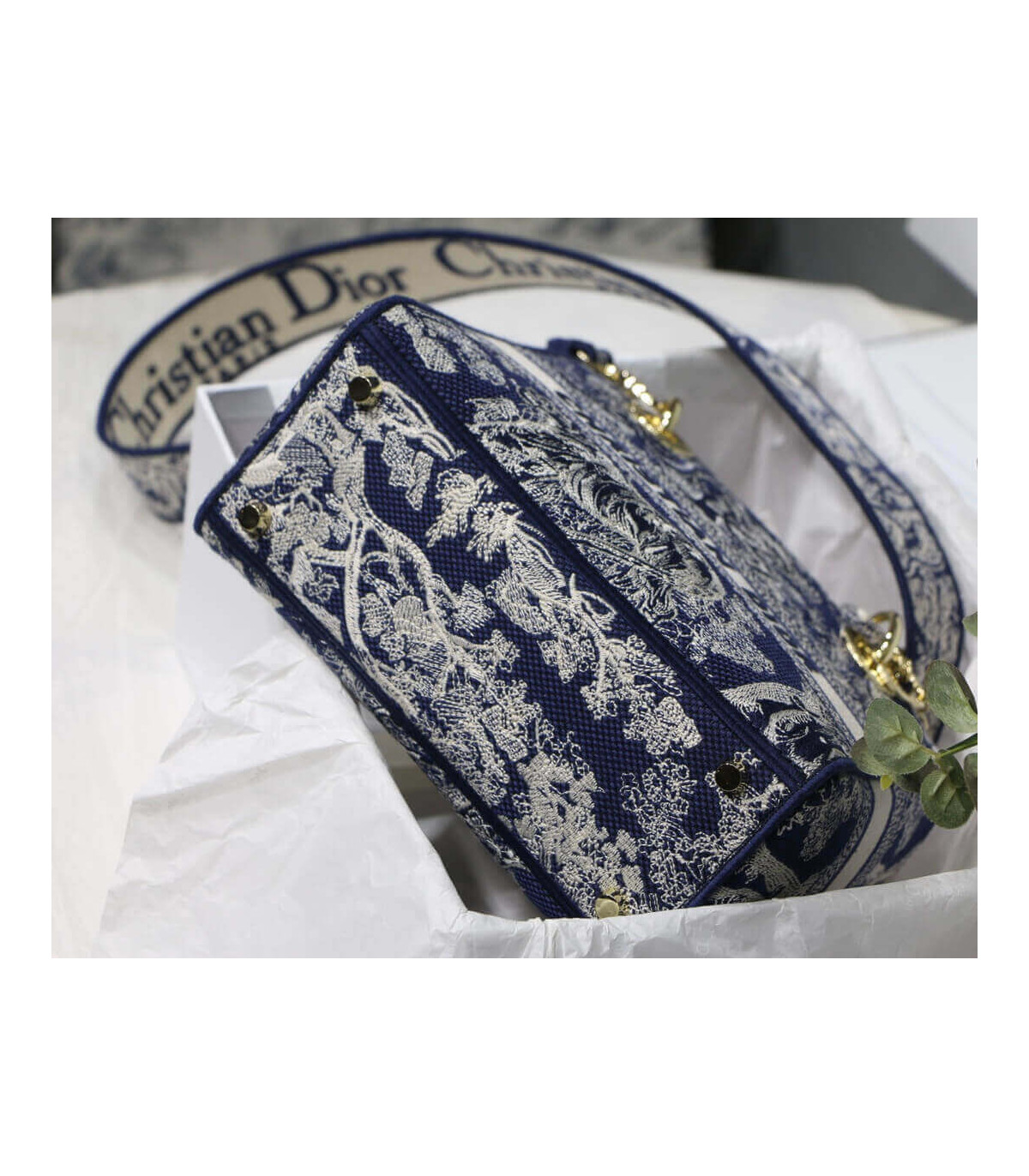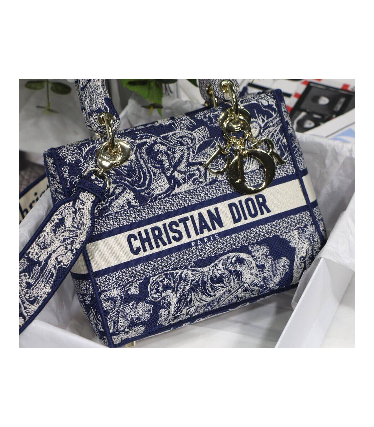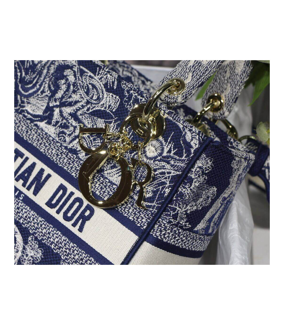 Dior Medium Lady D-Lite Bag Blue Dior Palms Embroidery