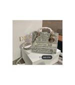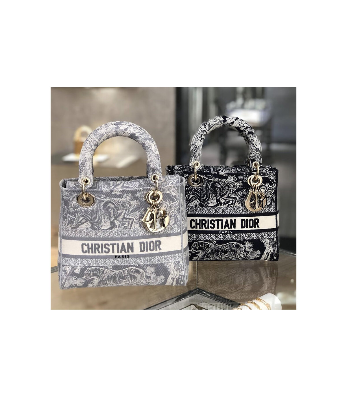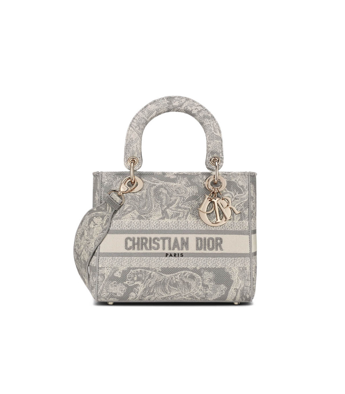 The Lady D-Lite bag combines classic elegance with House modernity. The style is fully embroidered with the lime Toile de Jouy Reverse motif, a variation of the hallmark House pattern with a play on reversed colors. The front features a ‘CHRISTIAN DIOR’ signature while the thick ‘D.I.O.R.’ charms in pale gold-finish metal enhance the silhouette. Equipped with a wide, reversible and removable embroidered shoulder strap, the medium Lady D-Lite bag can be carried by hand, worn over the shoulder or crossbody.