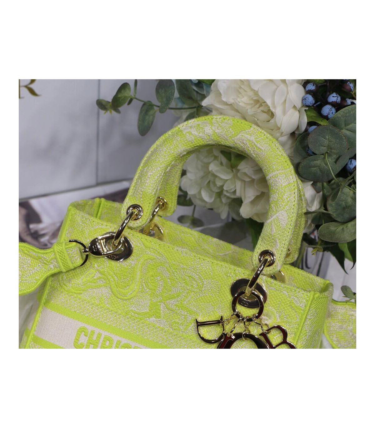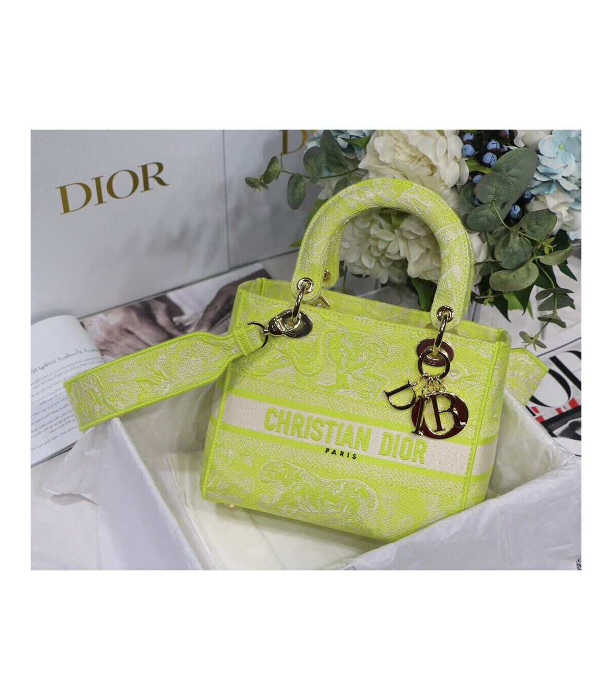 Home Shop All Bags Dior Dior Medium Lady D-Lite Bag Lime Toile de Jouy Reverse Embroidery
